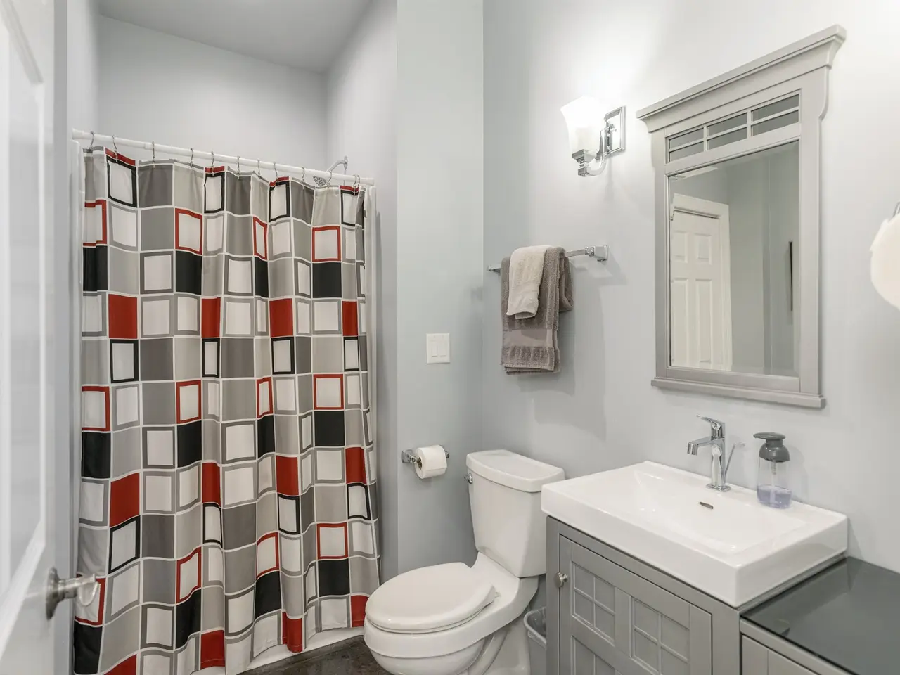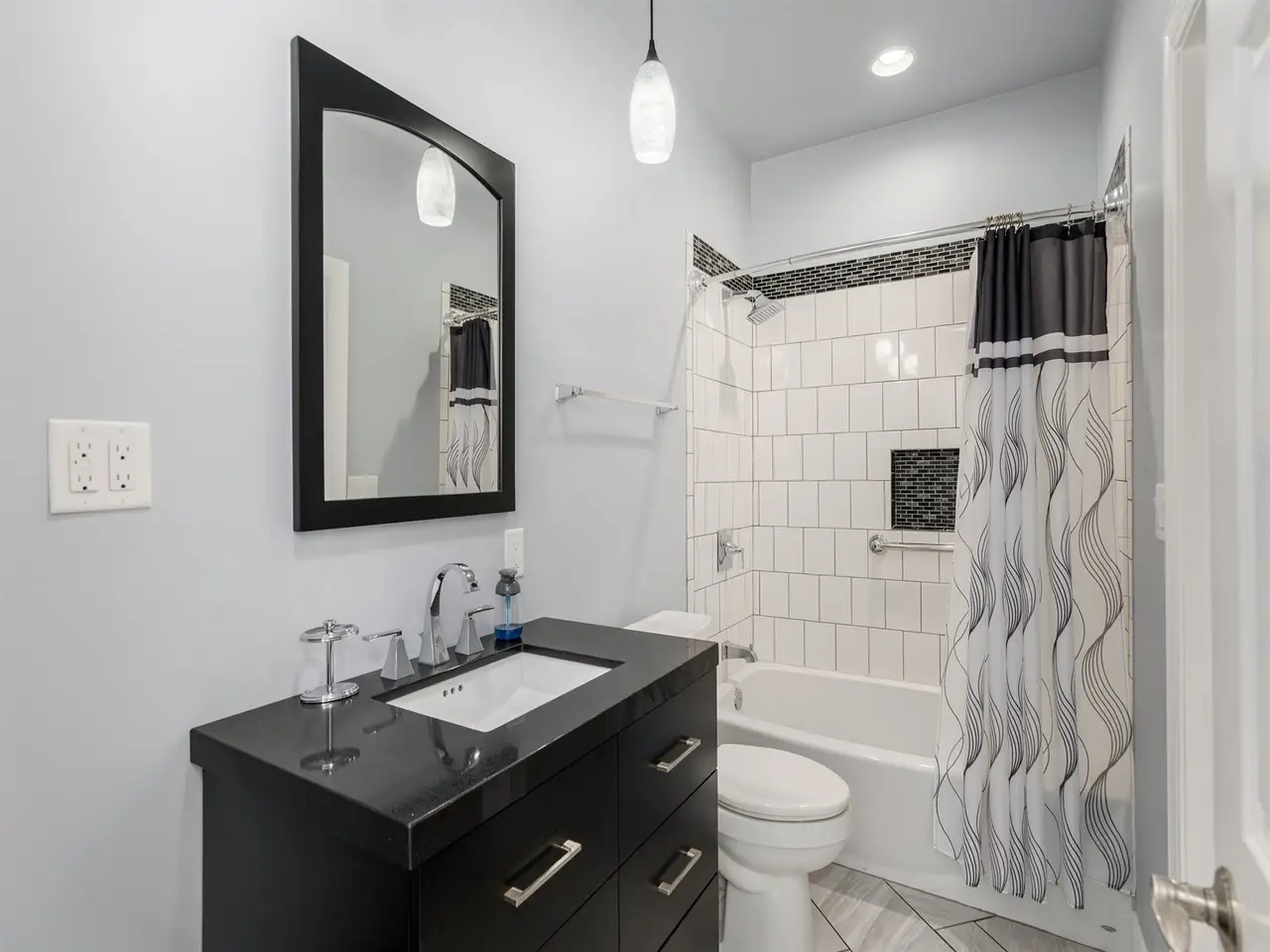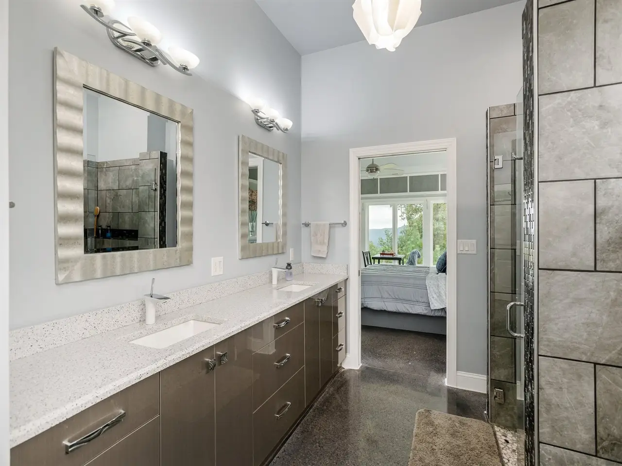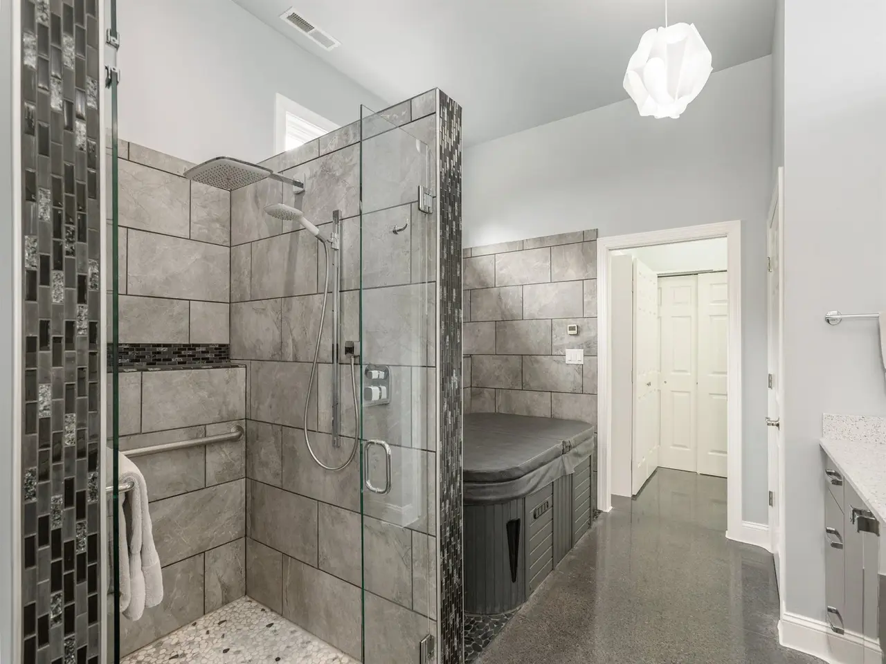 Spa-inspired bath with tile step-in shower
