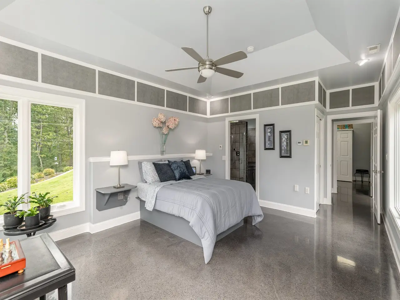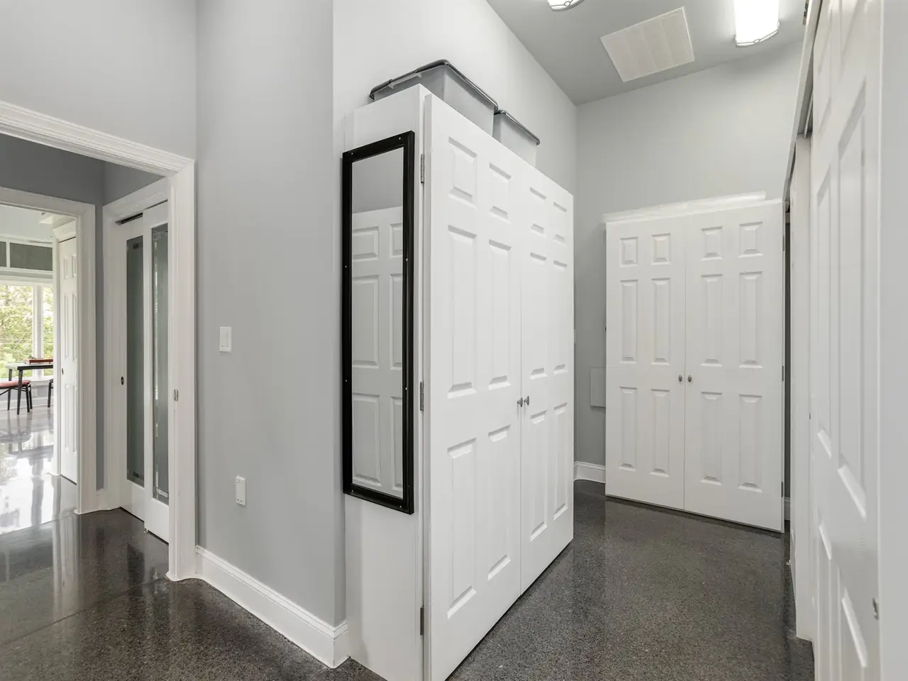 Dramatic hall of closets in primary suite