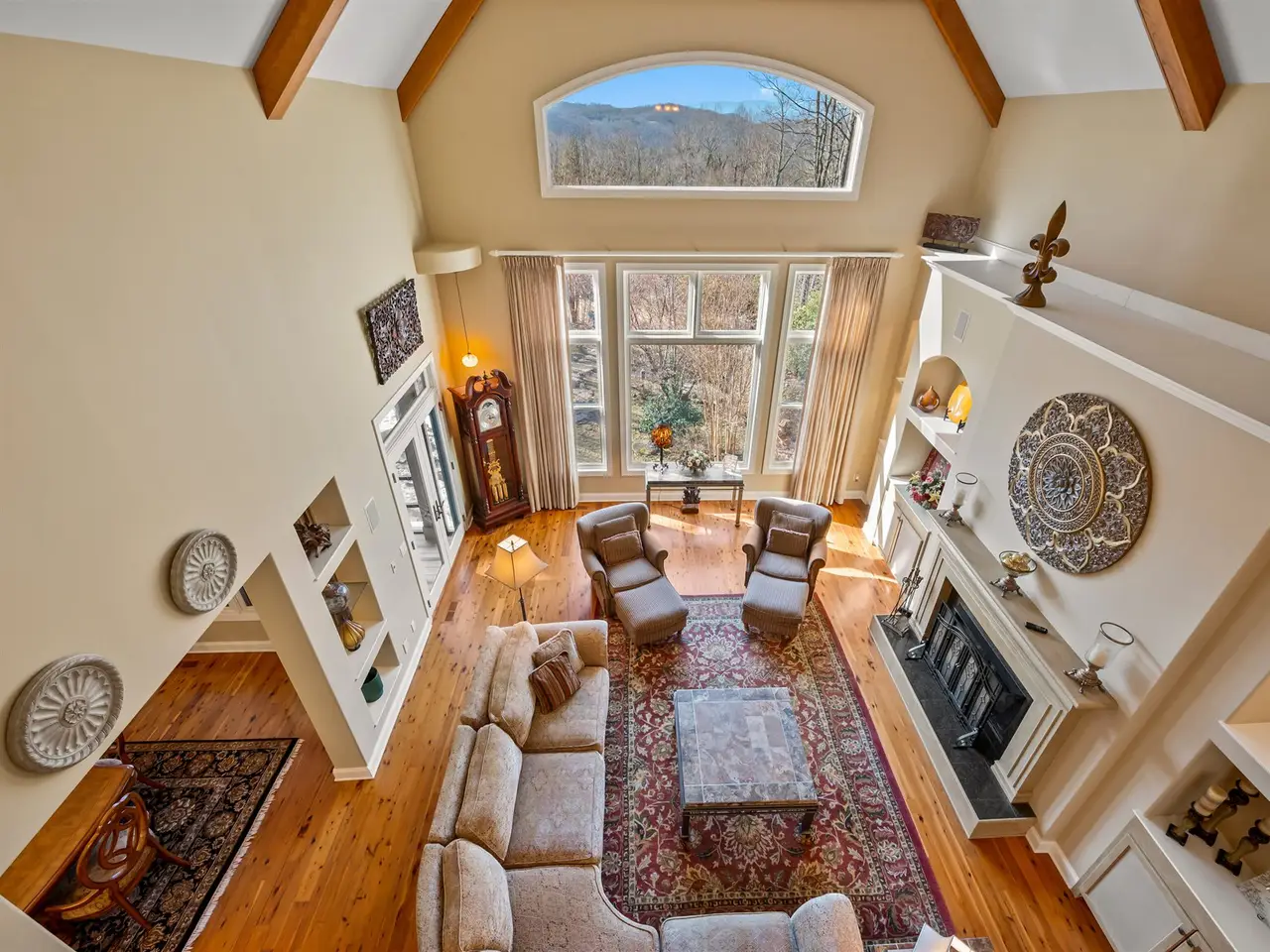 Unparalleled Detail and quality abound in this custom luxury mountain home. Breathtaking views of the Eastern Continental Divide complement the comfortable and functional open floor plan. Peaceful and tranquility is what you will find in this small private community with low HOA fees. The huge master suite has a study with a fireplace and a screened in deck with sun blinds. Home features Australian Cypress floors, custom built-ins, three fireplaces, storage lovers dream, exquisite landscaping with walkways, boulders, additional screened in decking that leads to the year round water fall, soaring ceilings, gourmet island kitchen, hearth room, Office with amazing views, Rinnai tankless water heater, Leaf Filter gutters, ADT security cameras, and so much more, virgin natural forest setting with native hardwoods, rhododendrons, azaleas, underground utilities, and paved private roads. It is only 5.5 +/?miles from downtown Hendersonville and minutes from all major golf courses.