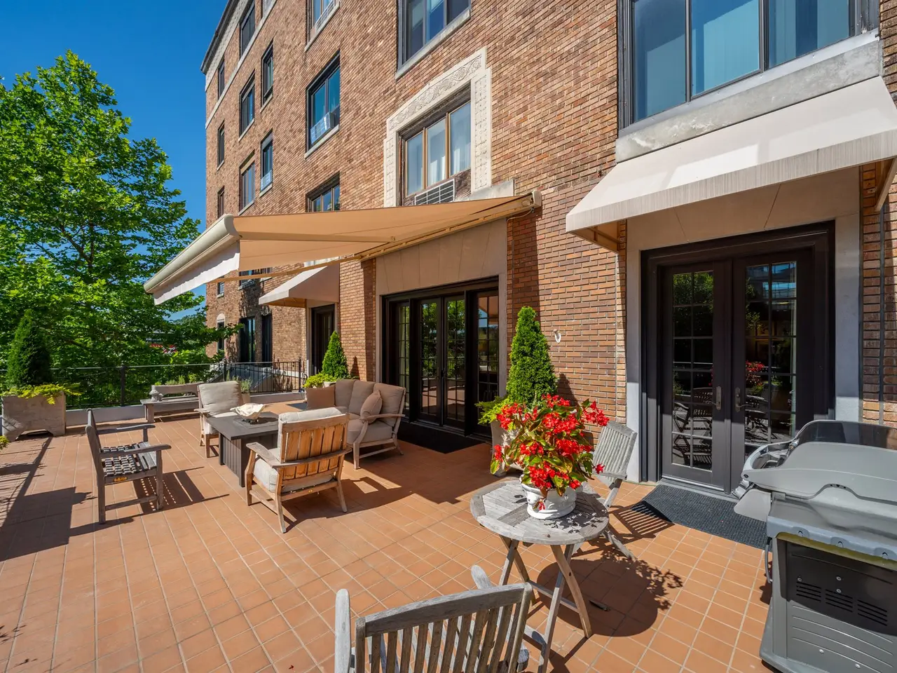 A unique opportunity to own a historic unit in vibrant Downtown Hendersonville once occupied by F. Scott Fitzgerald. Beautifully updated for today's living, the highlight of this home is the sprawling terrace overlooking downtown. Perfect for al fresco dining, entertaining guests, or simply relaxing and taking in the views. The terrace is a true extension of the elegant indoor living space which includes an open living room with fireplace and built-ins, a gracefully renovated kitchen and separate catering kitchen, media room, guest bedrooms and a fabulous primary suite with an impressive primary closet/dressing room. This charming, one-of-a-kind 4,880 SF residence includes two reserved parking spaces and a bonus 198 square foot laundry/utility/storage room steps from the unit. The prime location allows you to enjoy an abundance of restaurants, shops, and activities only available in the mountain town of Hendersonville.