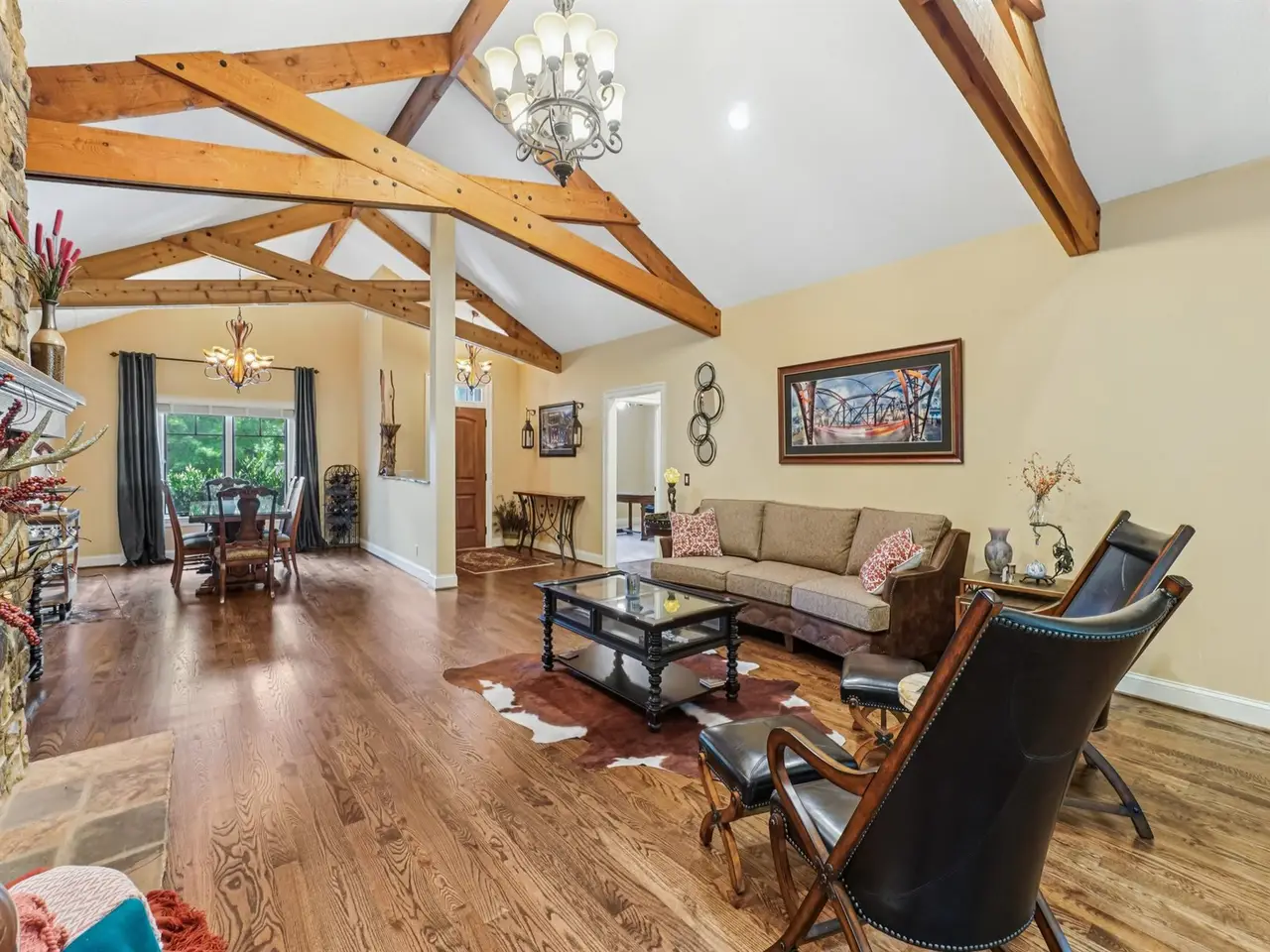 Welcome to luxury mountain living in this custom-built home on a spacious cul-de-sac. Nestled in the gated neighborhood of Ridgeview, enjoy the tranquility and privacy of a community with minimal traffic, breathtaking mountain views, and gorgeous sunsets. Beamed vaulted ceiling in the living and dining rooms with a gas fireplace. Outdoor living is a delight on the screened vaulted porch with a fireplace, wooded view, and a gas fireplace. The kitchen has abundant quartz counters, SS Bosch appliances, and a breakfast bar. The main level hosts the primary bedroom with a walk-in closet and an ensuite bath, and a split bedroom plan for privacy. The lower level is an entertainer's dream, featuring a gameroom that leads out to a covered patio and a home theatre with surround sound. Bedroom 4 is a guest retreat. A big cedar closet and two unfinished areas can accommodate a workshop, home gym, and more. Enjoy the neighborhood park with river with access. Fiber Optic Internet is available.