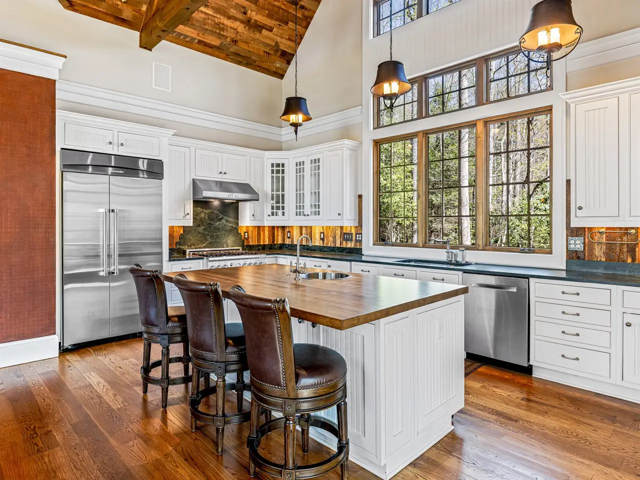 Welcome to 5019 Willow Road, a stunning 7.27-acre estate offering privacy, breathtaking long-range mountain views, and a peaceful retreat just 15 minutes from downtown Hendersonville and just outside the prestigious Champion Hills Country Club. This meticulously crafted home boasts an impressive custom design, with expansive windows showcasing panoramic views. Enjoy the serenity of 2 ponds with dock, and walking trails throughout the lush grounds. The large, level yard offers endless possibilities?whether you're envisioning a swimming pool, tennis court, or elegant garden escape. Inside, the main house features hand-painted walls, oak hardwood floors, reclaimed wood beams, and exquisite poplar leaf accents. Entertain in the gourmet kitchen. Thermador appliances. 3-car garage includes an apartment with a mountain-facing porch. Relax on the open-air patios or in the spacious primary suite with a luxurious bath. Magnificent sunset views await at this one-of-a-kind mountain estate!
