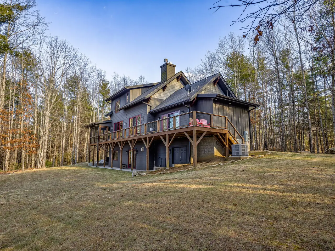 Located just 2.5 miles from DuPont State Forest! Built in 2019, this stunning Moss Creek design home blends quality craftsmanship with a warm, inviting feel. With 5 bedrooms and 3.5 baths, there's plenty of space for everyone. The Great Room features soaring wood-clad cathedral ceilings, rich hardwood floors, and a breathtaking floor-to-ceiling stacked stone fireplace - perfect for cozy evenings. Step onto the screened porch or expansive decks and enjoy the serenity of your 6+ acre property. The lower level offers a den, additional bedrooms, a full bath, and an incredible hybrid gym/rec room complete with a sauna - a perfect retreat after a day of outdoor adventures. Enjoy a mile of trails on this property, a large storage room and storage shed. Lake access comes with this offering on a 28 Private lake and the 6 acres backs onto 1,000 acres of conservation lands. Whether you're looking for a peaceful escape or a home base for hiking, biking, or paddling this is a fantastic opportunity.