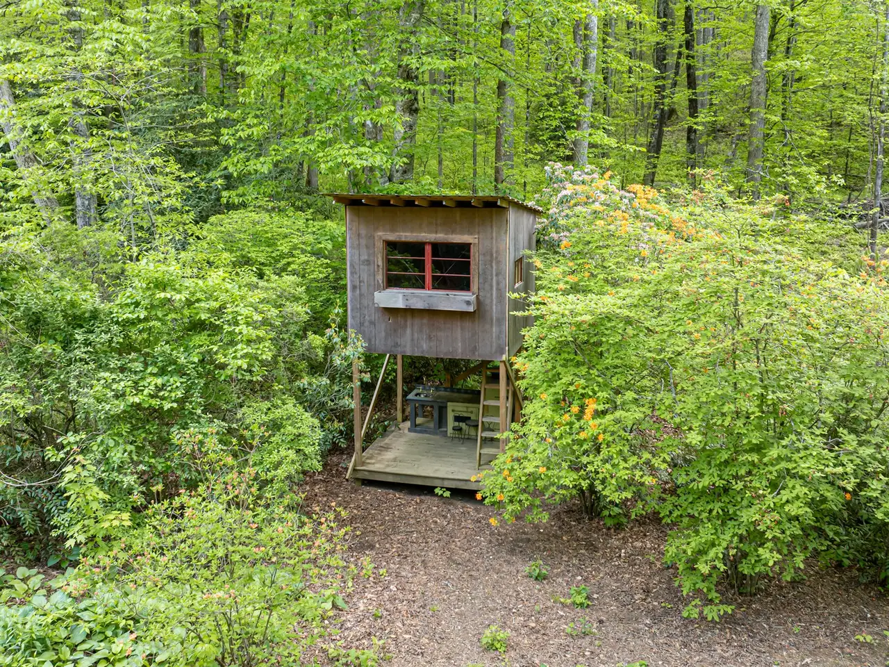 Rare Opportunity to Steward an Appalachian Homestead! Nestled on the edge of the temperate Appalachian rainforest in Pisgah, this unique homestead is surrounded by rare native plants, rushing creeks, and a serene, stream-fed pond. The property features a fully restored main cabin and a separate guest cabin, offering both tranquility and charm. 7.83 Acres of lush land including two creeks?Crab Creek and Dismal Creek?and featuring King Pond, a stream-fed pond named after Mr. King, a former lead horticulturist at Holmes State Educational Forest. He was also the steward responsible for planting many native species found throughout the property. The pond includes a new 12x12 pier, firepit, and was dredged in 2024. A truly rare and treasured feature: this property is part of the last known area of Pisgah National Forest to host the elusive Blue Ghost Fireflies. Their annual appearance?typically mid to late May?can be observed right from the private drive.