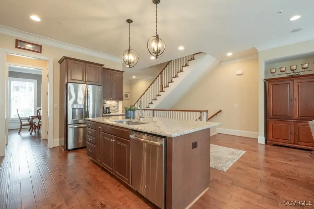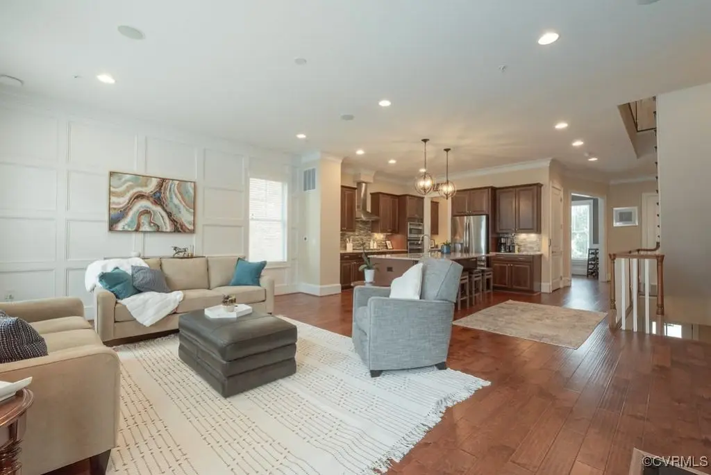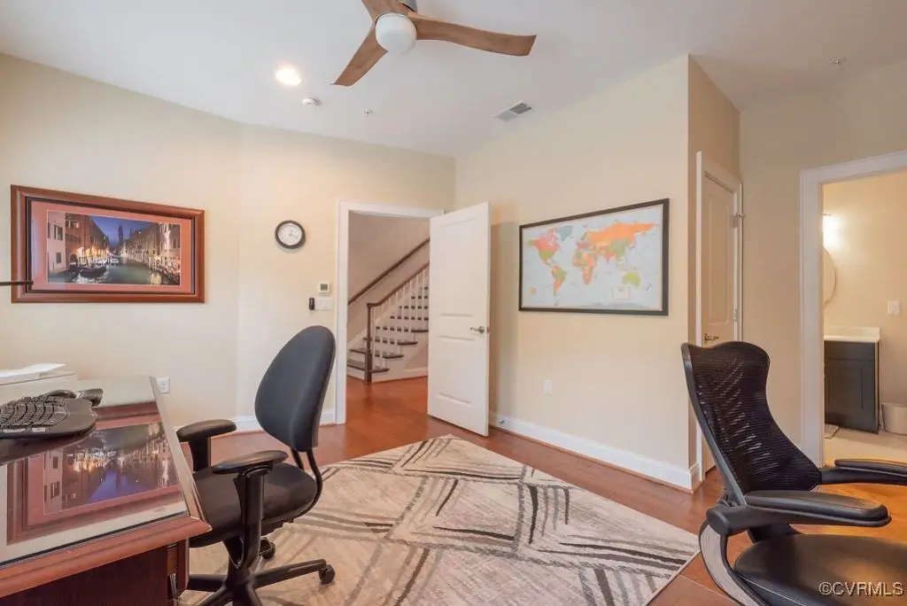 3,512 square feet! Experience Elevated Living in Greengate! Discover the pinnacle of luxury in this stunning 4-bedroom, 4.5-bath townhome featuring high-end finishes and a private elevator. Nestled in the highly desirable Greengate Community, this home offers walkability to shops, grocery stores, and restaurants, plus easy access to 288, I-64, and I-295. First Floor: Versatile office/bedroom with a full bath that has ADA doorway. Access to a finished two-car garage, custom drop zone. Second Floor: Gourmet kitchen with granite countertops, a large island with extra storage, gas cooktop, and butler's pantry. Elegant formal dining area in front of the home. The open-concept family room with a beautiful coffer wall and a gas fireplace. Access to the Spacious balcony with maintenance-free Trex decking, gas hookup, and beautiful views Third Floor: Luxurious primary suite with brand-new carpet, two custom walk-in closets, and a spa-like bath featuring a frameless glass walk-in shower, double vanity and tile floors. Second bedroom with full bath, tile flooring, and jetted tub. Conveniently located laundry room The Fourth Floor: Expansive den with plumbing for a wet bar Additional bedroom with a walk-in closet and full bath . Rooftop terrace featuring a gas stone fireplace, TV mount, and automatic roll-down screen for year-round enjoyment. Luxury Features: Private elevator for seamless access to all floors. Gorgeous engineered luxury vinyl flooring throughout, with new carpet in the primary suite and select bedrooms.Located in Greengate, this home offers an unmatched blend of luxury, convenience, and walkability. Don't miss this incredible opportunity-schedule your tour today!