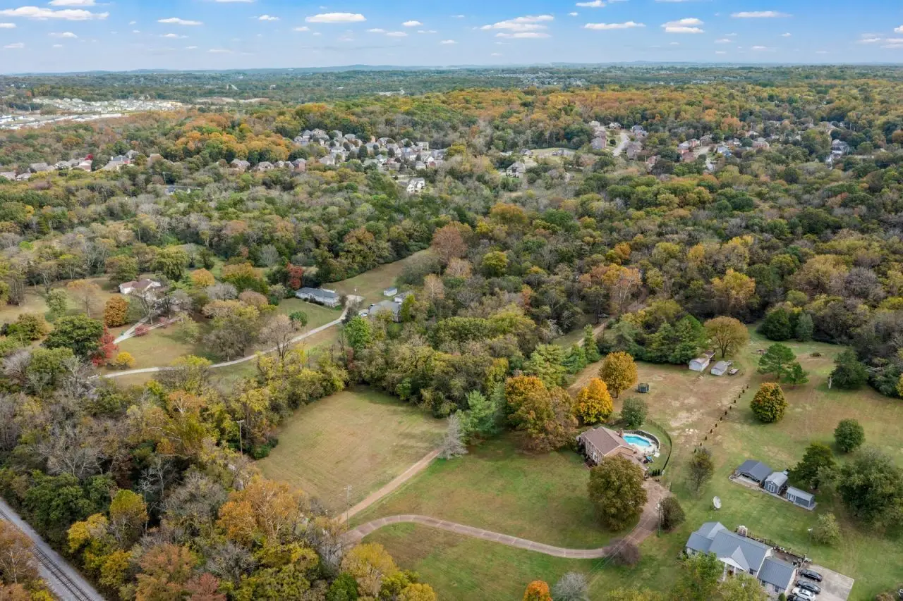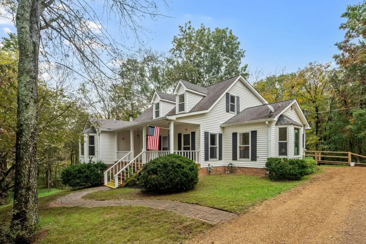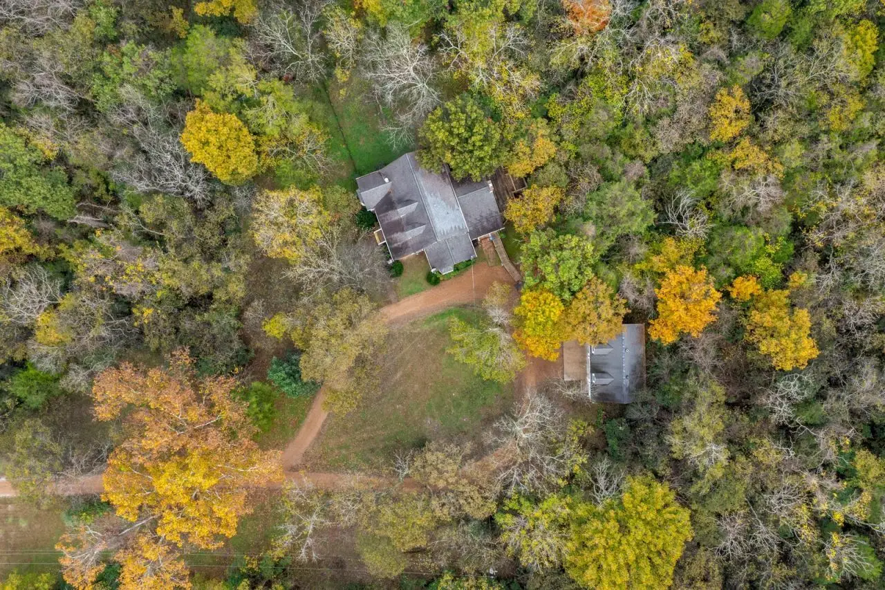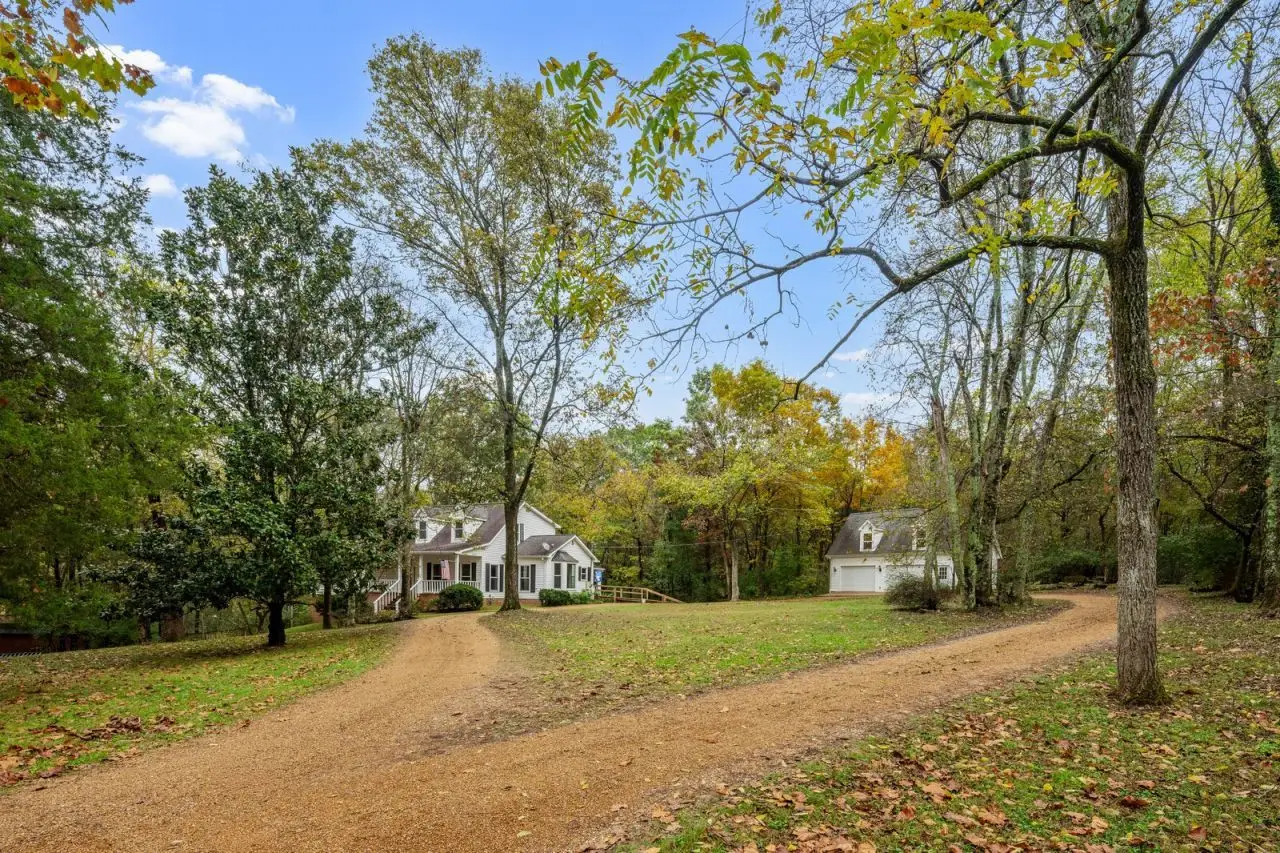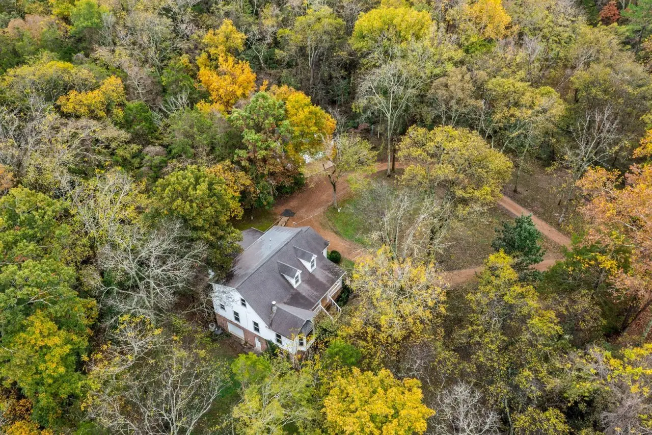A Farm House in the city! Do you crave privacy, nature,+ urban amenities? This is a rare find only 15 miles from downtown Nashville! Nearby parks, lakes, hospitals, shopping, & more! With a main floor primary suite, three cozy fireplaces, a large central kitchen, a rocking chair front porch, a spacious back deck, abundant storage, high ceilings, large windows & tons of natural light, this property feels like home immediately. Kitchen includes all new appliances - double convection ovens, refrigerator, trash compactor, dishwasher, & range with downdraft. Spacious main floor primary suite includes floor-to-ceiling windows. This home also features a large living room with a gas fireplace & oversized windows that offer stunning panoramic views of the surrounding forest. The living room includes French doors onto the large back deck, perfect for entertaining. Also on the main floor is a designated office with built-in bookcases & gas fireplace - could be used as a 5th bedroom. The lower level of this home includes a tucked-away den with a gas fireplace, perfect for a private office space, a home theater, guest quarters or an ideal space to gather with friends to watch the big game. Lower level also includes a third, attached garage & tons of storage! On the second floor are three more spacious bedrooms and two full bathrooms. This no HOA home also includes an oversized two-car garage with 300+ sq feet heated and cooled above for an artist studio, work from home space, climate-controlled storage, or home-based business headquarters. With over 5 acres, bring your horses! Partially wooded and partially cleared. Home is set back way off the road for additional privacy, no neighbors in sight! More info to come! Please do not drive onto property without an appointment. New Septic system in 2021 including tank and field lines, Roof a mix of new and 10 years old. Gutter guards installed on home and detached garage. Two news HVAC 2023. Gas Lines under home replaced in 2018.