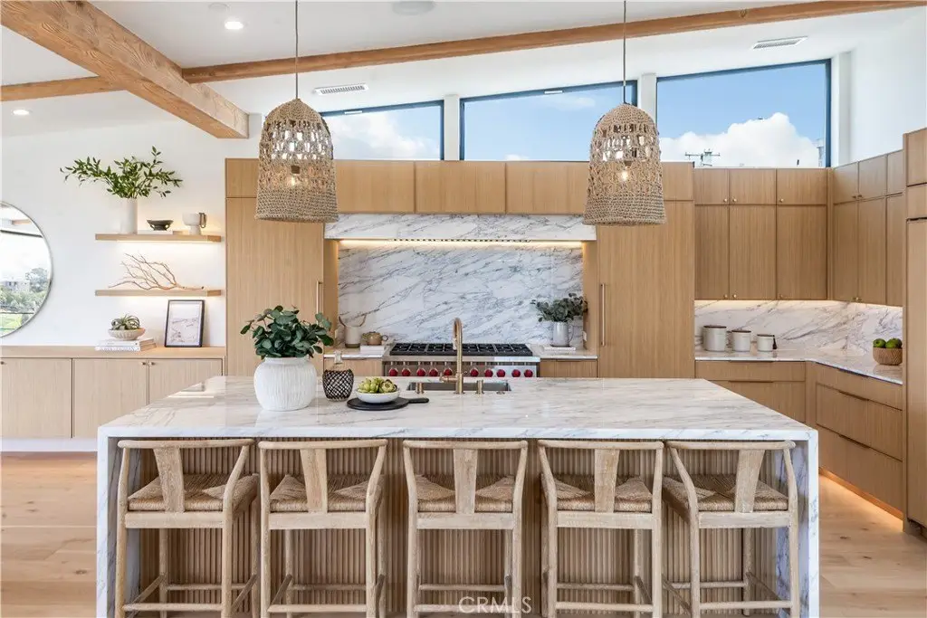 This brand-new, custom-built, modern coastal retreat blends refined design with exceptional craftsmanship. Spanning nearly 4,000 square feet, this thoughtfully curated home is just a short stroll from the greenbelt, Valley Park, and the vibrant energy of Pier Avenue. Step into a light-filled sanctuary where expansive open-concept living meets modern sophistication. A stunning 28-foot wall-to-wall sliding glass door seamlessly connects the interior to the outdoors, framing serene views of the greenbelt and Hermosa Valley. The chef’s kitchen is a standout centerpiece, featuring a 48-inch Wolf gas range with dual ovens, Sub-Zero side-by-side refrigerator/freezer, and a beautiful 10-foot marble island. Retreat to the spa-inspired primary suite, where a freestanding soaking tub and oversized rain shower create a true sanctuary. A 12-foot slider and french doors open to a private outdoor escape, blending indoor comfort with serene exterior living. Each bathroom is thoughtfully finished with premium fixtures and designer details for a cohesive, elevated experience. A spacious deck off the top level is perfect for grilling and chilling, while the rear patio offers a cozy outdoor lounge and lush landscaping—ideal for entertaining or unwinding in style. Additional highlights include an EV-ready garage, solar panels and carefully selected finishes that balance functionality with luxury. With thoughtful design throughout and premium appliances in every corner, this home is a true coastal masterpiece—crafted for comfort, style, and effortless California living. WHEN YOU BUY HERE, YOU’RE BUYING A LIFESTYLE.
