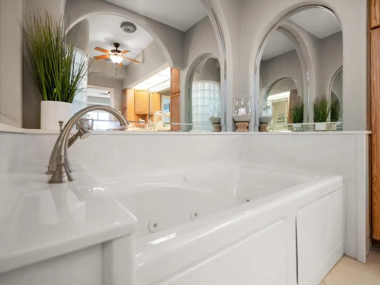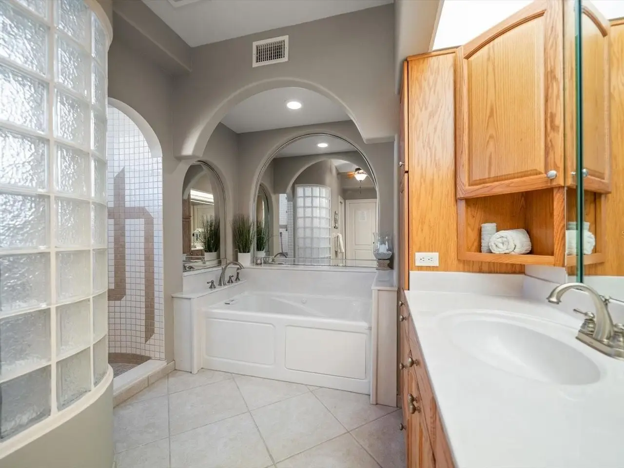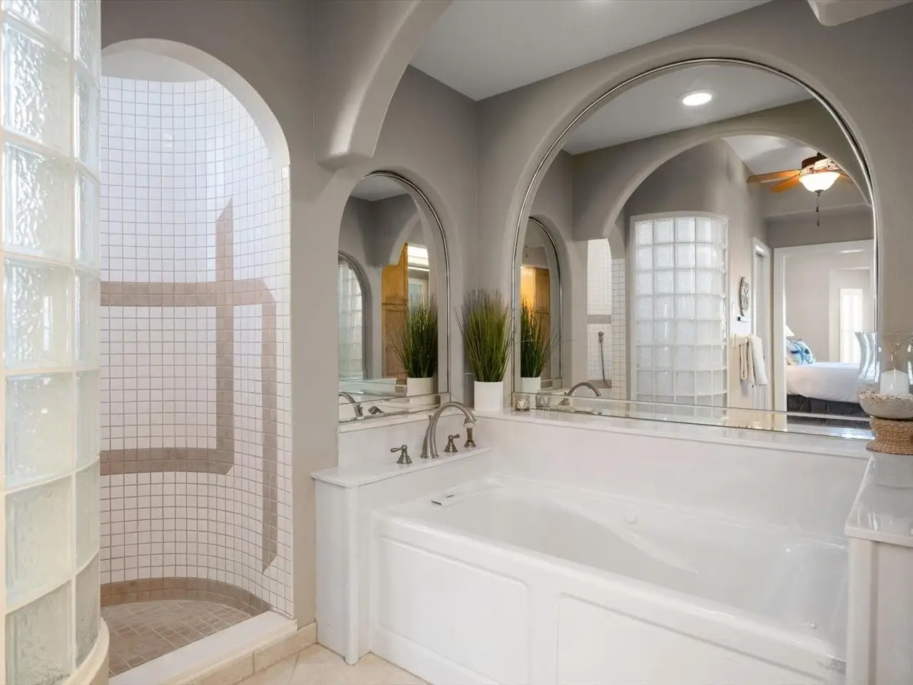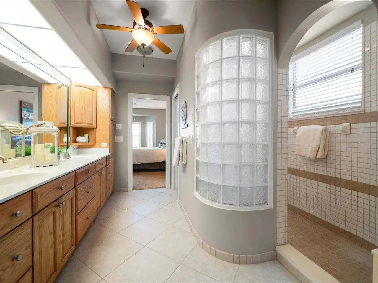 Main-level primary suite with spa-inspired bath