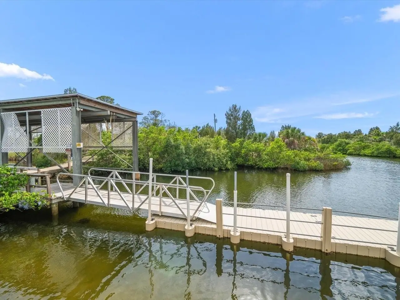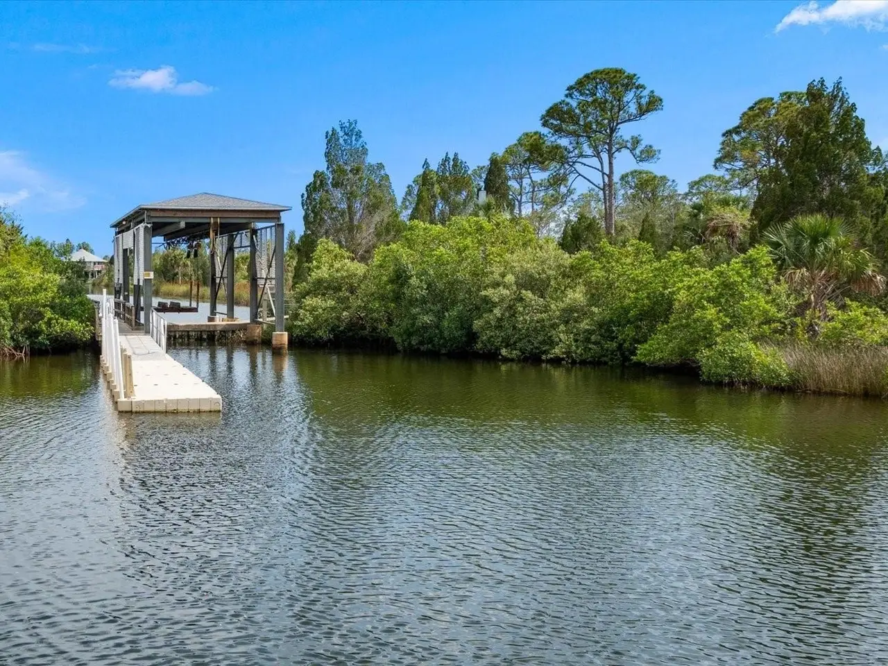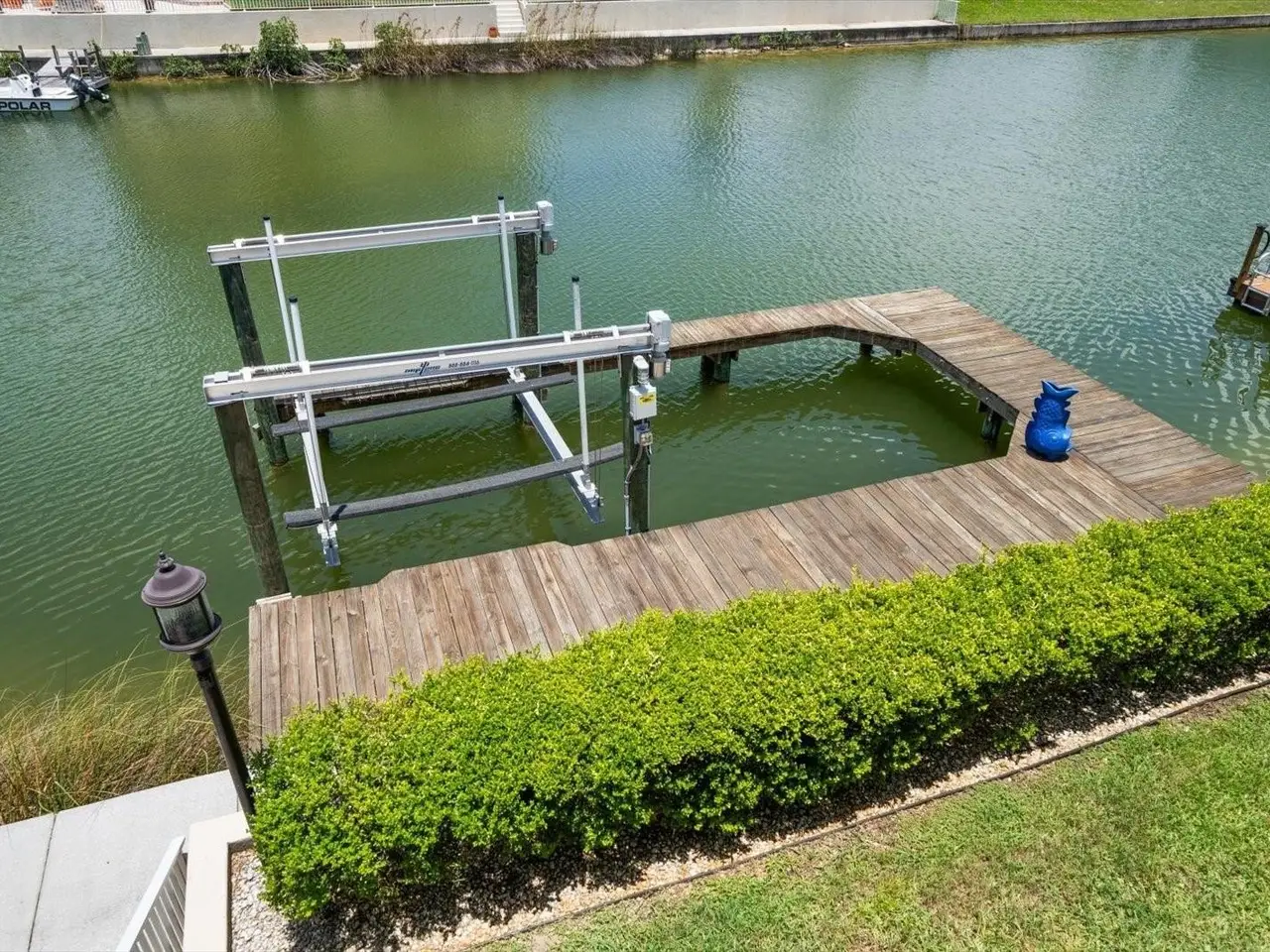 Private dock with boat lift and paddle craft dock