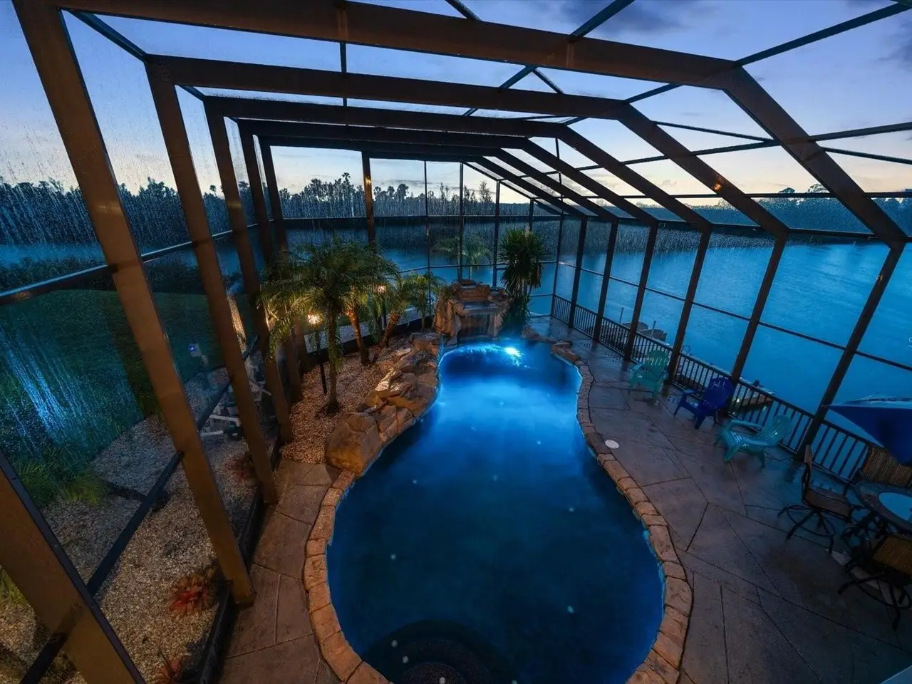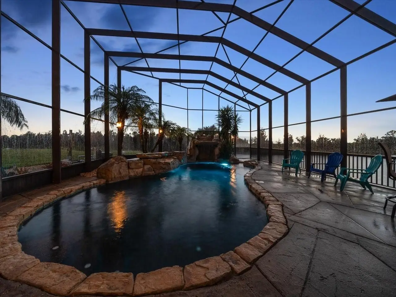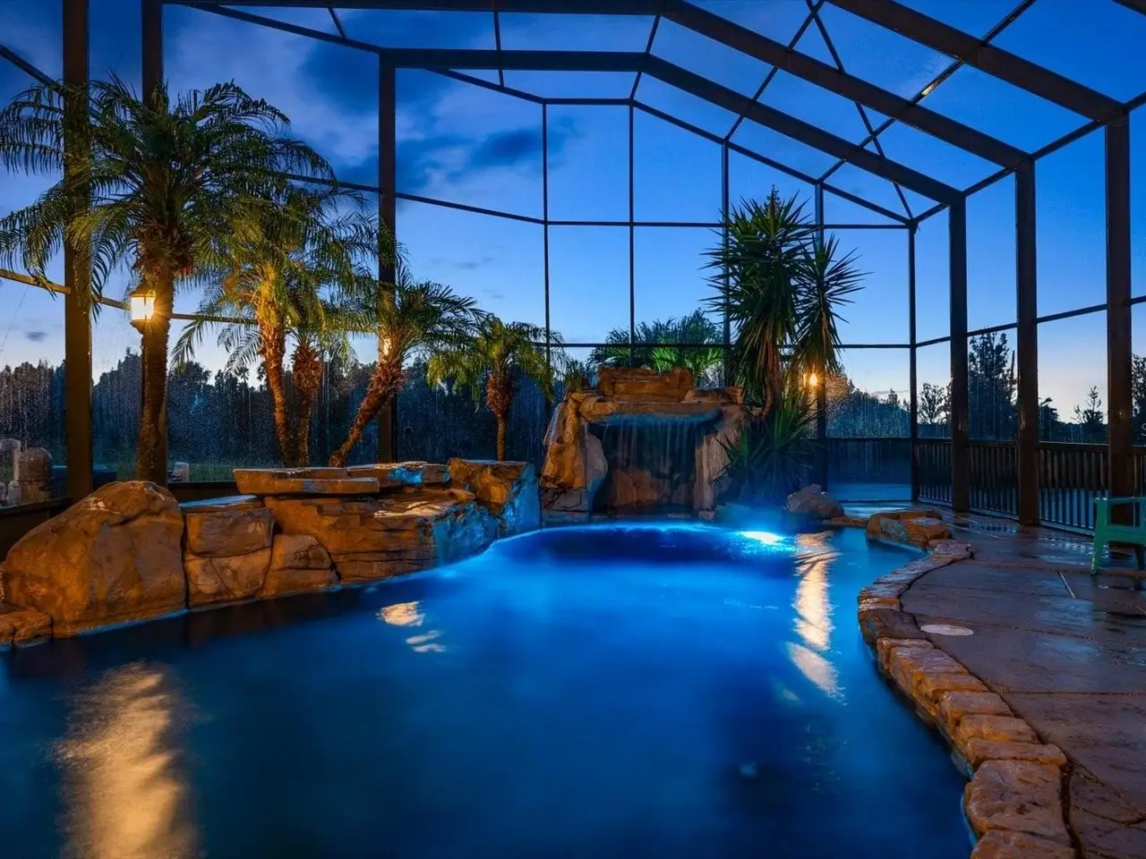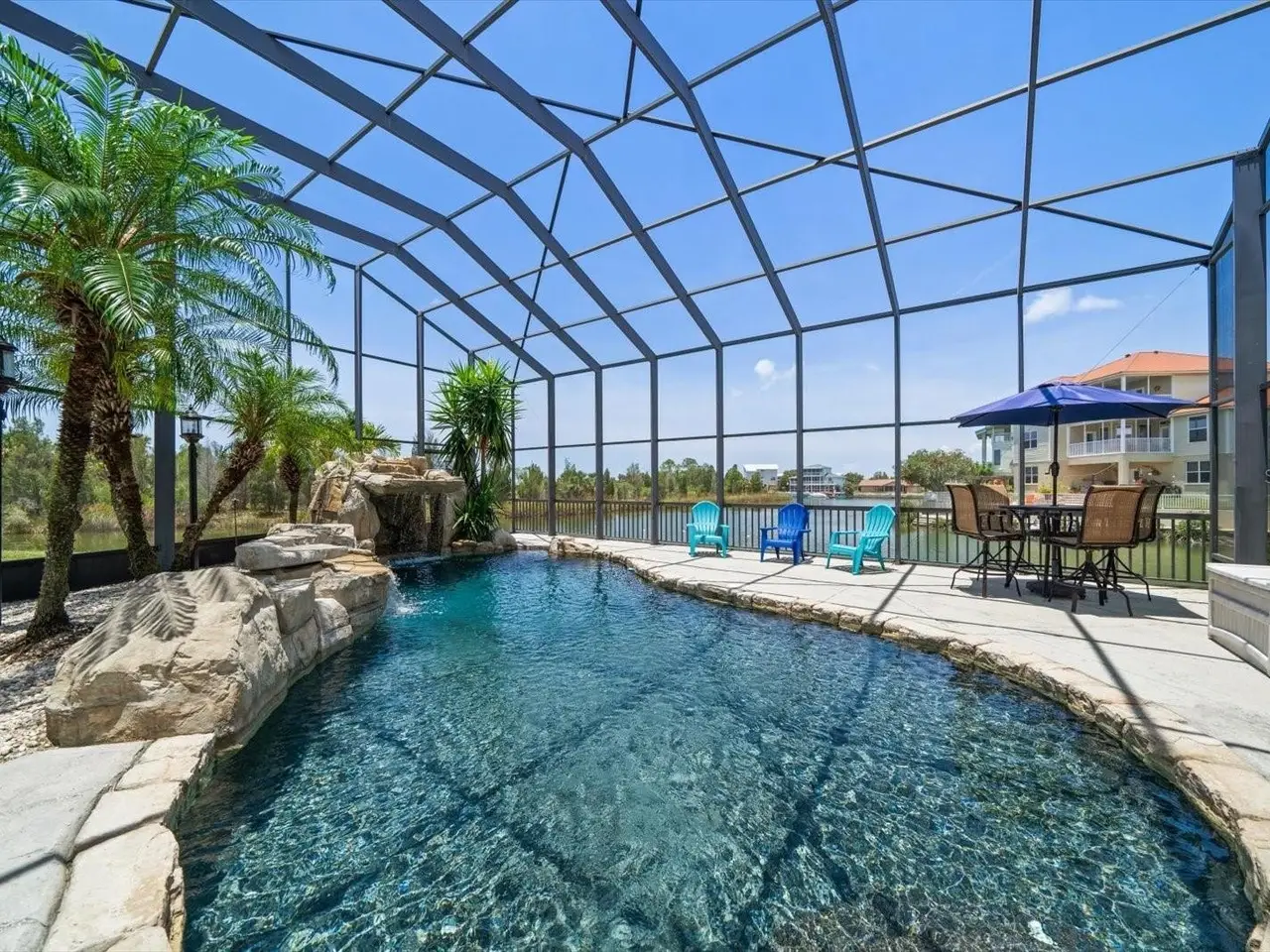 Resort-style saltwater pool with grotto waterfall