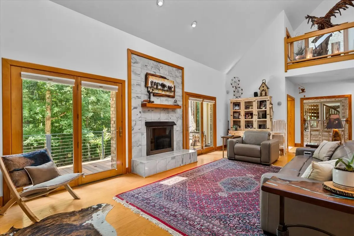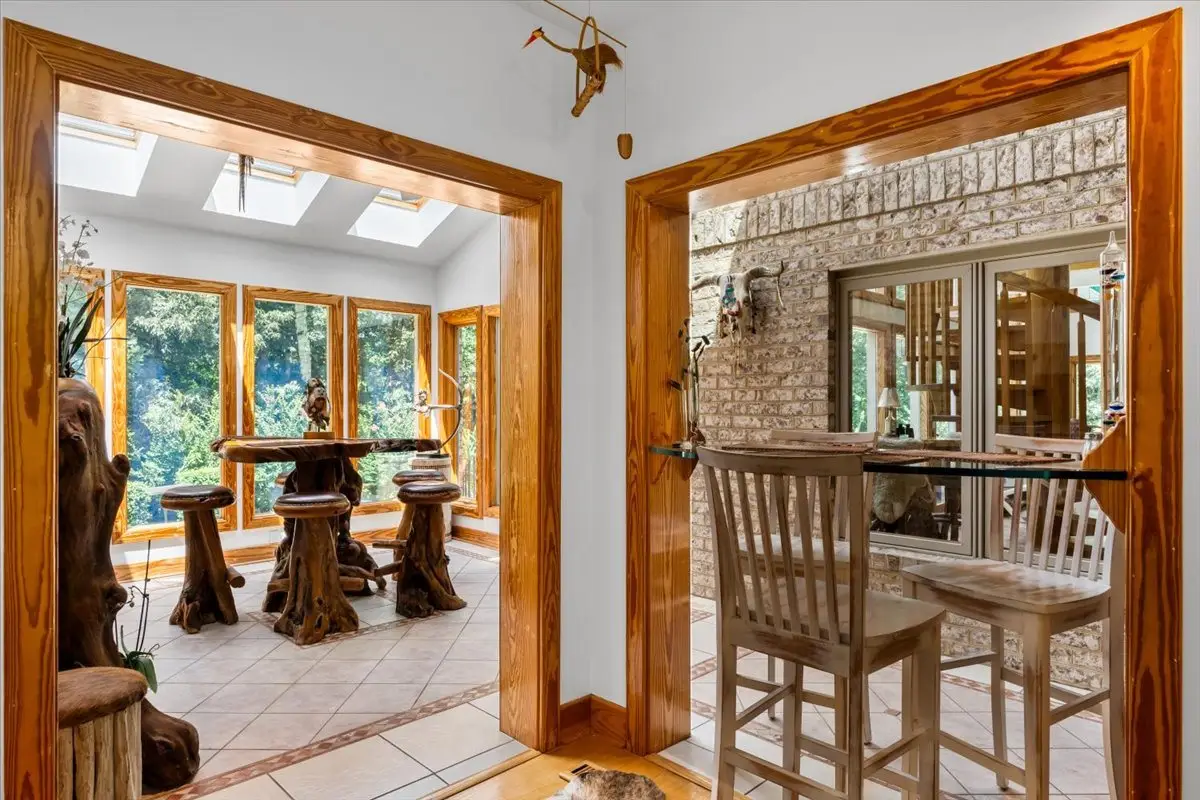 Welcome to this Exceptional Custom Built Brick Contemporary Estate located on 10+ Heavily Wooded Acres! This Absolutely Amazing Home Sits Deep on the Property & Offers Total Privacy & Seclusion! The Super Light & Bright Entry Opens up to a Stunning 2 Story Great Rm w/Custom Woodworking! The Main Level Offers a Formal Great Rm w/Deck Entry + Kitchen/Breakfast Area Filled w/Sun Drenched Light! In addition, there is a Formal Living Rm w/FP & All Glass Sunroom Overlooking the Lush Rear Yard! The Main Level Also Offers a Guest Suite w/Full Bath! Upper Level Has 3 Bedrooms Including a Breath Taking Primary Suite w/Sitting Area + Upper Level Loft! This Room also Offers an Impressive Primary Double Baths w/Oversized Walk In Closets + Steam Shower/Soaking Tub In Between! Upper & Lower Level Laundry Rooms! 2 Car Main Level Garage/Exercise Rm which is Heated/Cooled + a Basement 3 Car Garage! Stunning Gunite Pool w/Overflowing Hot Tub! New Roof in 2025! Whole House Generator! Multiple Decks!