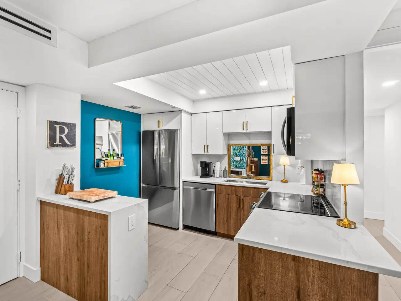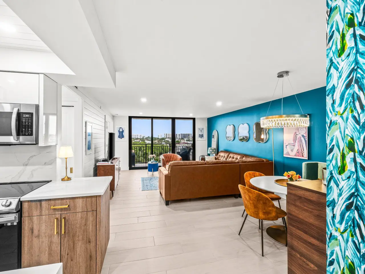 Wow! South exposure 2 Bedroom/ 2 Bath fully renovated at The Regency Highland! Incredible views of the intracoastal water way and ocean from this 7th floor condo. Smartly re-imagined with an open kitchen, fine finishes and details throughout. Spacious primary suite with huge walk-in-closet and oversized shower, double sink vanity and a washer/ dryer. On floor storage locker #04 & Parking space #208 in the garage. Regency Highland is a beautifully maintained building with recently renovated common areas. There are many building amenities. Two pools, 4 pickleball courts, tennis, club room, gym, multiple bbq areas, 24H security, & private beach with tiki huts, lounge chairs, and kayak storage. Fully renovated building. Low HOA fees & very healthy reserves! Located minutes from Downtown Delray Beach & Boca Raton.
