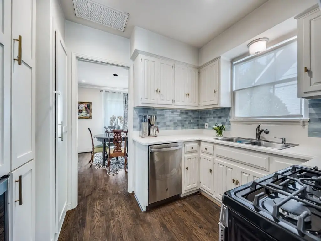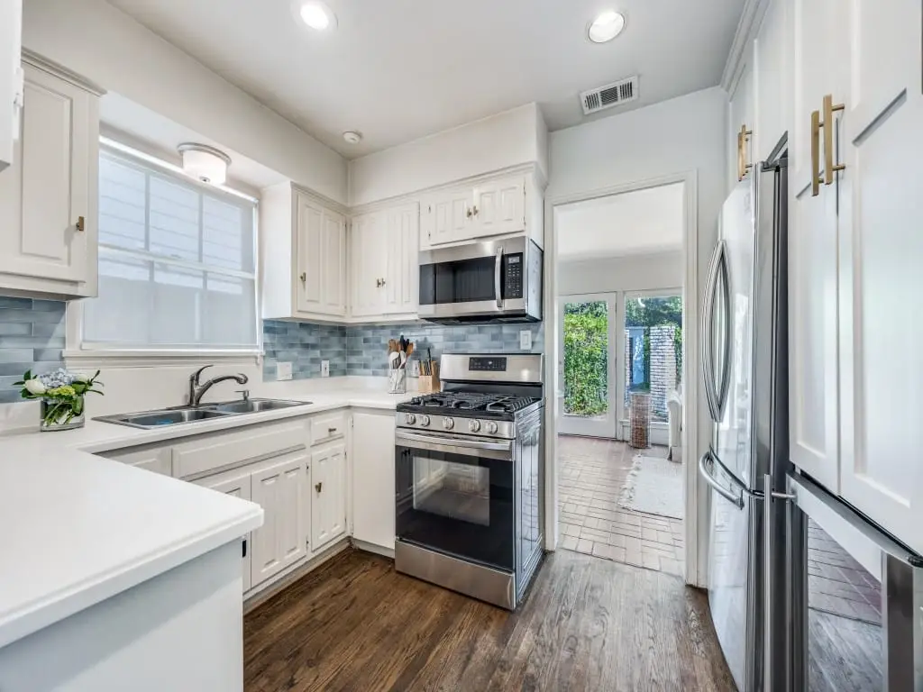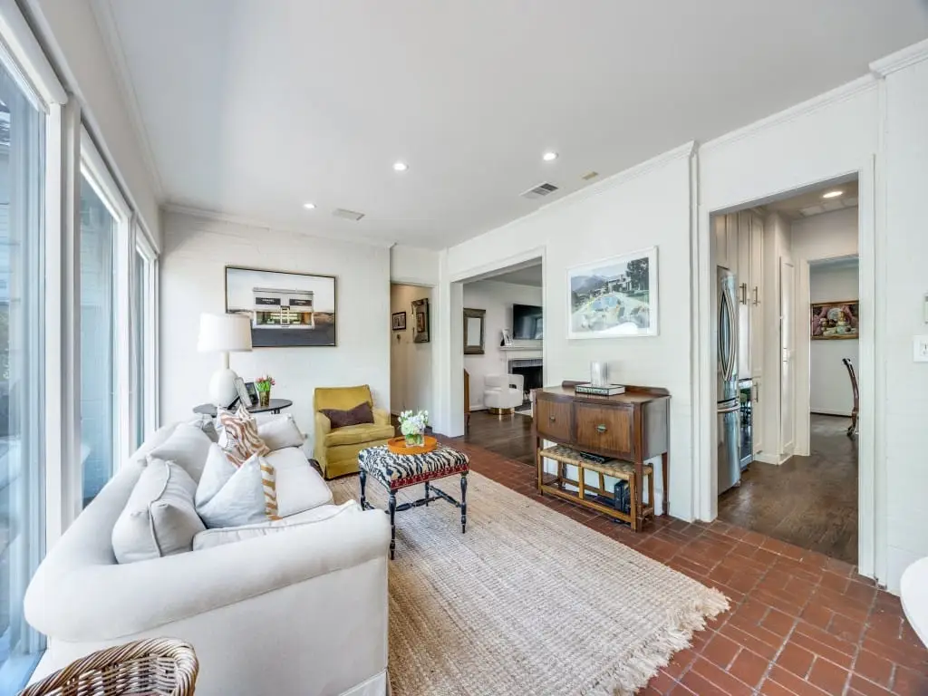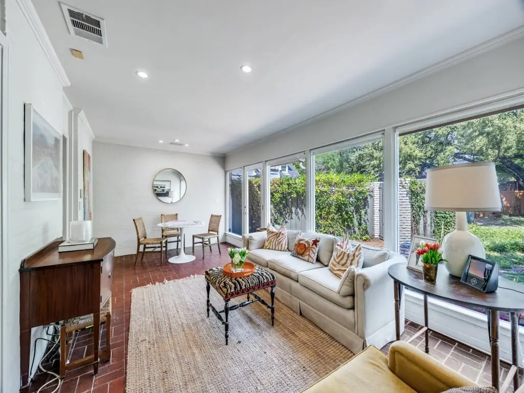 Charming cottage in Dallas' most coveted neighborhood. Nestled on a quiet tree-lined street in the heart of Dallas, this impeccably updated two bedroom, two bath, cottage blends timeless charm with modern sophistication. From the moment you arrive, the inviting curb appeal complete with manicured landscaping and a welcoming front porch sets the tone for what's inside. Step through the front door into a sun drenched living space, featuring gleaming hardwood floors throughout, designer lighting, and an open concept layout, perfect for entertaining. The gourmet kitchen, with beautiful blue backsplash, brand new appliances and custom cabinetry seamlessly connects to a cozy dining nook and spacious living room anchored by a statement fireplace. There is also a family room overlooking the beautiful backyard with gorgeous brick. The primary suite offers a serene retreat with ensuite bath featuring a walk-in shower and elegant finishes. The second bedroom is equally charming and ideal for guests or home office. The second bathroom is softly designed with modern fixtures and classic touches. Enjoy the private backyard oasis featuring a beautiful brick deck, perfect for morning coffee or evening gatherings under the stars. With walkability to local boutiques, top rated restaurants and a lush park, this home offers a perfect blend of tranquility and urban convenience.