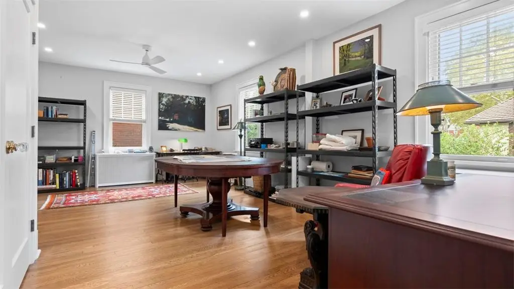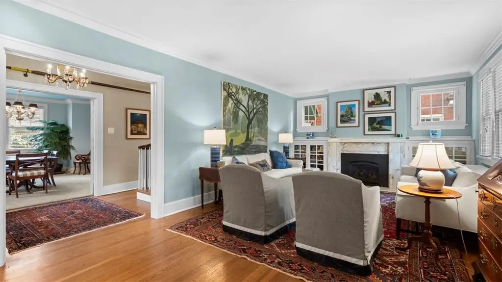 Gracious & meticulous 3 story w/ wonderful detail, located in the heart of Highland Park. HW floors, charming built-ins, crown molding, French doors, stained glass windows, high ceilings. LR w/ gas log marble FP. Center of attention in the DR are stained glass windows, an elegant brass chandelier. Cheerful kitchen remodeled in 2019, bathed w/ light from a picture window, boasts pro-style polished appliances. 2nd floor includes en suite BR w/ bow windows, walk in closet, bath. 2 BRs were combined to form 1 large room w/ closets for storage; perfect for studio/office/FR/BR, adjacent bath. 3rd floor provides 2 good sized BRs, w/ large closets, bath. Unfinished basement is light, bright space for laundry & storage, w/ outside access. Outside spaces include 2 car garage, gated drive w/ turn around room, fenced in back yard, spacious awning covered front porch & lovely landscaped stone back patio. Truly a beautiful home, an easy walk to The Park w/ a convenient bus stop across the street.