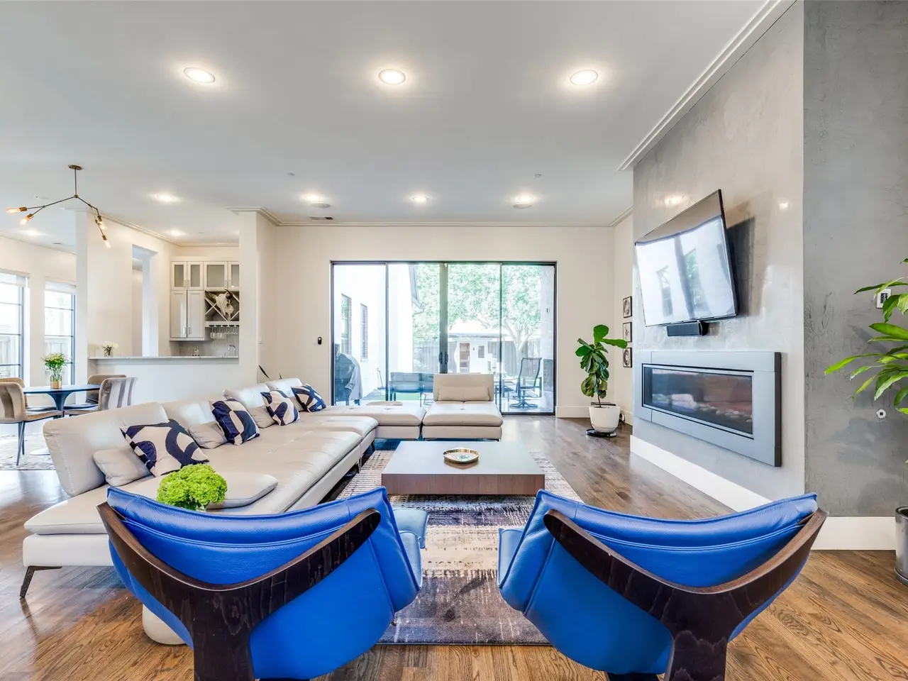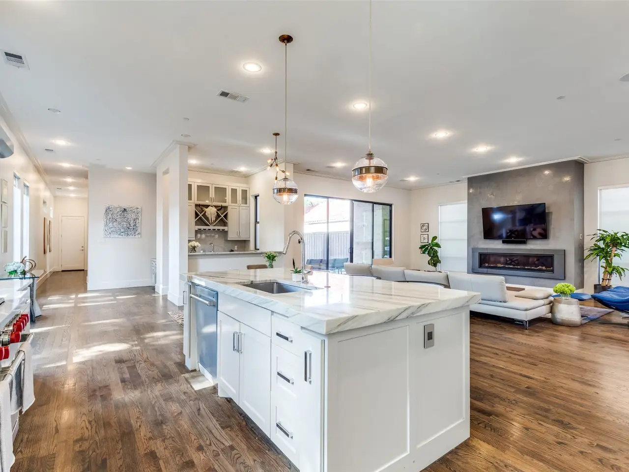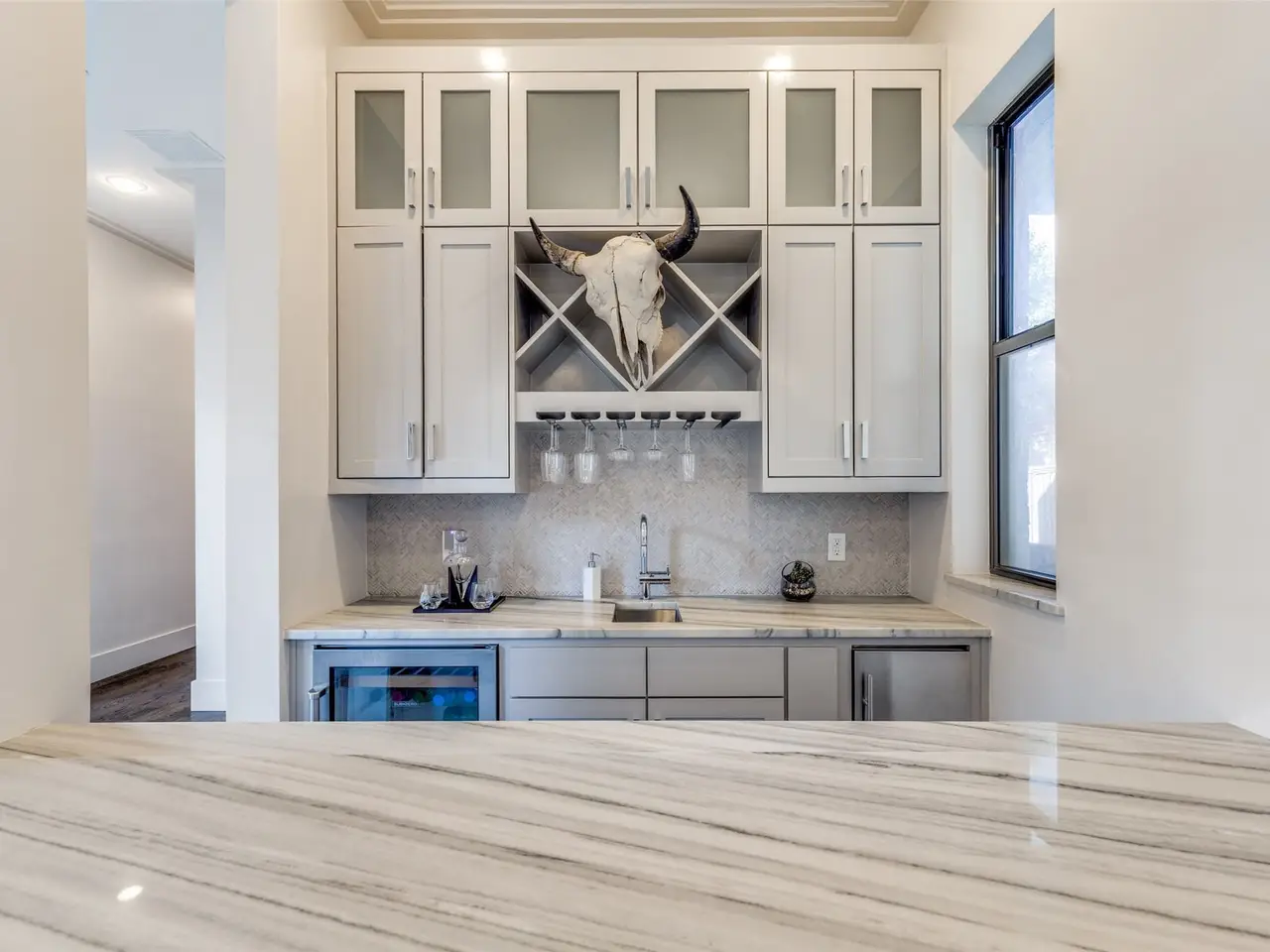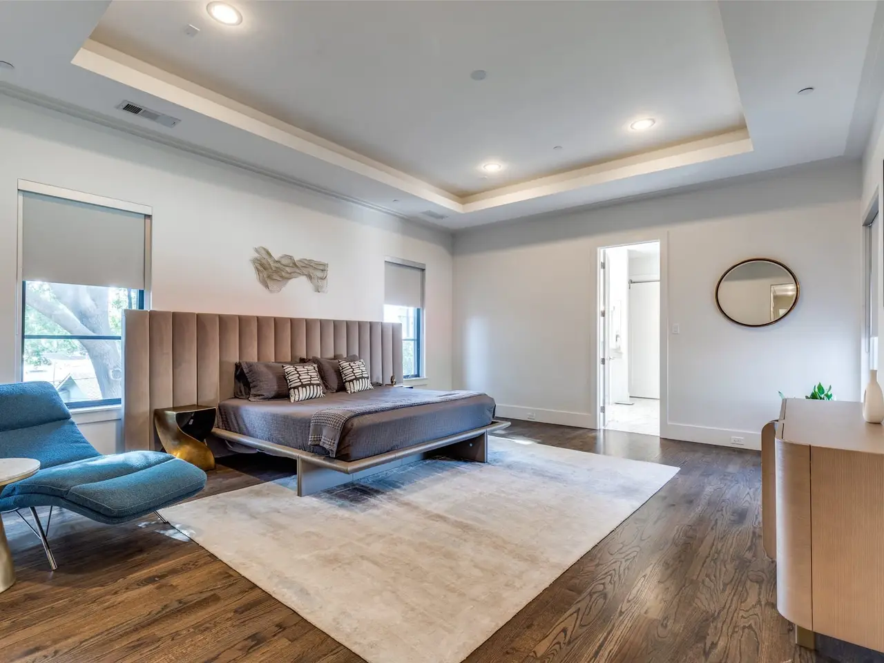 Introducing a stunning modern residence ideally situated just blocks from Dallas Country Club, HP Village, Snider Plaza, and the highly regarded schools including Armstrong Elementary, Highland Park Intermediate and Middle Schools. From the moment you step inside, the expansive living and entertaining spaces speak to a refined yet welcoming lifestyle, with large windows that frame views of the pool, sauna and a Venetian plaster accent wall surrounding the fireplace in the living area. The heart of the home is centered around the chef's kitchen, outfitted with a professional Wolf range, a 48-inch Sub-Zero refrigerator, two Sub-Zero refrigerated drawers, and an approximately 150-bottle Sub-Zero wine cooler - an ensemble that balances performance and sophistication. The home flows gracefully to an elegant office, where soaring 16-foot coffered ceilings and a dramatic 14-foot-high wall of windows bathe the space in natural light. Beyond, an open loft overlooks the first floor, offering both visual connection and a sense of spaciousness. A wet bar, complete with a Scotsman ice maker and Sub-Zero refrigerator, rounds out the living and entertaining experience in style. A first-floor bedroom with en-suite bath offers convenience and privacy, while upstairs, three additional large bedrooms each feature their own luxurious baths. The expansive primary suite is a sanctuary unto itself, boasting a luxury bath and a sprawling 20x19-foot walk-in closet. A wet bar, complete with a Scotsman ice maker and Sub-Zero refrigerator, rounds out the living and entertaining experience in style. Home is also equipped with a whole home Generac Generator.