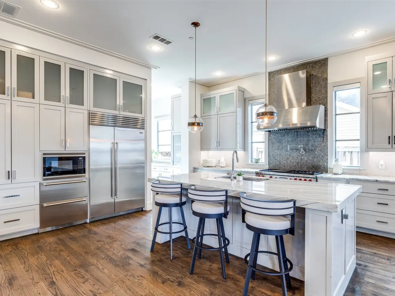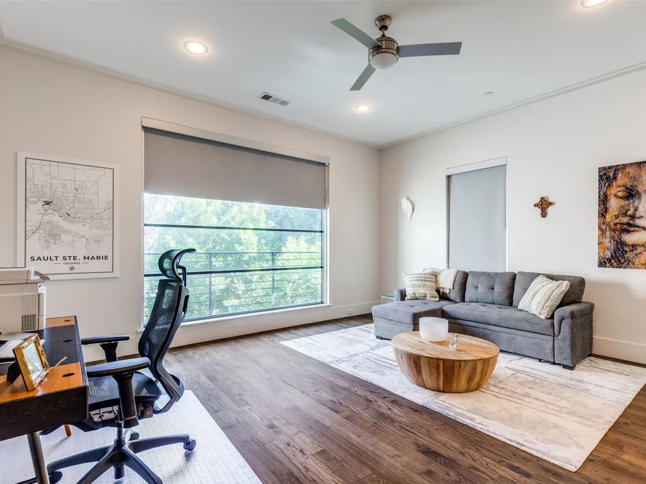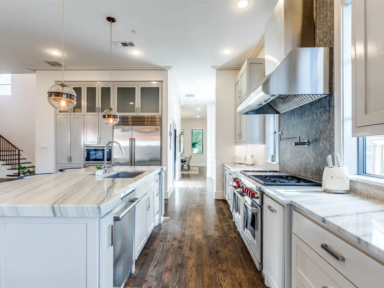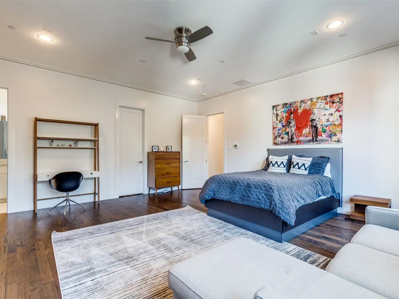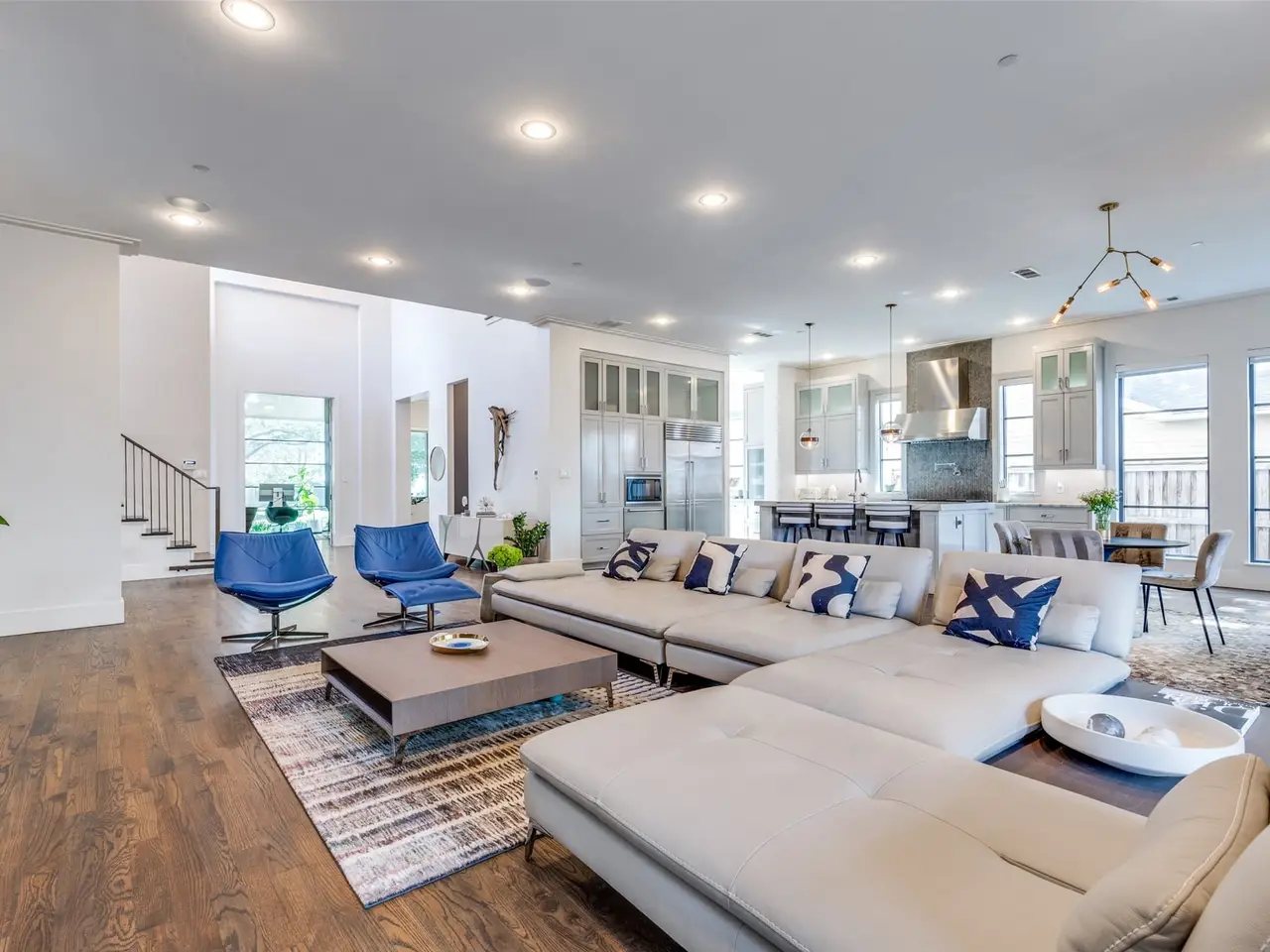 Introducing a stunning modern residence ideally situated just blocks from Dallas Country Club, HP Village, Snider Plaza, and the highly regarded schools including Armstrong Elementary, Highland Park Intermediate and Middle Schools. From the moment you step inside, the expansive living and entertaining spaces speak to a refined yet welcoming lifestyle, with large windows that frame views of the pool, sauna and a Venetian plaster accent wall surrounding the fireplace in the living area. The heart of the home is centered around the chef's kitchen, outfitted with a professional Wolf range, a 48-inch Sub-Zero refrigerator, two Sub-Zero refrigerated drawers, and an approximately 150-bottle Sub-Zero wine cooler - an ensemble that balances performance and sophistication. The home flows gracefully to an elegant office, where soaring 16-foot coffered ceilings and a dramatic 14-foot-high wall of windows bathe the space in natural light. Beyond, an open loft overlooks the first floor, offering both visual connection and a sense of spaciousness. A wet bar, complete with a Scotsman ice maker and Sub-Zero refrigerator, rounds out the living and entertaining experience in style. A first-floor bedroom with en-suite bath offers convenience and privacy, while upstairs, three additional large bedrooms each feature their own luxurious baths. The expansive primary suite is a sanctuary unto itself, boasting a luxury bath and a sprawling 20x19-foot walk-in closet. A wet bar, complete with a Scotsman ice maker and Sub-Zero refrigerator, rounds out the living and entertaining experience in style. Home is also equipped with a whole home Generac Generator.