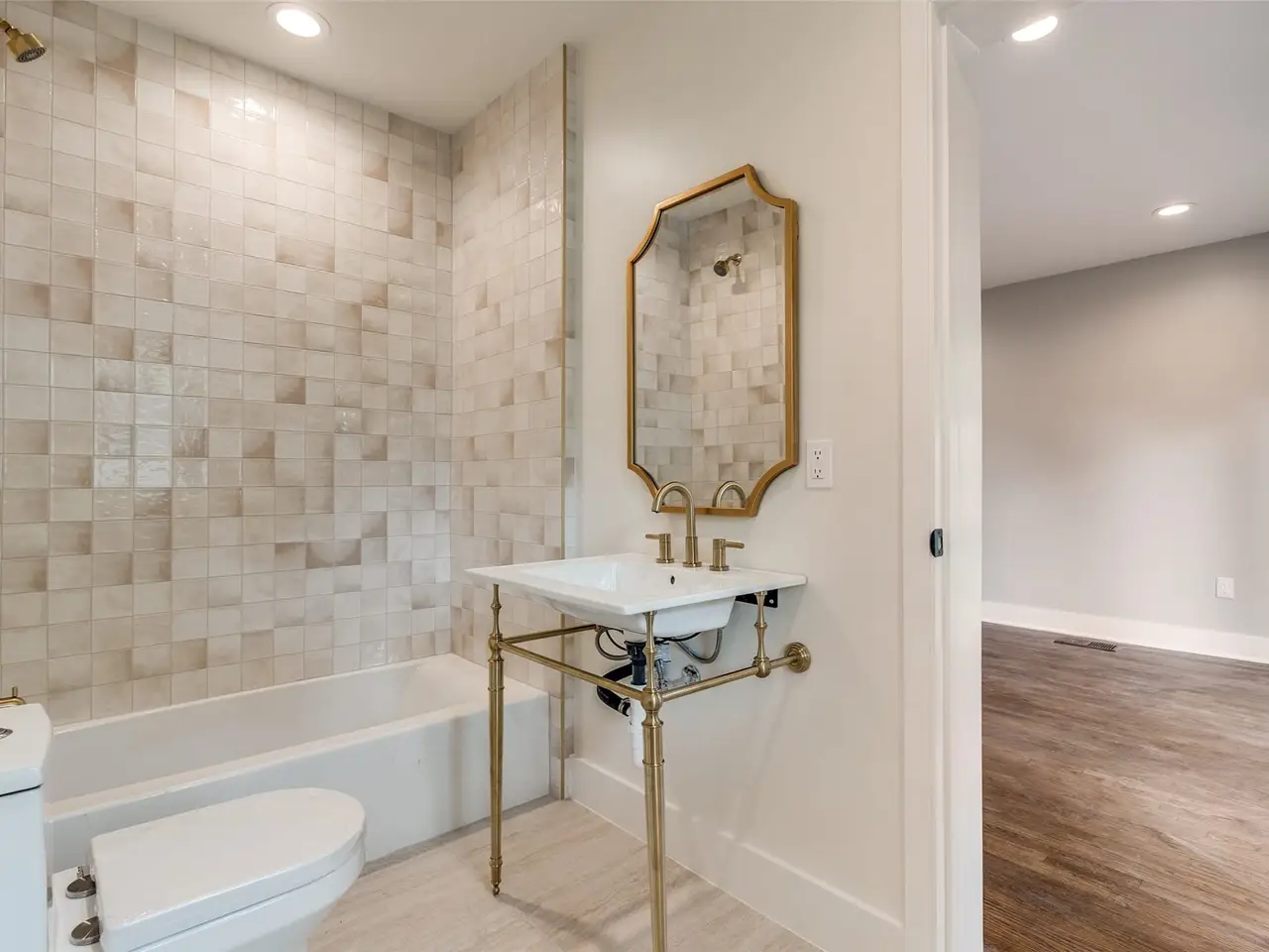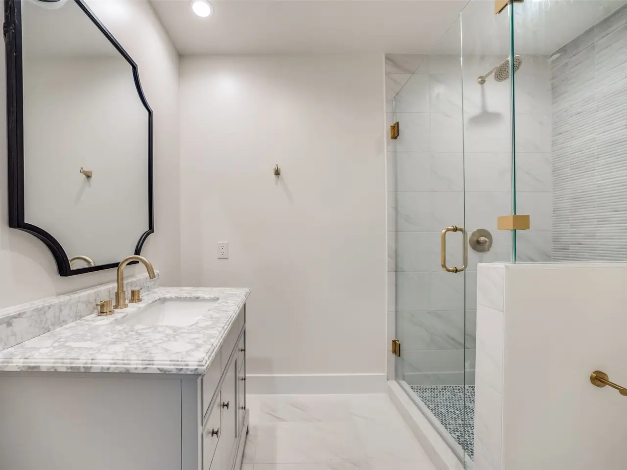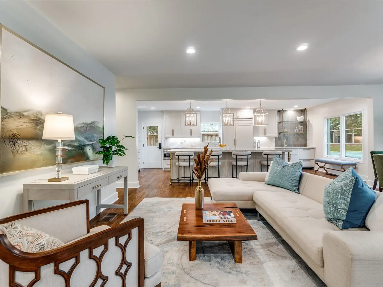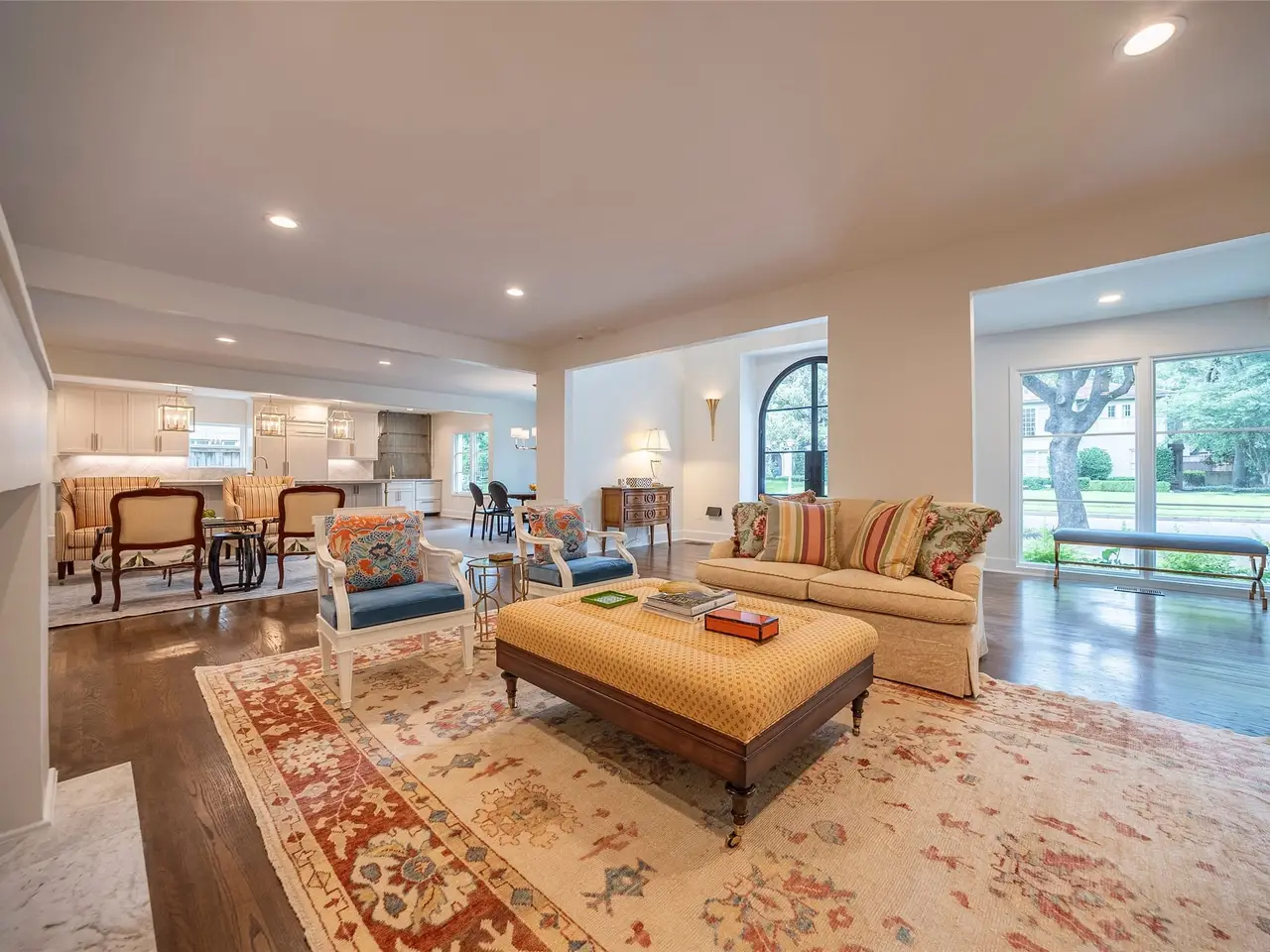 4541 Westway, an opulent single-family residence nestled in the prestigious Highland Park community and zoned to Bradfield Elementary. This home has undergone a meticulous transformation, taken down to the studs and thoughtfully remodeled to offer luxury living. The property is on an 80x121 lot, and was originally 5,455 square feet, but an additional 151 sq ft was added, for a total of 5,606 sq ft. As you enter, you are welcomed by two living areas, a dining room, and open kitchen, creating an inviting ambiance for both intimate gatherings and entertaining. The gourmet kitchen is a chef's dream, equipped with top-of-the-line appliances, including a Sub-Zero refrigerator and a professional-grade gas range. The magnificent island, adorned with stunning Taj Mahal quartzite, serves as the centerpiece for culinary creativity and casual dining. Adjacent to the kitchen, the breakfast room boasts a sophisticated bar area, perfect for hosting. The primary suite, on the main level, offers a private retreat with ample space. A secondary bedroom or flex space adjacent can easily serve as a nursery or refined study, complete with a full bath for added convenience. Ascend to the upper level, where you will discover a game room featuring a fireplace and an additional sitting area, ideal for relaxing with family or entertaining friends. Four additional bedrooms, each with its en-suite bath, providing privacy and comfort. The unique four-car garage is complemented by a guest room, pre-plumbed for convenience. Every inch of this residence has been curated with premium finishes, showcasing a commitment to luxury and style. Don't miss the opportunity to claim this remarkable Highland Park residence as your own. Close to parks, retail, and highways.