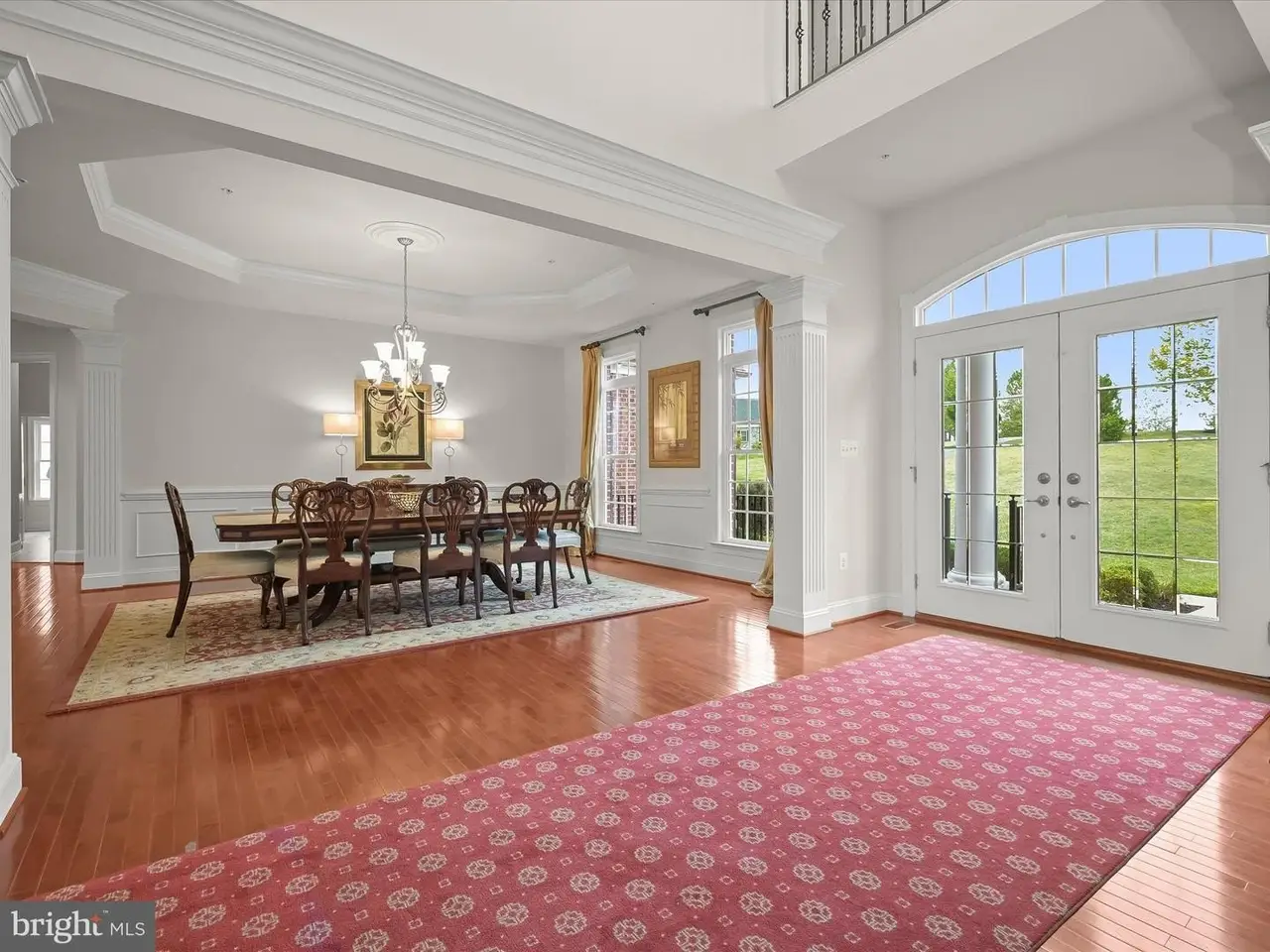 Welcome to this stately NV Mount Vernon residence in the sought-after Schooley Mill Farm community. Set on 1.14 acres with a private drive, this 6-bedroom, 5.5-bath transitional-style home impresses with a brick front, soaring columns that define the covered porch, professional landscaping, and hardscaping that includes exterior lighting, rear paver patios, a circular stone seating wall, and a serene koi pond with a bridge. Enjoy outdoor living on the composite deck with vinyl railings, framed by tree-lined views. A 3-car side-load garage with EV charging station completes the exterior. Inside, a dramatic two-story foyer with fluted columns, tray ceiling, crown moldings and dual chandeliers opens to formal living and dining rooms. A conservatory, private study with French doors, and a two-story family room with coffered ceiling, Palladian window, and gas fireplace set the stage for elegant living. The gourmet kitchen features a commanding center island, two breakfast bars, professional-grade stainless appliances, walk-in pantry, butler's pantry, and a breakfast room in the round with deck access. A mudroom with a built-in arrival bench and generous laundry room with custom cabinetry add everyday convenience. Upstairs, four ensuite bedrooms each feature private baths and walk-in closets, while the luxurious primary suite offers double French doors, tray ceiling, a sitting room in the round, and a spa-inspired bath with two separate vanities and three walk-in closets - one is an oversized bonus closet over the garage. A Juliette balcony adds charm between the secondary bedrooms. The daylight walk-out lower level is designed for daytime or evening entertainment with a full wet bar and back bar, recreation and card rooms, billiards space, media room, exercise room, two additional bedrooms with walk-in closets, a full bath, and abundant storage. This exceptional home blends timeless elegance, thoughtful design, and resort-style amenities in a spectacular location nearby one of Howard County's hidden treasures- Schooley Mill Park. Spanning 192 acres of meadows, woodlands, and wetlands, the park offers a peaceful retreat and abundant wildlife viewing. The park also features over four miles of scenic trails, a regulation-sized cricket field, baseball and softball diamonds, basketball and tennis courts, eight outdoor pickleball courts, and three public equestrian rings. Families and friends will enjoy the farm-themed inclusive playground, designed for children of all ages and abilities, with swings, slides, sensory play areas, and shaded picnic spots. With free parking, brand-new restrooms, water fountains, and multipurpose facilities, Schooley Mill Park is within walking distance and is a true community gem blending nature, recreation, and accessibility. Come home to a very special home and a very special location surrounded by opportunities to retreat in nature, or participate in robust outdoor activities for everyone of every age!