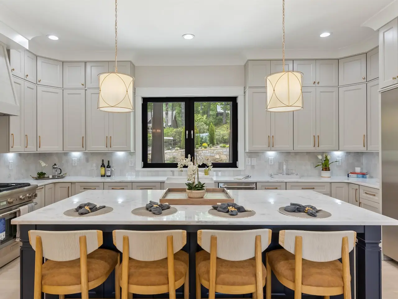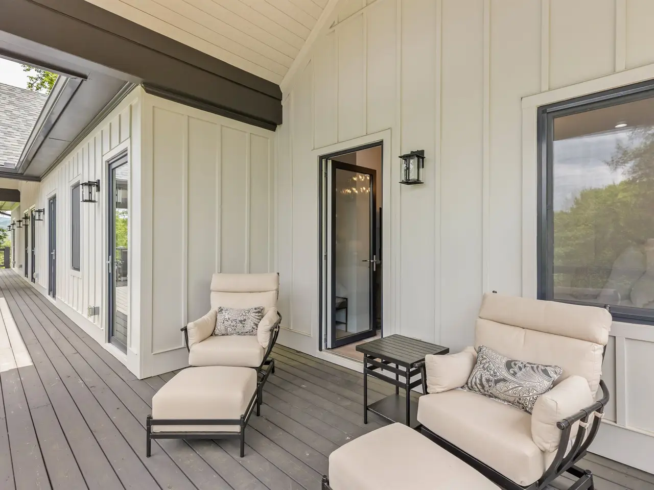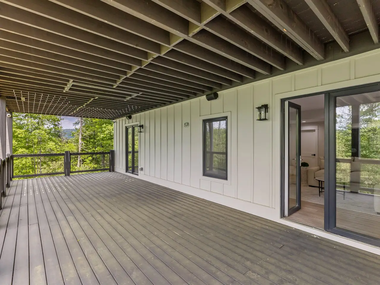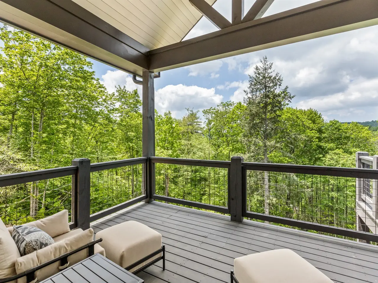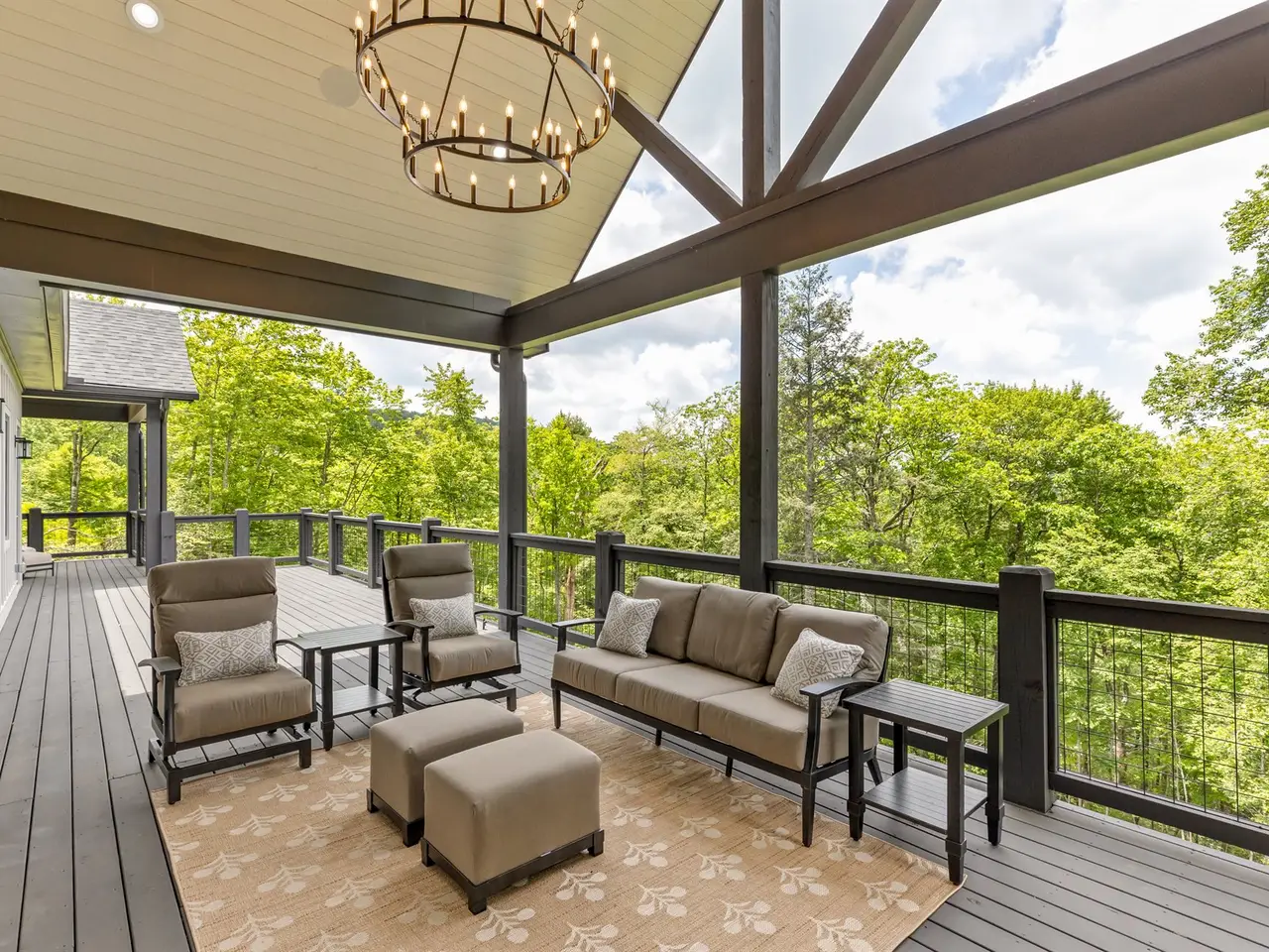 Come fall in love with this beautifully crafted new construction home, designed for luxurious mountain living with timeless style & high-end finishes. Built with precision & quality in every detail, the home features stunning triple-clad European glass doors & windows for peace & quiet, blending durability with elegant design. The main level offers an open, light-filled floor plan with soaring ceilings & a stunning wood-burning fireplace with gas starter. The beautifully tiled gourmet kitchen is equipped with premium Thermador appliances, including a wifi controlled Thermador oven/range, a walk-in pantry with a custom thick cedar sliding door, & seamless flow into the sophisticated dining area. Step outside to a generous northwestern facing covered rear porch with a second wood-burning fireplace, plus an open grilling deck with a built-in gas line for outdoor cooking & relaxing. Soak in the glorious sunsets then meander to the private primary suite, a true serene escape, showcasing a spa-style bath with a show-stopping large framed-glass shower & soaking tub. Two additional guest suites with ensuite baths with heated floors, a spacious laundry room, powder room & a mudroom complete the main floor. Upstairs, you'll find a private & generous guest suite with a full bath with heated floors, a cozy loft perfect for a morning relaxation & a bonus room that would function beautifully as a home office or yoga space. The expansive lower level includes a second living area with a large & beautifully tiled kitchenette, custom wine cellar, game area or dining space, powder room & three guest suites each with private baths with heated floors. A spacious lower-level deck opens to a gentle & open, pet-friendly yard perfect for frolicking furry friends or a firepit for stargazing & s'mores. Additional highlights include a 3-car garage with a finished bonus room above ideal for an office, studio, or gym & an encapsulated crawlspace. The home is offered partially furnished (some exclusions apply) with curated designer pieces from Dutchman's of Highlands. Smart home features include a whole-home audio system, custom smart TV wiring, & a fully integrated camera system, all easily controlled from your smartphone. Located just minutes from downtown Highlands with a trailhead just up the street for nature exploring, this remarkable residence offers the perfect blend of mountain charm & modern luxury & is ready for you to move-in, relax & enjoy the perfect season on the plateau.