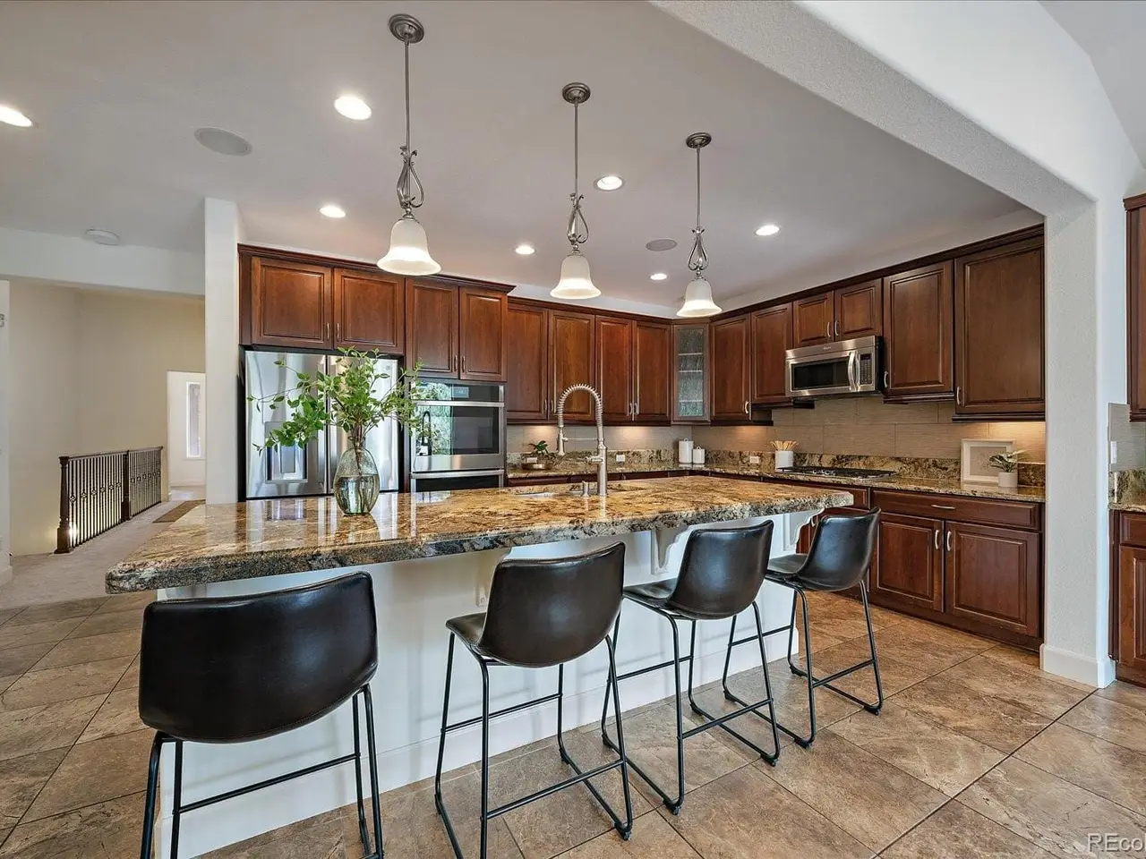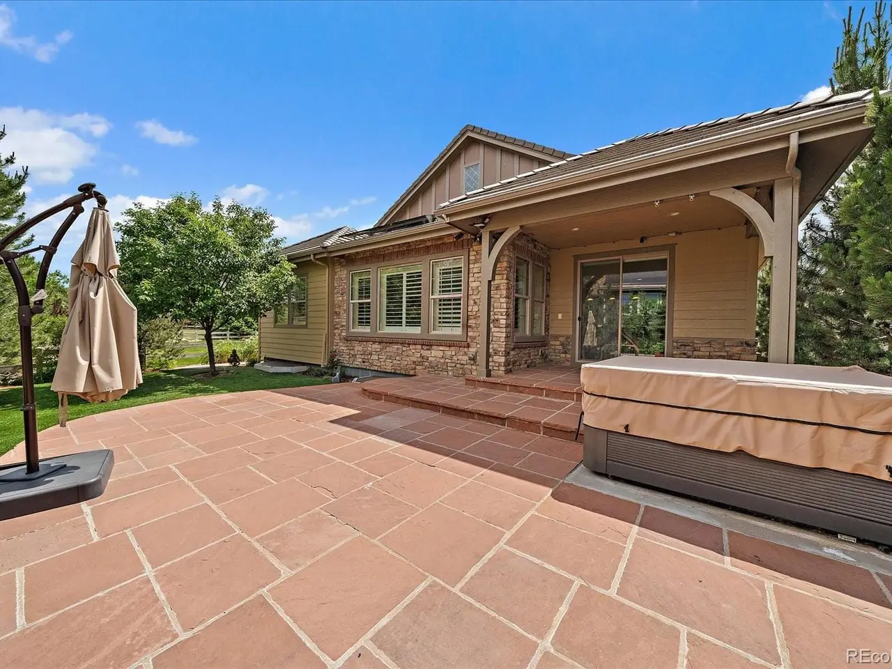 Luxury meets low-maintenance living in this beautiful Shea ranch home in the gated BackCountry community. Thoughtfully designed, this home features 7 bedrooms, 6 bathrooms, and a versatile layout ideal for multigenerational living or hosting guests. The main floor includes a vaulted-ceiling primary suite and living room, a gourmet kitchen with stainless steel appliances, double ovens, Masterpiece cherry cabinetry, soft-close drawers, and a walk-in pantry. Designer touches include Hunter Douglas shutters, high-end granite and marble finishes, ceiling speakers, and premium tile work. The main-floor primary suite offers a spa-like 5-piece bath with an expansive shower and walk-in closet. Two additional bedrooms on the main level provide flexibility for guest rooms or home offices. The finished basement includes four more bedrooms, three bathrooms, and a flex room with built-in storageone room features sound-canceling tiles, ideal for a studio or quiet retreat. Step out to a professionally landscaped backyard with astro turf, evergreens, perennials, a flagstone patio, a hot tub, and a pre-installed gas line for grilling. The west-facing driveway reduces snow buildup and offers convenient guest parking. Additional features: two laundry rooms, paid-off solar panels, a tankless water heater, air purifier, CAT-5 Ethernet, a Tesla charging station, and ample storage. A standout amenity is the fully integrated Control4 smart home system, offering centralized control via two in-wall panels, eight security cameras, automated thermostat, intercom, keyless entry, security system, and smart lightingall accessible remotely. Residents enjoy a private clubhouse with a pool, fitness center, spa rooms, wine bar, and an exclusive on-site coffee shop. With community events, top-rated schools, and nearby shopping and dining, BackCountry offers unmatched Colorado living. Some of the online images are AI-generated and for illustration only. They do not reflect actual appearances.