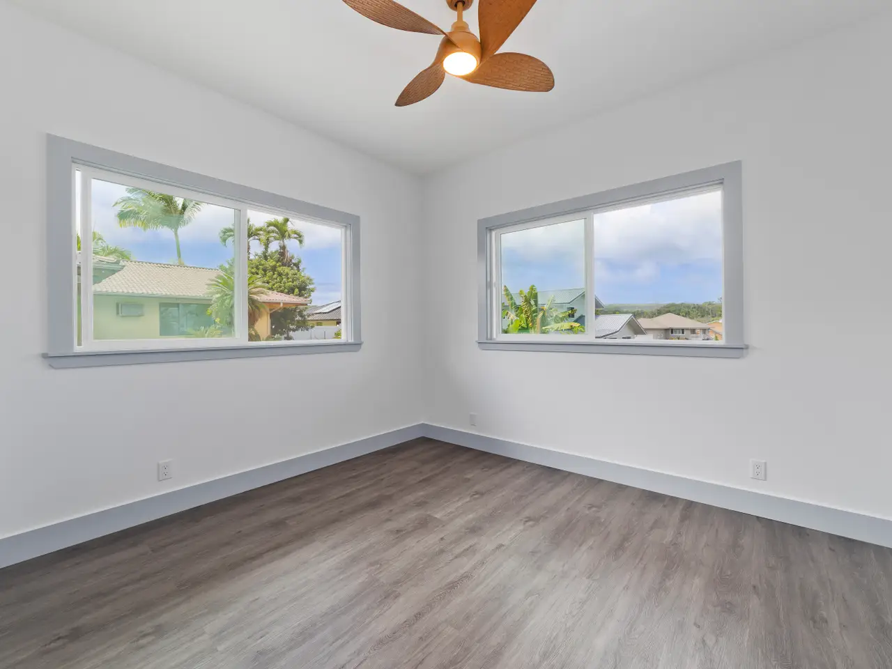This brand-new build was crafted with care and attention to every detail. From the wood-wrapped windows and doors to the generous three-car garage with epoxy coated garage floor, quality shows throughout. The primary suite offers a spacious layout, complete with a walk-in closet and a beautifully finished bathroom. Enjoy views of Mauna Kea from your patio and the gentle breeze flowing through this home.