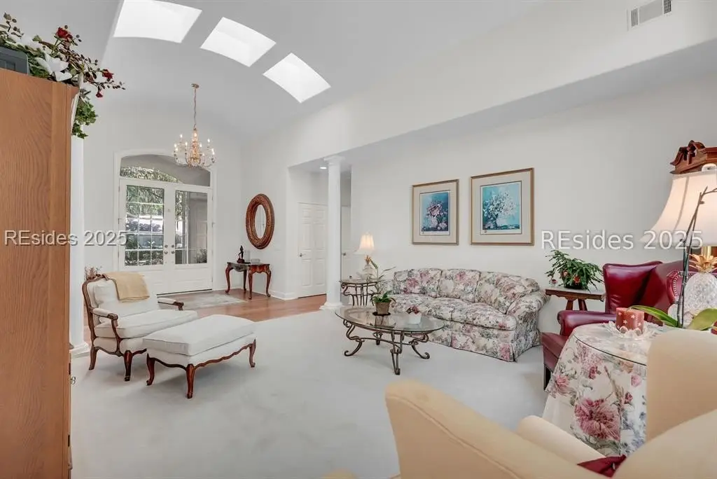 Bright, open, and airy. This beautifully maintained Port Royal Plantation home offers single-level living with no steps and a thoughtful layout designed for comfort and convenience. Built in 1999, the home features 2,922 square feet with three bedrooms and two and a half baths. Hardwood floors, smooth painted ceilings, high ceilings, and abundant natural light create an inviting atmosphere throughout. The living and dining rooms are accented by a gas fireplace and wet bar, making the home ideal for entertaining. The spacious primary suite includes a walk-in closet, double vanities, shower, and a jetted tub, with an office just off the suite. A two-car garage and full-sized lot complete the property, which is ideally located near the beach and all of the outstanding amenities Port Royal Plantation has to offer.