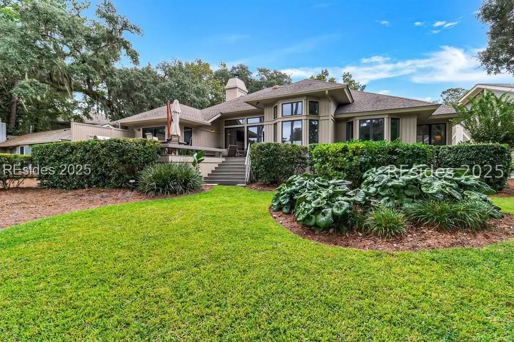 This exceptional 3-bedroom, 3-bath coastal retreat offers panoramic golf views of Harbour Town's famed #6 and #7 fairways and the #2 and #3 greens. Filled with natural light, the open floor plan features soaring ceilings, rich hardwood floors, and a seamless flow between living, dining, and kitchen areas. The newly renovated (2024) kitchen is stunning-complete with quartz countertops, soft-close cabinetry, decorative ceiling beams, and Wolf & Bosch appliances. The inviting great room includes a gas fireplace, while the flexible den can serve as a 4th bedroom or home office, both enjoying incredible golf vistas. The spacious owner's suite offers privacy, beautiful views, and a spa-like bath. Two guest suites provide comfort for family and friends. A new Trex deck overlooks the course, offering the perfect setting for outdoor relaxation and a front-row seat to the RBC Heritage Golf Tournament. Located in the heart of Sea Pines between Harbour Town and the Atlantic Ocean, residents enjoy community amenities including pool, tennis, playground, and basketball-plus easy access to beaches, shopping, and dining. Whether a primary residence, vacation home, or investment property, 13 Fern Court perfectly captures the best of coastal Lowcountry living.