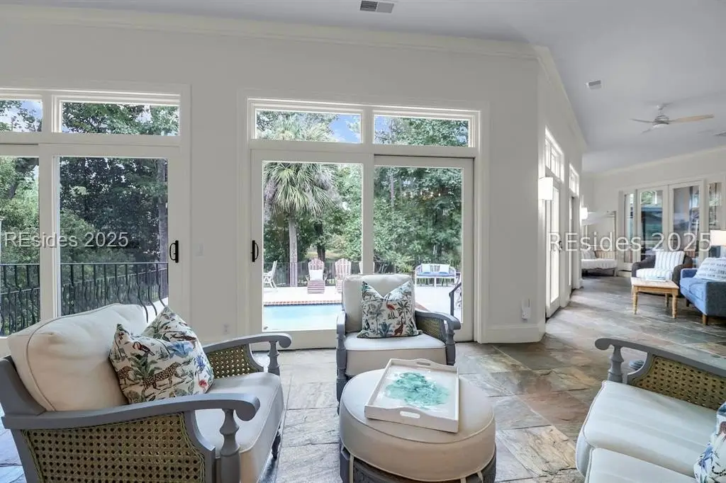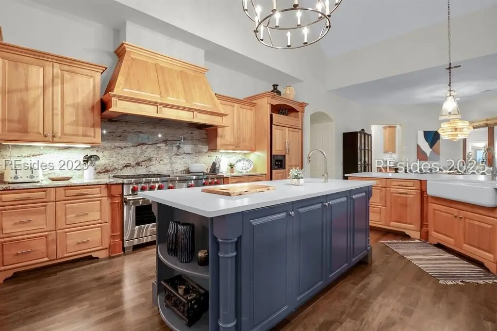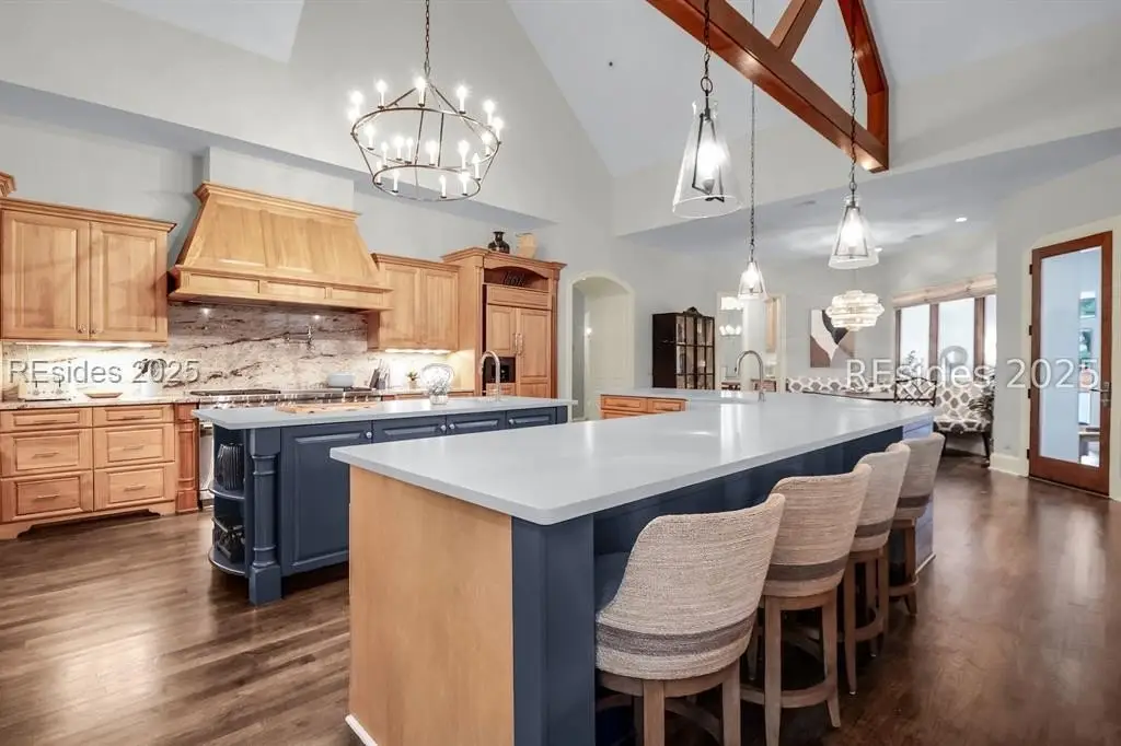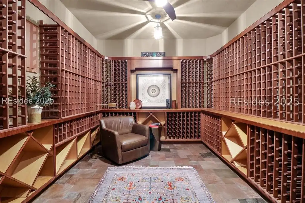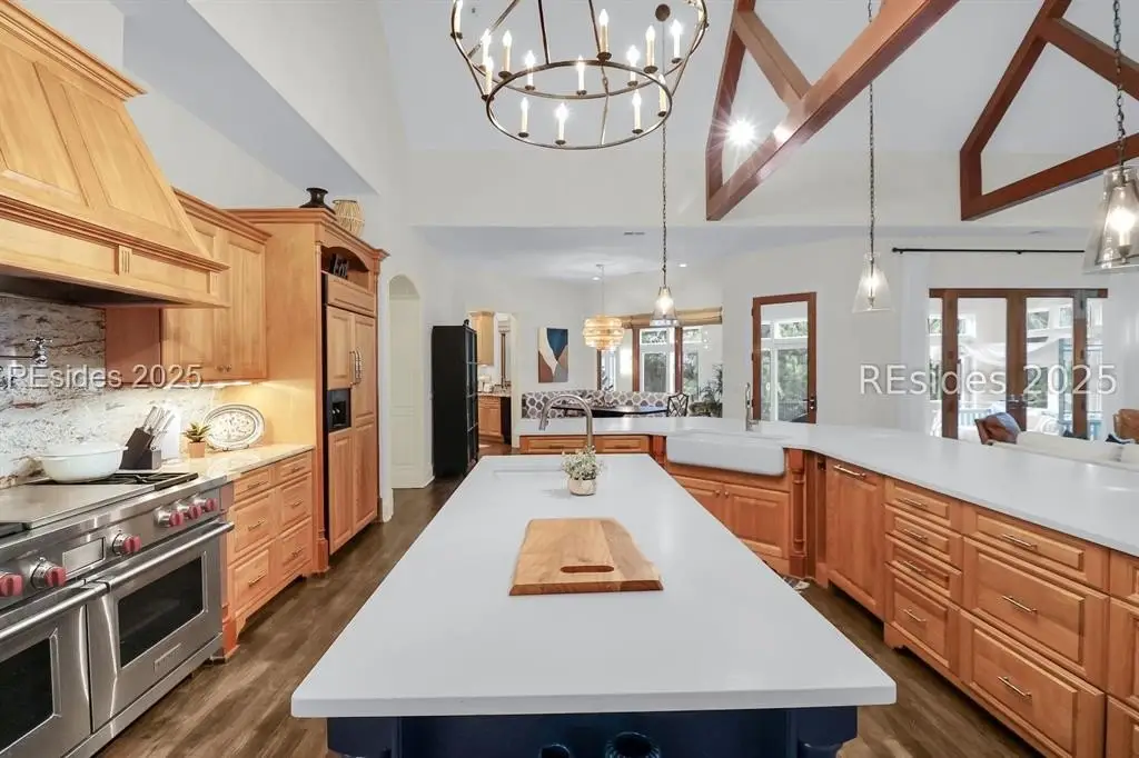 This home truly has it all. Rare opportunity to own this custom-built French Country style home offering 4,732 sqft of exceptional living space, all on one level except for a bonus room above the spacious rear-entry two-car garage. This high-quality home showcases a private saltwater pool with long lagoon views, a Carolina room for added living space, and excellent bedroom separation. The open kitchen flows into the family room, creating the perfect central gathering place for entertaining. Additional highlights include a temperature-controlled wine room with racking for over 2,000 bottles, a wet bar, large cedar closet in the attic, and turn-key condition that makes it an ideal lock-and-leave property. Located in prestigious Long Cove, residents enjoy first-class amenities alongside this beautifully maintained home.