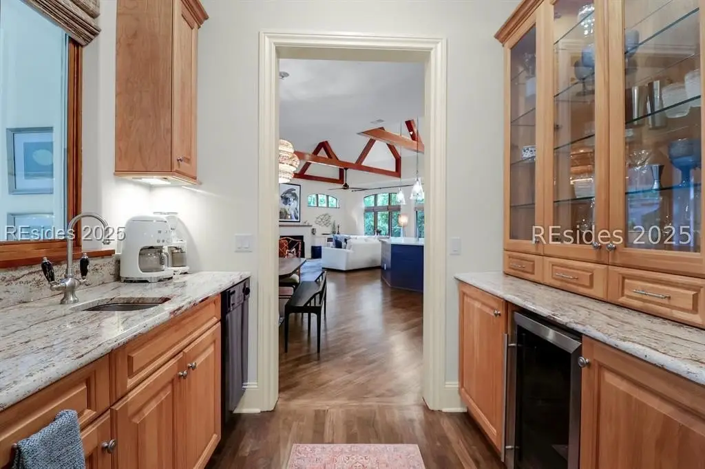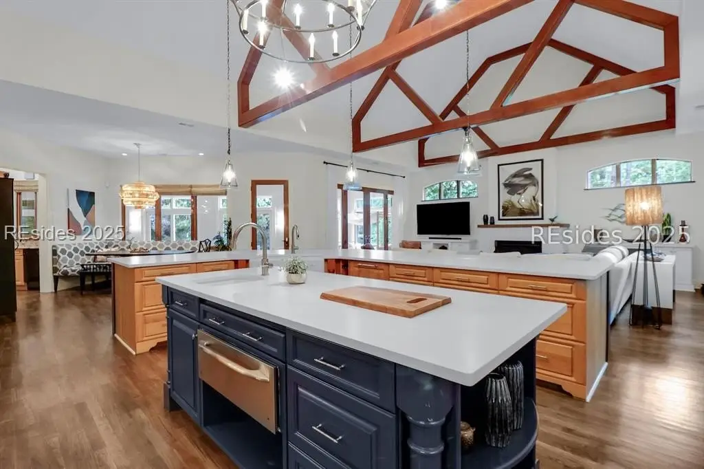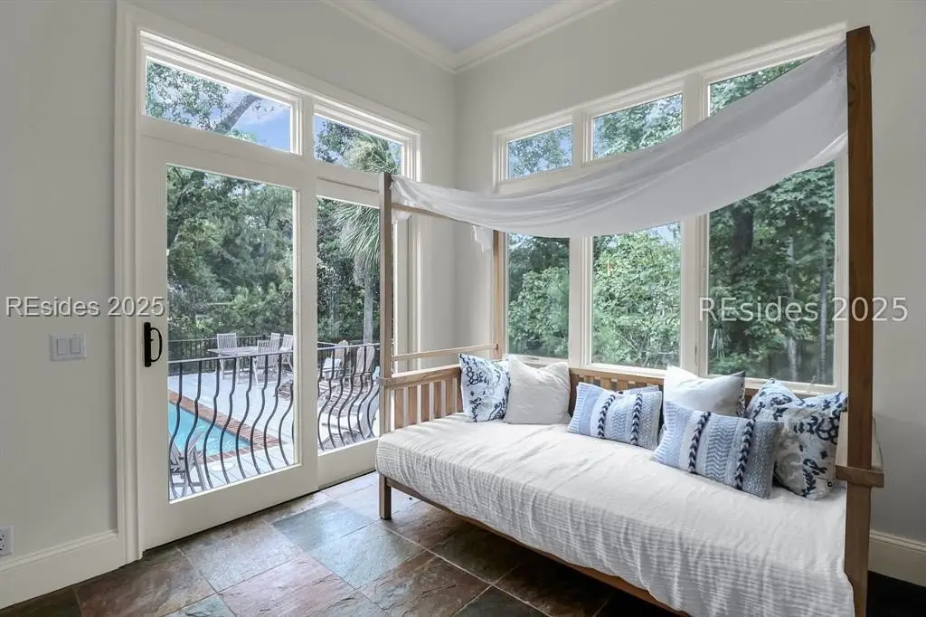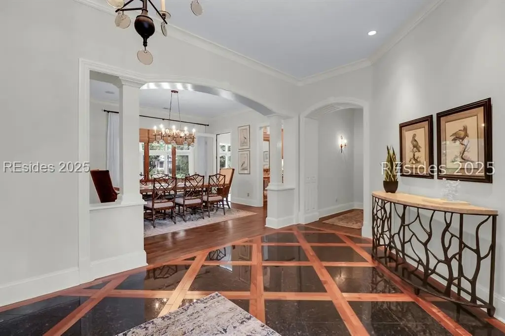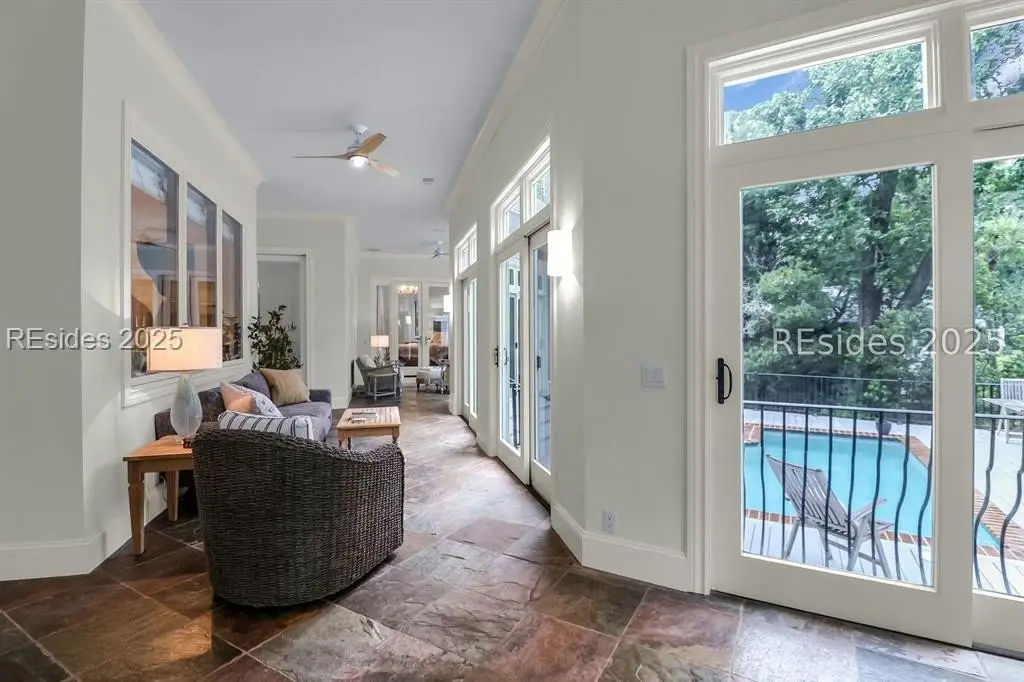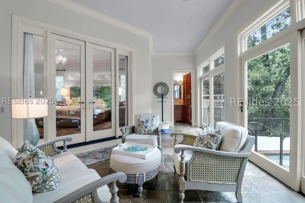 This home truly has it all. Rare opportunity to own this custom-built French Country style home offering 4,732 sqft of exceptional living space, all on one level except for a bonus room above the spacious rear-entry two-car garage. This high-quality home showcases a private saltwater pool with long lagoon views, a Carolina room for added living space, and excellent bedroom separation. The open kitchen flows into the family room, creating the perfect central gathering place for entertaining. Additional highlights include a temperature-controlled wine room with racking for over 2,000 bottles, a wet bar, large cedar closet in the attic, and turn-key condition that makes it an ideal lock-and-leave property. Located in prestigious Long Cove, residents enjoy first-class amenities alongside this beautifully maintained home.