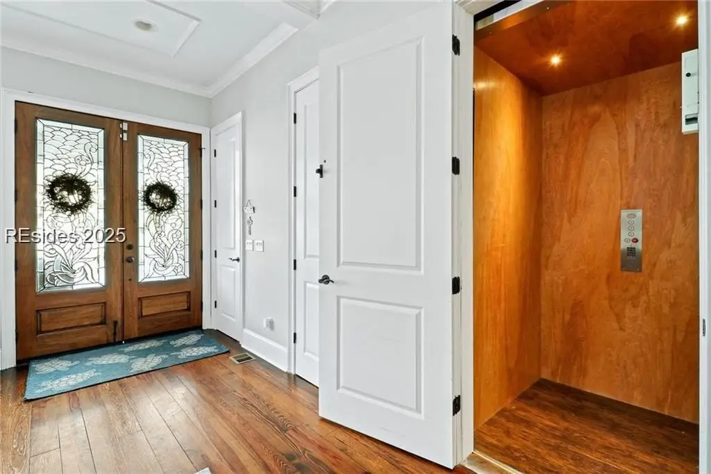Bermuda Pointe is a unique waterfront community with private dock access on the Intracoastal, this custom home captures the essence of upscale island living. Rich craftsmanship is on full display with coffered ceilings, custom millwork, wood floors and designer bathrooms. The open layout features a chef’s kitchen, modern coastal tones and a fireplace. An expansive porch invites year-round entertaining, sunset views, elevator and rare 6-car parking. Steps from the pool and your boat, moments from waterfront dining. With its Bermuda pink exterior, signature shutters and swaying palm trees, this home truly captures the spirit of upscale coastal living.