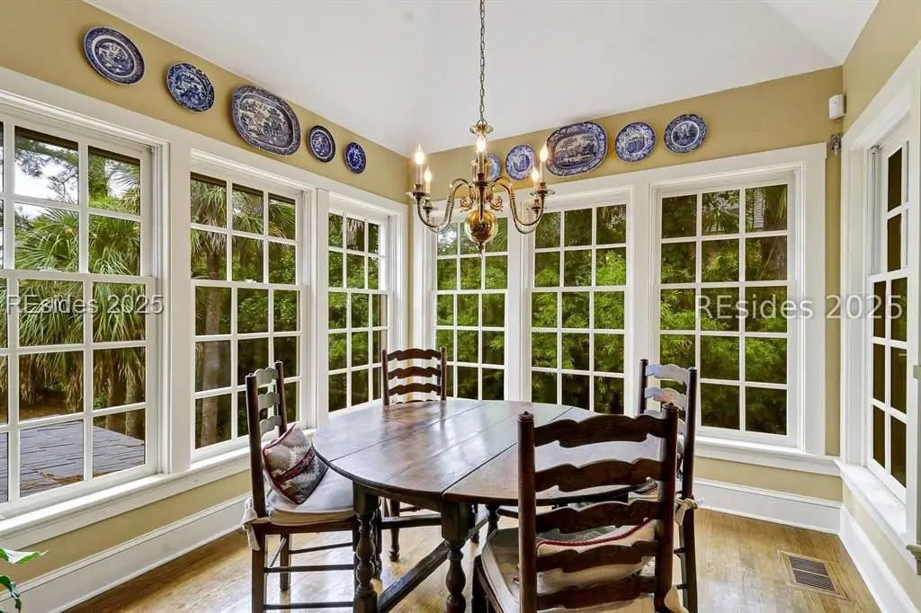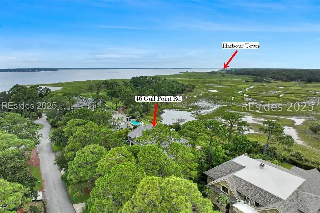 Located on one of the few true neighborhood premier streets in Sea Pines, this custom-designed four bedroom, 3.5 bath home designed by acclaimed designer, Joe Hall, spans nearly 4,700 square feet and offers stunning marsh views all the way to the iconic Harbour Town lighthouse and a short distance to the Atlantic Ocean. This residence blends timeless craftsmanship and features a 2017 metal roof, hardwood flooring, crown molding, elevator to all levels, and plantation shutters throughout. This property offers a first level owner suite, multiple living/dining areas, two fireplaces, screened porch, and true indoor-outdoor living that brings the beauty of the Lowcountry indoors. The outdoors is spectacular with a covered porch, impressive swimming pool, and breathtaking water views. Residents of Gull Point enjoy unparalleled amenities, including a private slip at the community marina if desired, tennis courts, a playground, kayak/paddleboard storage, and neighborhood events. This is the Low Country lifestyle you have been waiting for where fishing, boating, walks on the beach, and forever marsh views are everyday occurrences!