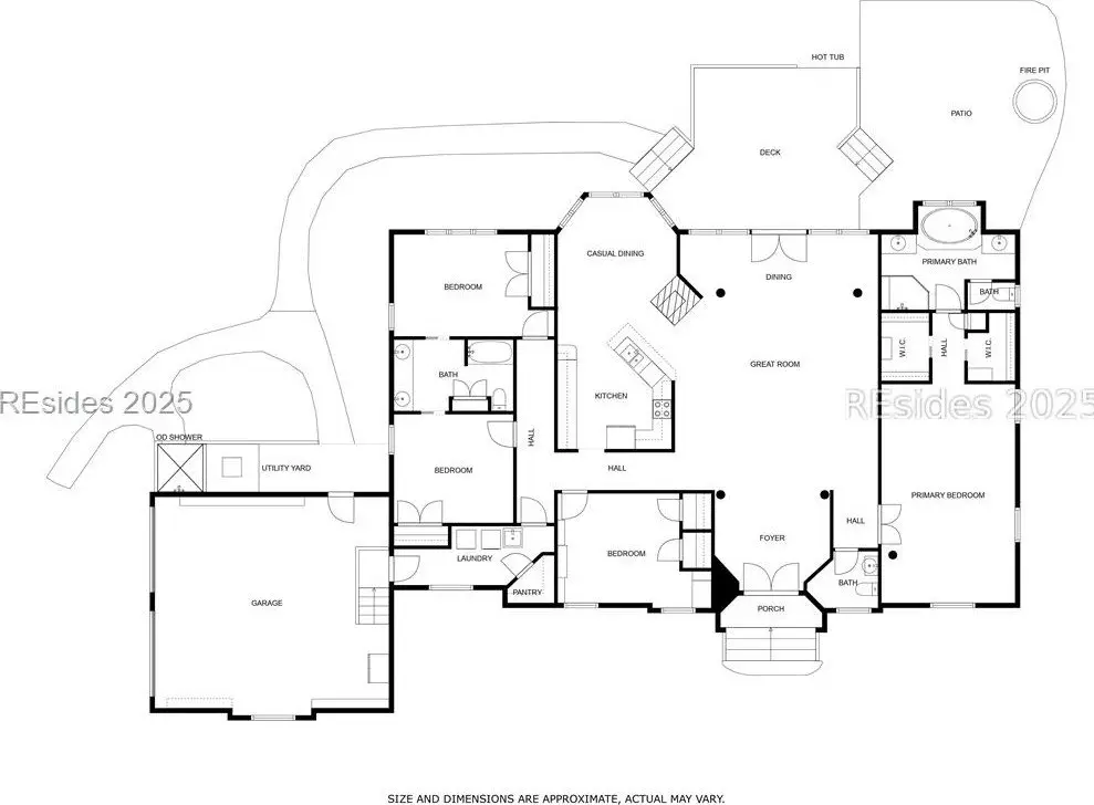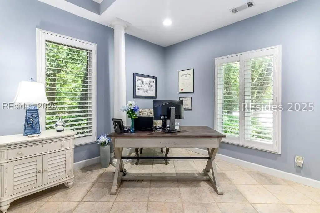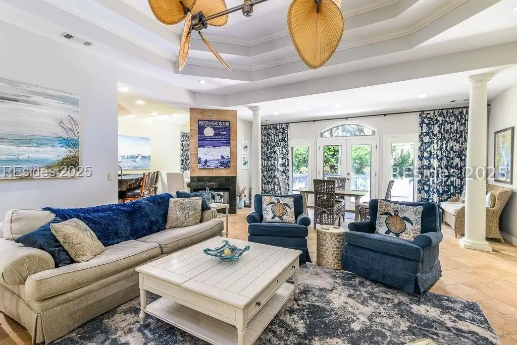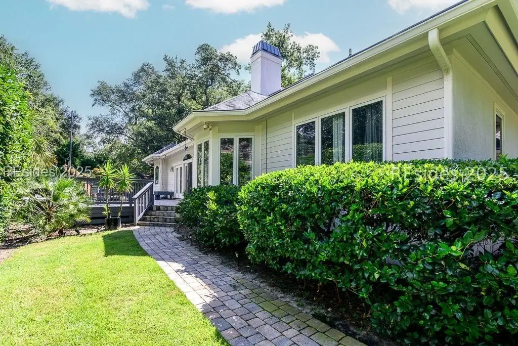 Experience Seaside Living in Port Royal Plantation! Welcome to 2 Resolute Place, perfectly positioned just across the street from a beach path leading to the Atlantic Ocean in the coveted Port Royal Plantation. This stately single-story home features a freshly painted exterior, a circular front drive for guests, and a private owners side-entry two-car garage. Inside, the open floor plan centers around spacious gathering areas, with the primary ensuite tucked privately on one side of the home and guest suites/flex room on the other ideal for hosting family and friends. High ceilings, 8' doors, stone counters, and expansive windows bring in natural light and frame views of the deck, hot tub, and outdoor firepit. A lush living wall of greenery ensures seclusion perfect for peaceful relaxation or lively lawn games. Residents of Port Royal enjoy an enriched coastal lifestyle with a private Beach House, community pool, pickleball, tennis, gardening areas, and leisure trails. Membership at the Port Royal Golf Club is available à la carte, offering championship golf, clubhouse dining, a full-service pro shop, and more. Your seaside retreat awaits.