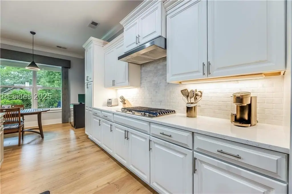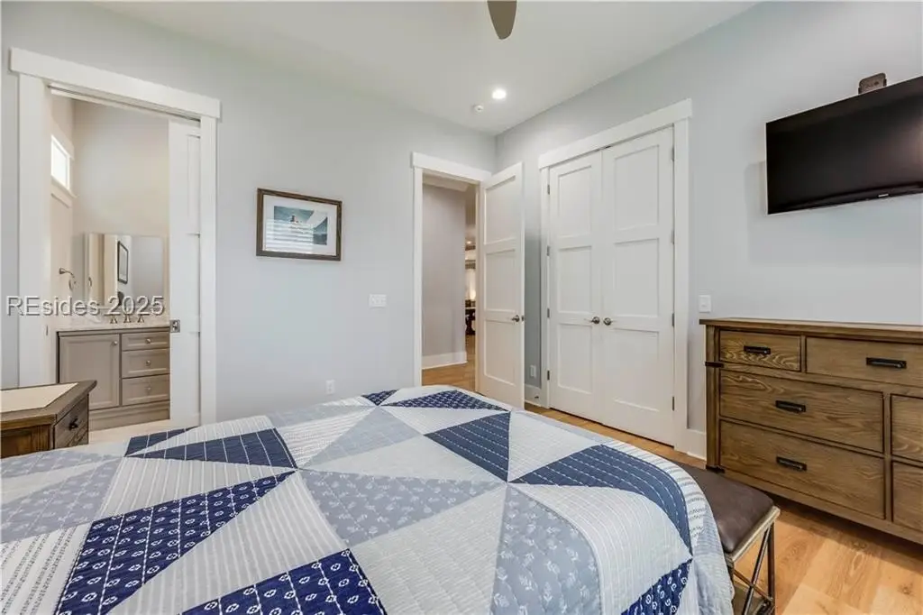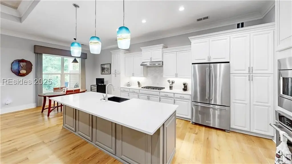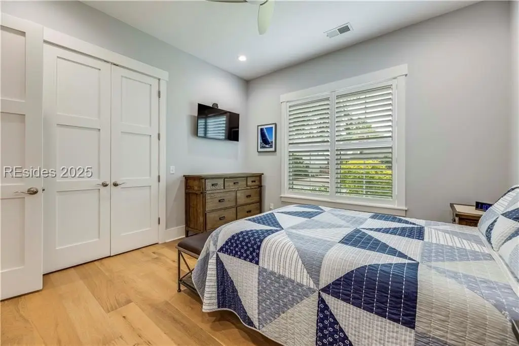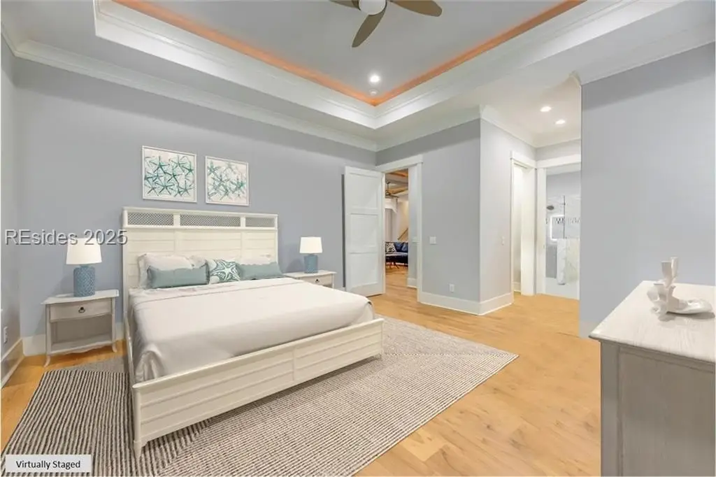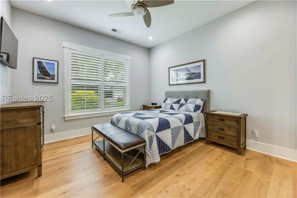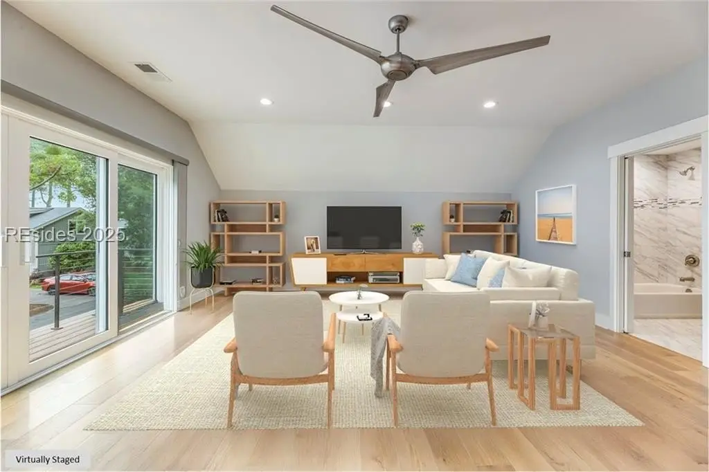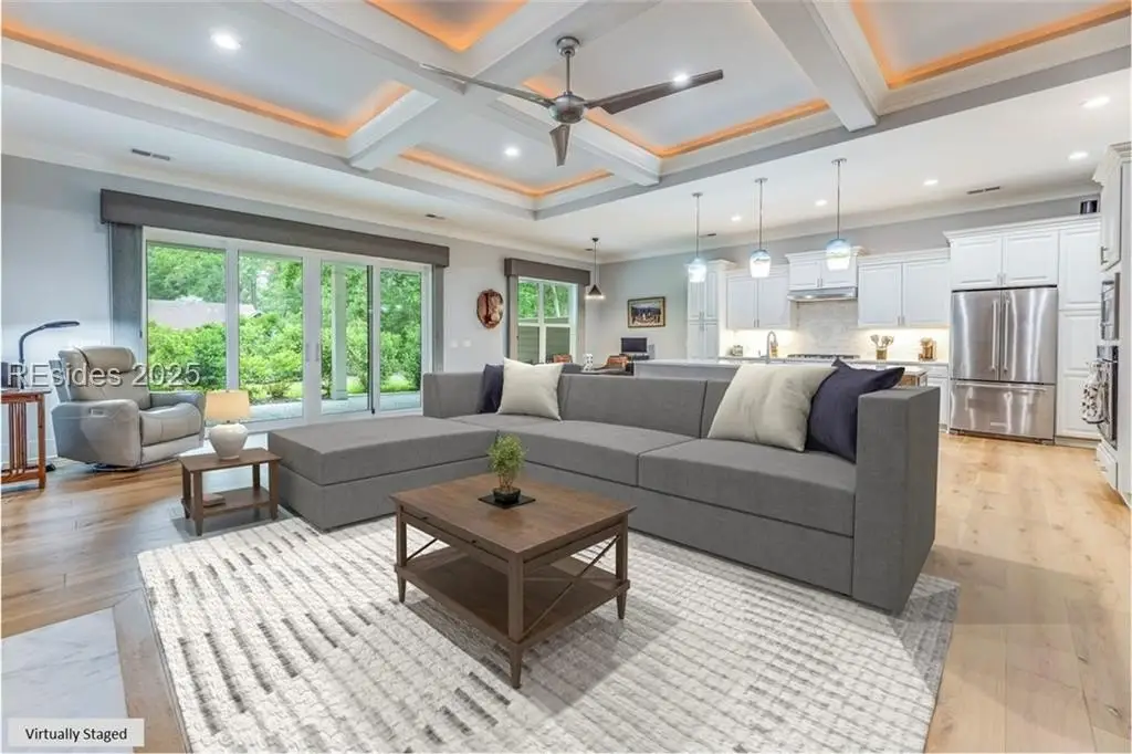 Sound Views | Immaculate Modern Design | Garage Upgrades. Stunning 2022 coastal home near Dolphin Head with Sound views from your private balcony! This 3-bed, 3.5-bath beauty features White Oak floors, custom built-ins, gas fireplace, shiplap wall, and coffered ceilings with backlighting. Upstairs offers a 4th bedroom/bonus suite with bath, balcony, and walk-in attic. Enjoy a chef’s kitchen with KitchenAid appliances, 5-burner gas cooktop, and elegant finishes. Custom trim, stylish built-ins, and upgraded closets throughout. The garage impresses with RaceDeck flooring and EV charging.