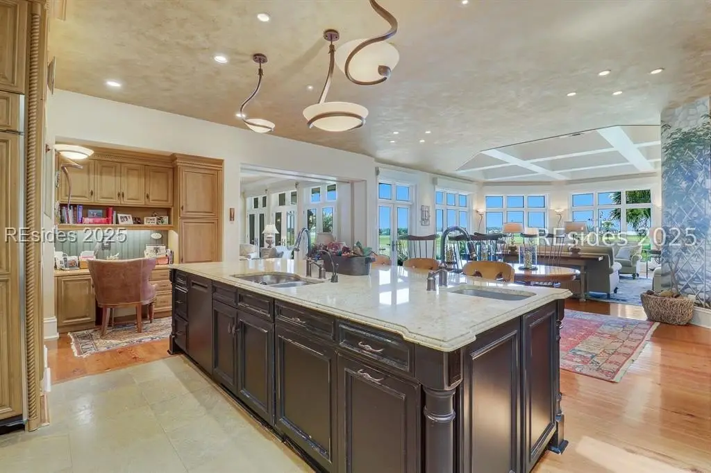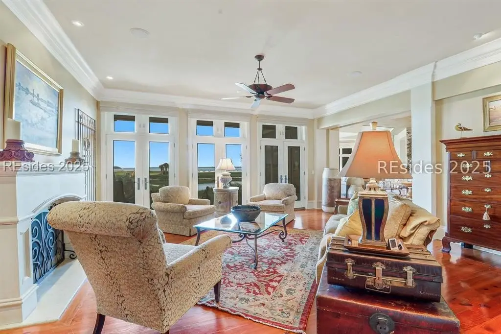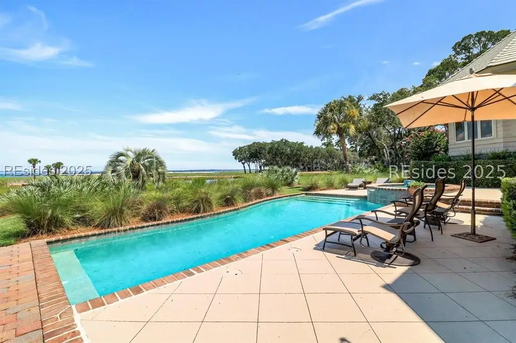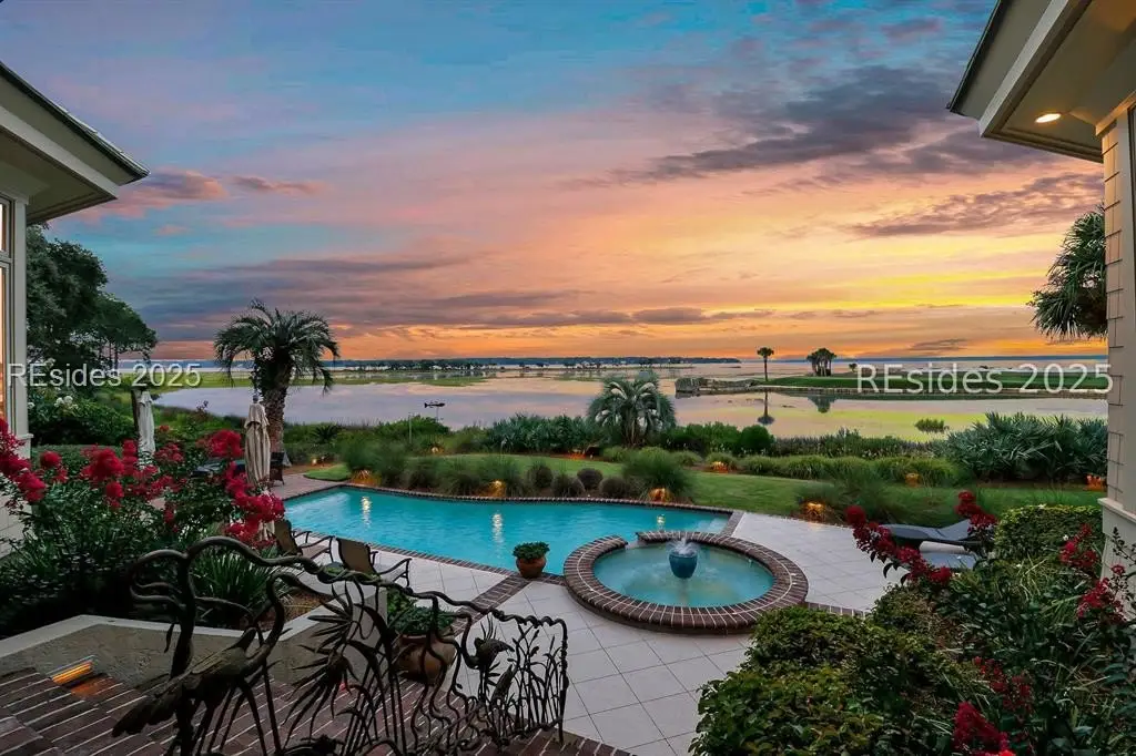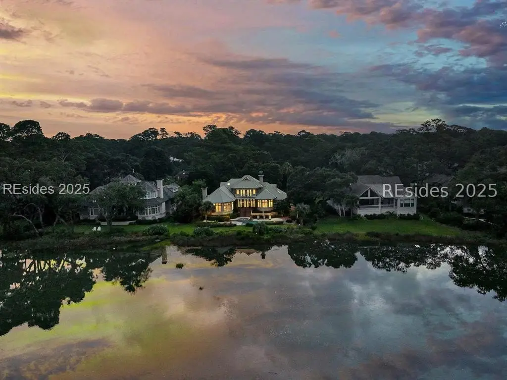 Discover luxury, views, and timeless Sea Pines living in this one of a kind residence built by award winning builder, Dan Lawrence and designed by well-known local architect Jakie Lee. This property offers a rare combination of Lowcountry charm, impeccable quality, and panoramic marsh-to-golf to sound views overlooking the iconic 17th hole of Harbour Town Golf Links home of the elevated PGA RBC Heritage. The interior features of this home are captivating with the extensive trim work, antique heart of pine flooring, custom iron work, and faux finishes by local artisans. Enjoy elegant living and dining spaces. Other features include designer lighting, dream kitchen/family room, impressive first floor owner suite, and spacious guest suites. Outdoor living is unmatched with a heated/chilled pool and spa, covered patio, and lush landscaping-perfect for enjoying the everchanging sunsets while watching golfers, nature, and boating right out your back door. A truly unforgettable Low Country property!