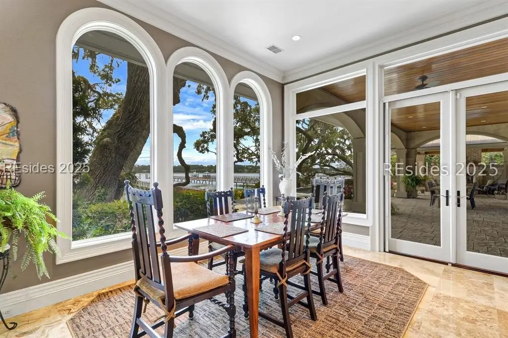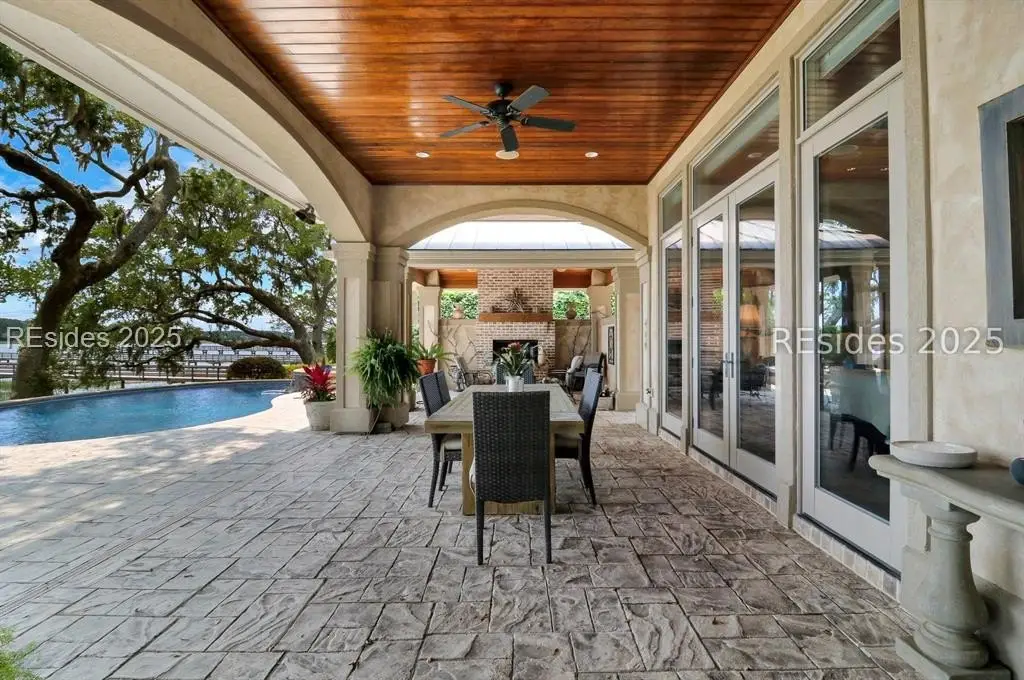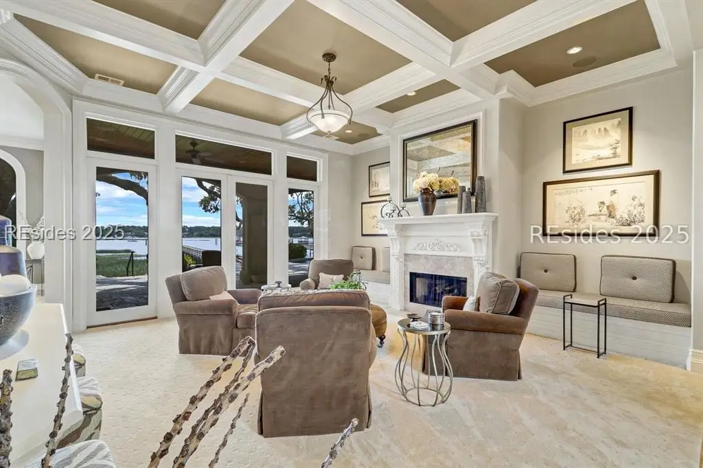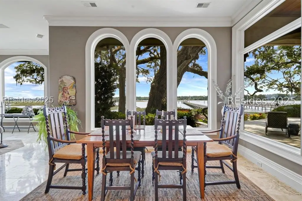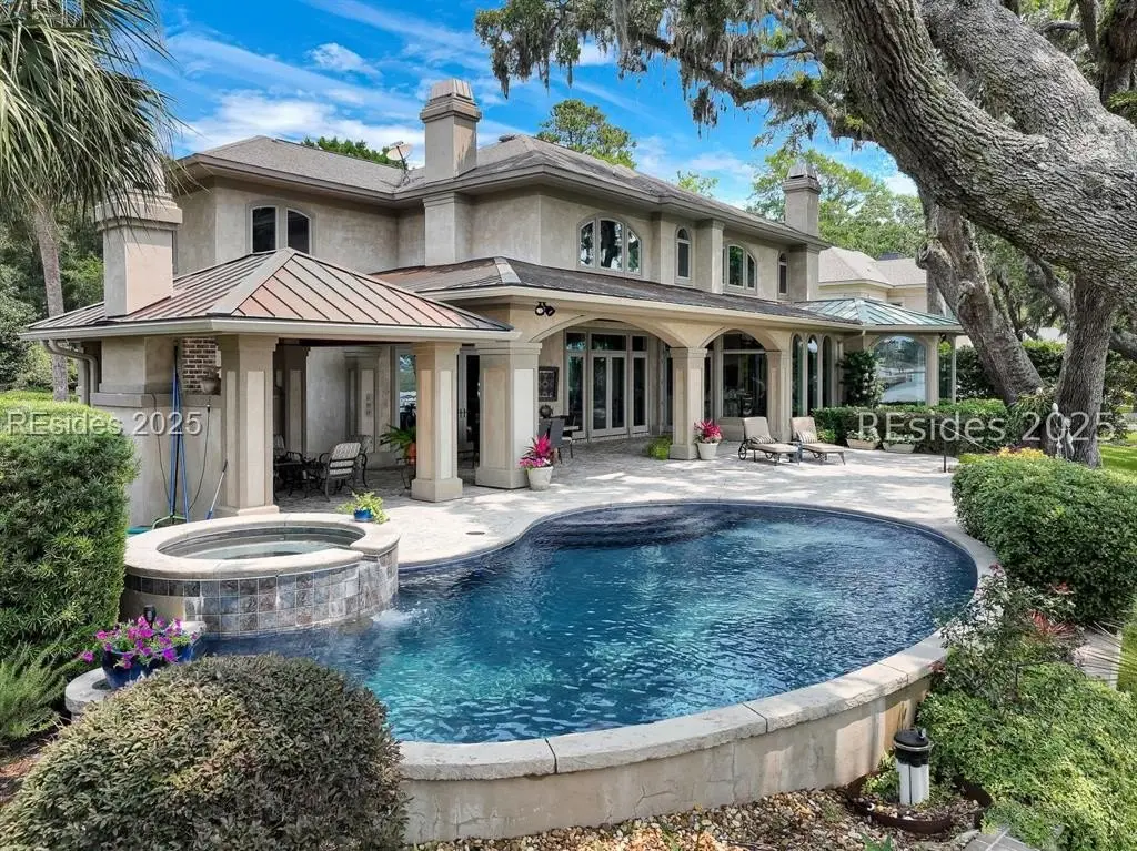 Enjoy classic elegance, 24/7 deep water private dock and pure waterfront luxury at 47 River Club Drive located in the private enclave of The River Club one of Hilton Head Islands most exclusive deep-water communities. This spectacular home is truly a rare find, offering a blend of sophisticated design, privacy, and unparalleled natural beauty. Inside are four spacious bedrooms with private baths, including a first-floor primary suite complete with an exercise area and large walk-in closets. Two half baths, one off the formal rooms and another that conveniently accesses the outdoor shower from the pool area. The gourmet kitchen, dual offices, a bonus room, and a dedicated media room offer versatile spaces to work and entertain. The oversized 3-car garage provides generous storage. Outside, a covered lanai with light breezes could be considered one of the most favorite rooms in this home. A cozy stone fireplace overlooks a stunning saltwater pool and spa, perfect for year-round enjoyment. Nearly every room boasts panoramic views of Broad Creek and the Lowcountry beyond. The grounds are adorned with majestic specimen oak trees, a new 150-foot seawall, and a deep-water dock, inviting endless opportunities for boating and other water activities. This location even offers perfect viewing of the weekly summer Shelter Cove fireworks from the comfort of home. Located within Indigo Run, The River Club is a fully built-out, gated community known for its low density with only 11 deep-water homes. Optional membership to the exclusive Jack and Jackie Nicklaus Golf Club adds a prestigious recreational element for residents. The River Club stands out as one of Hilton Heads most sought-after locations, offering privacy, security, and a connection to nature. In todays world, knowing your neighbors, security and privacy are what discerning purchasers value. Considering these tangible and intangible benefits and comparing the Hilton Head deep-water options, the River Club is a quiet gem that outshines the competition.