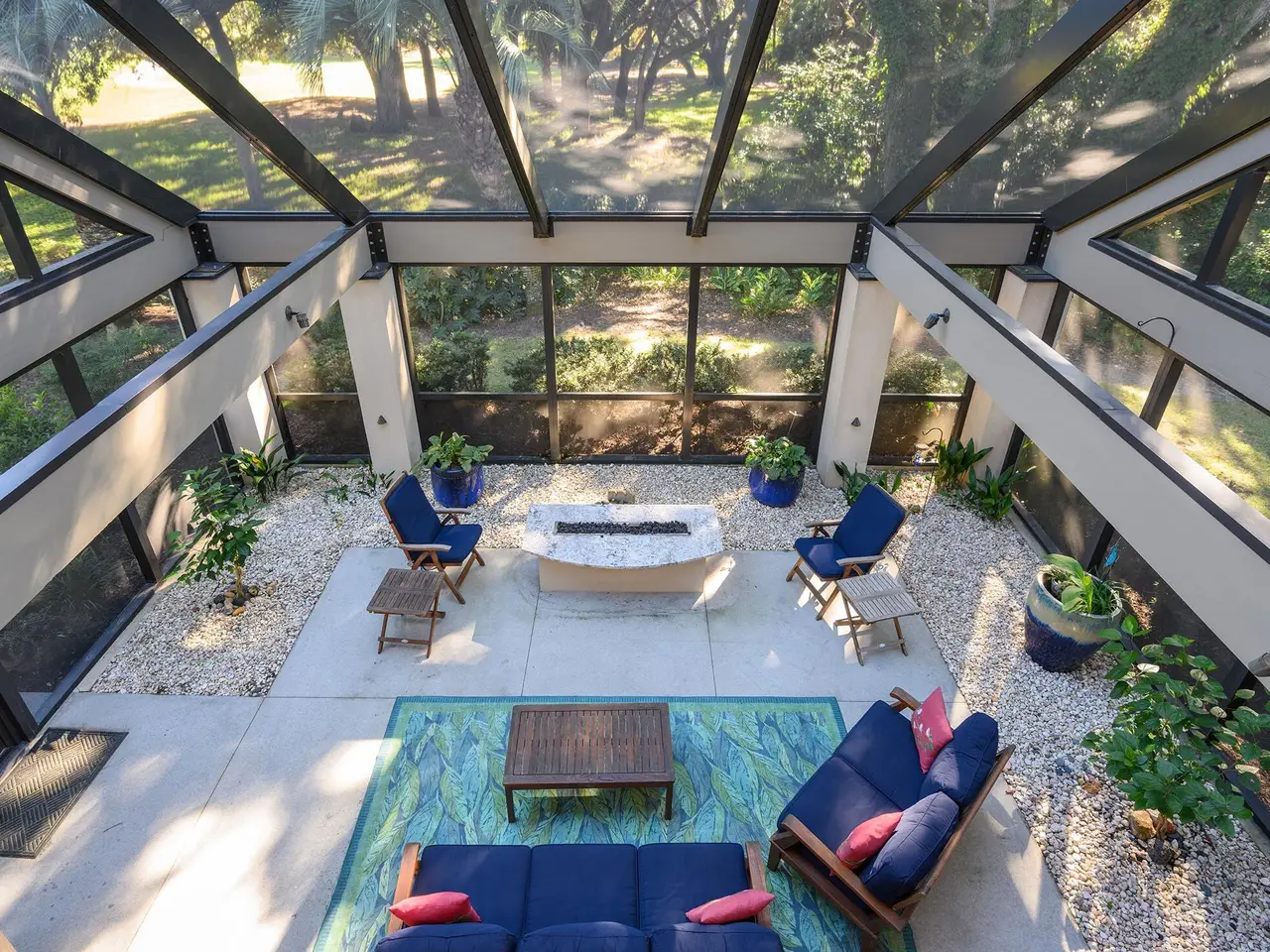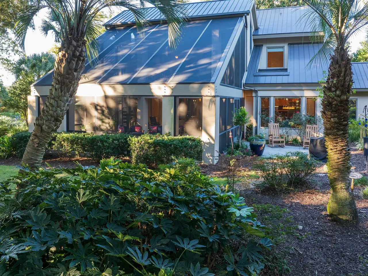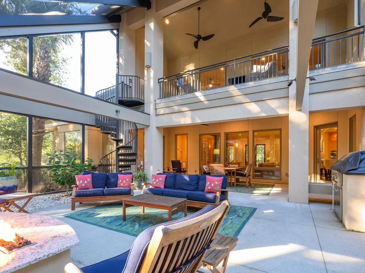 Spectacular Port Royal Plantation Kermit Huggins custom home, expansive floor plan, 5 bedrooms, 4 baths/2 half baths, across the street from the beach & on a private golf course setting! Magnificent lanai with balcony, spiral staircase, fireplace, built in Lynx grill.Grand live oaks & magnolias welcome you into the gated courtyard of this meticulously maintained home.Features include 3 car garage with epoxy finished floors&electric vehicle H/U Level, 2023 & 2024 HVAC systems, new Subzero refrigerator, custom closets, whole house Aquasana water filtration system, newer metal roof. Resort style amenities include beach house with private beach access, pool, fire pits, tennis&pickle ball courts, leisure trails, community gardens, farm plots & gated 24 hour security;no STR/commercial activity