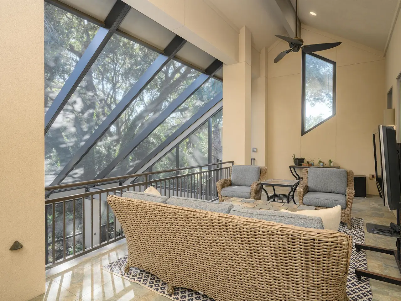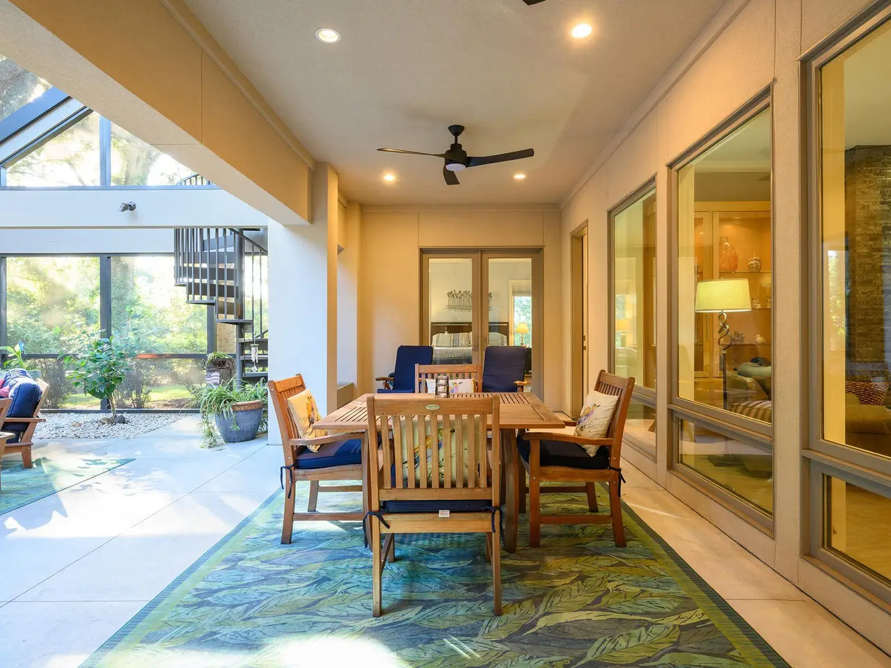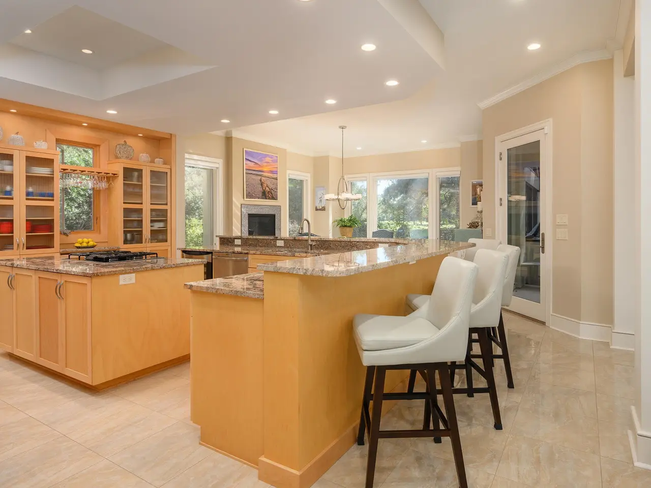 Spectacular Port Royal Plantation Kermit Huggins custom home, expansive floor plan, 5 bedrooms, 4 baths/2 half baths, across the street from the beach & on a private golf course setting! Magnificent lanai with balcony, spiral staircase, fireplace, built in Lynx grill.Grand live oaks & magnolias welcome you into the gated courtyard of this meticulously maintained home.Features include 3 car garage with epoxy finished floors&electric vehicle H/U Level, 2023 & 2024 HVAC systems, new Subzero refrigerator, custom closets, whole house Aquasana water filtration system, newer metal roof. Resort style amenities include beach house with private beach access, pool, fire pits, tennis&pickle ball courts, leisure trails, community gardens, farm plots & gated 24 hour security;no STR/commercial activity