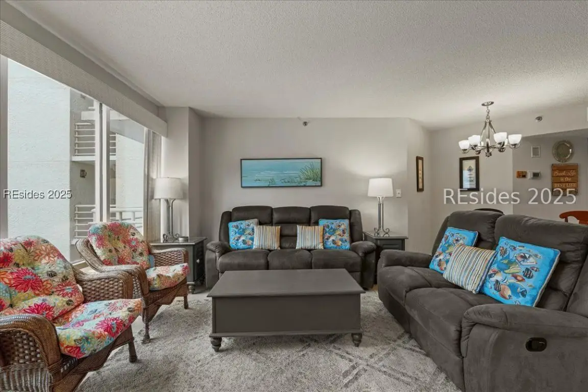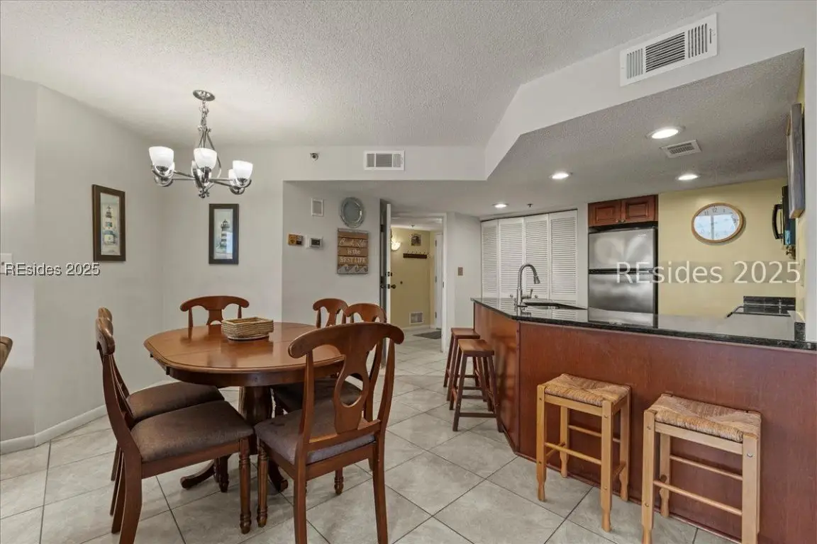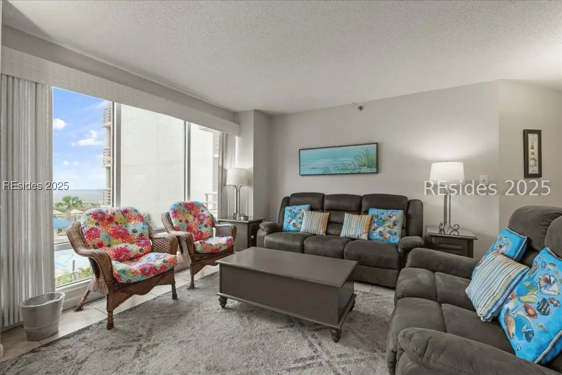 One of the best views in all of Villamare. Look across the main pool to huge views of the Atlantic and the beautiful dunes. Upgraded unit with granite kitchen and baths. New separate tile shower in the primary bath. Tile floors throughout. 2 Balconies to enjoy the view of the ocean and listen to the waves. Tons of natural light. Newer HVAC and hot water heater. Villamare has two new outdoor pools (one adults only) plus an indoor pool which is part of the fitness center. Patio area with grills and a firepit. Villamare has everything you want in a resort complex plus all that Palmetto Dunes has to offer golf, tennis, pickleball, restaurants, bike and kayak rental and the General Store. Do not miss this once in a lifetime view unit.
