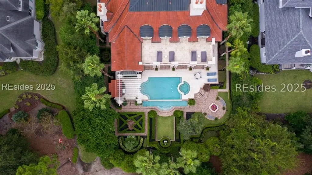 15 Harrogate Drive presents a rare opportunity to own a 6,828-square-foot masterpiece in the heart of Wexford. Built with concrete and steel framing, finished in stucco and stone with a terracotta tile roof, this residence showcases extraordinary construction quality and timeless design. Inside, the open living space, complete with a grand fireplace, flows seamlessly into the chefs kitchen with a butlers pantry, a well-equipped granite-topped bar, and dedicated wine closet. Elegant travertine and hardwood floors, exquisite millwork, designer lighting, and refined details elevate every corner. The main-level primary suite is a true sanctuary, featuring stunning suede wallpaper, a striking gas fireplace, lanai access, a sitting area, dual baths with multiple showers and water closets, a soaking tub, a private laundry, and separate walk-in closets. Upstairs, three generously sized en-suite bedrooms offer space and privacy. One includes a sitting area, oversized bath, and an extra-large seasonal closet, and two enjoy direct access to the upper deck. A morning kitchen, full second-floor laundry room, and a 4-stop elevator add everyday convenience. The three-car garage, with direct elevator access, ensures effortless movement across all levels. Outdoor living is equally remarkable, with a picturesque English garden and a private pool setting the stage for refined Lowcountry living. A covered lanai, pool bath, and grilling station complete this unmatched entertaining space.Custom, high-end furniture by Seasons Interior Designs is also available for purchase outside the sale, offering a turnkey opportunity to enjoy this homes beauty immediately.As a Wexford resident, youll enjoy premier amenities including a private marina, championship golf, tennis, pickleball, croquet, clubhouse dining, community firepit, and a resort-style pool complex. Even more exciting, a newly expanded Clubhouse and brand-new Harbour Center are under construction, with completion expected in April 2026 - further elevating Wexfords reputation as Hilton Heads most distinguished private community.15 Harrogate Drive is stunning inside and out - an exceptional Wexford residence where extraordinary design meets world-class amenities.