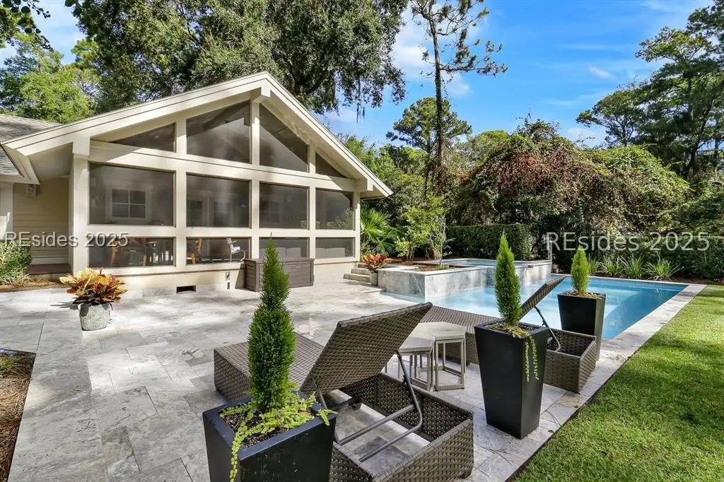 Discover coastal charm and refined craftsmanship in this beautifully reimagined 4BR/3BA home in the sought-after Club Course neighborhood of Sea Pines. Rebuilt and expanded in 2012 by Twelve Oaks Construction, this home combines Lowcountry architecture with modern luxury and the ease of all one level living.The open-concept kitchen, completely redesigned by the current owner, is a showstopper featuring all new touchstone soft-close cabinetry, quartzite countertops, and the crème de la crème appliances to include a Wolf 6-burner gas range with oven, Sub-Zero refrigerator with freezer drawers Sub-Zero wine column, and back kitchen offers additional quartzite counters, Wolf steam oven, Wolf microwave drawer, and Sub-Zero beverage center. The kitchen opens to the beautiful Great Room with tabby fireplace.The owners suite features hardwood flooring, crown molding, his/her walk-in closets, and a bath with dual marble vanities and a walk-in tiled shower. Three guest bedrooms include one ensuite with sitting area and private bath and two bedrooms sharing a stylishly updated bath. Additional features include hardie plank siding, spray foam insulation, 2017 roof, 2023 tankless water heaters, 2023 Trane 4-ton HVAC.Step outside to your private oasis where the current owner added a stunning swimming pool/spa surrounded by all new lush landscaping, outdoor lighting, screened porch, and outdoor kitchen.This meticulously updated home embodies the relaxed yet sophisticated Sea Pines lifestyle where coastal living meets timeless design.