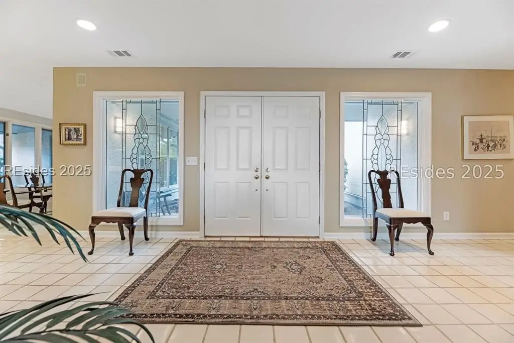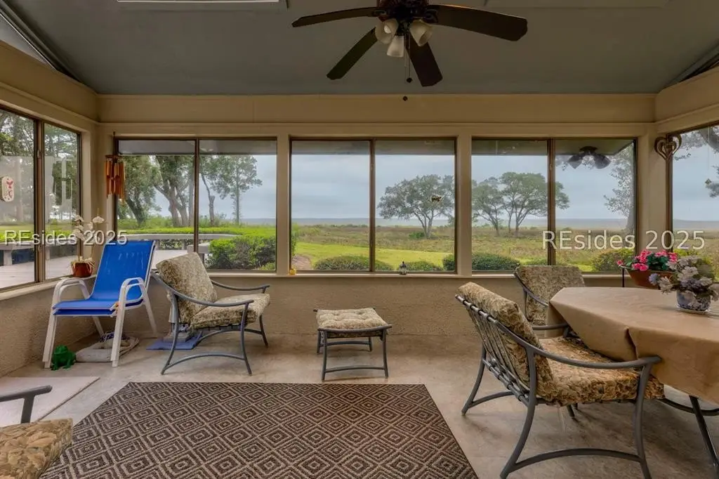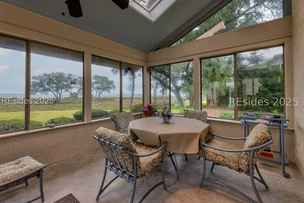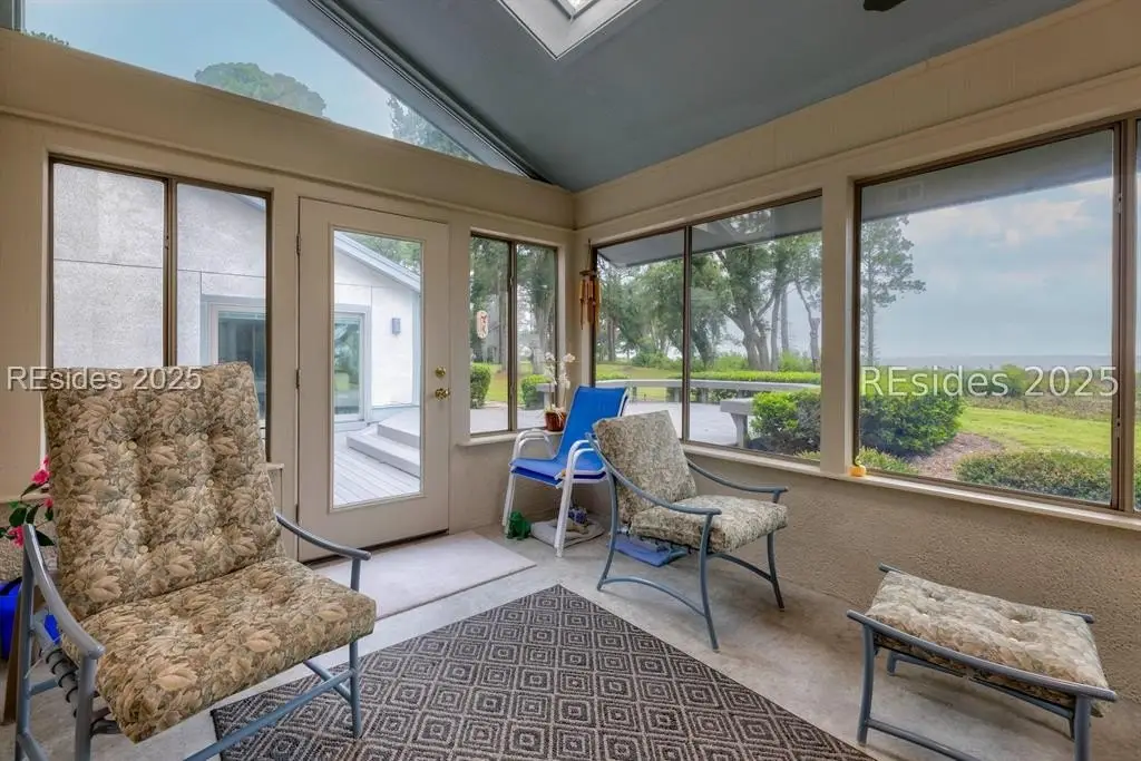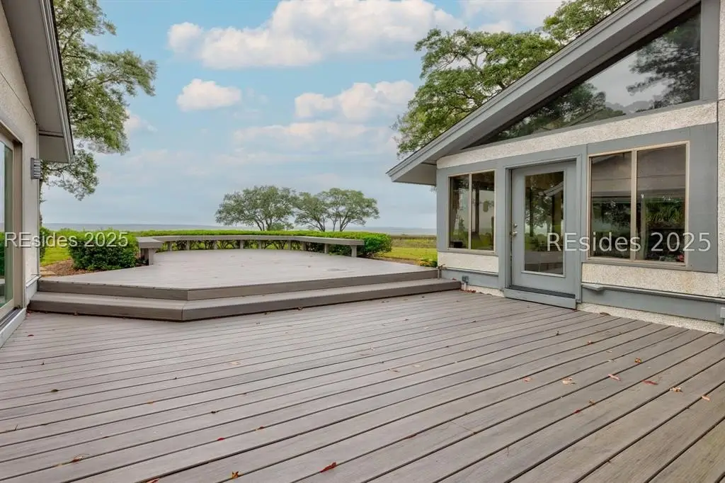 THE VIEW! Unobstructed sound views with direct beach access and 122 feet of footage! This 3 BR, 2.5 BA Hilton Head home offers breathtaking deepwater views of Port Royal Sound. Situated on over half an acre, this single-story home features a separate dining room, living room, and a spacious Carolina room. the living area boasts a cathedral ceiling and a cozy fireplace, while the side-entry garage adds convenience. Step outside to the back patio, where you can relax and soak in the unobstructed views - a rare find in Hilton Head Plantation.
