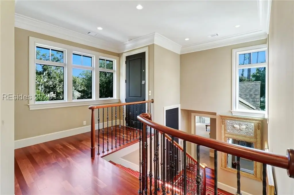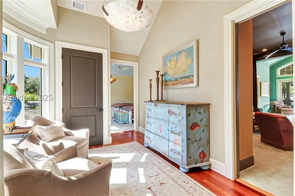 This spectacular five-bedroom, five-and-a-half-bathroom waterfront home offers unparalleled, deep water views of Calibogue Sound, situated in the highly coveted location of Calibogue Cay within Sea Pines. Boasting 100 feet of private waterfront and built by Cambridge Builders in 2010, the home showcases exquisite craftsmanship and attention to detail, making it a premier choice for those seeking the epitome of luxury living.