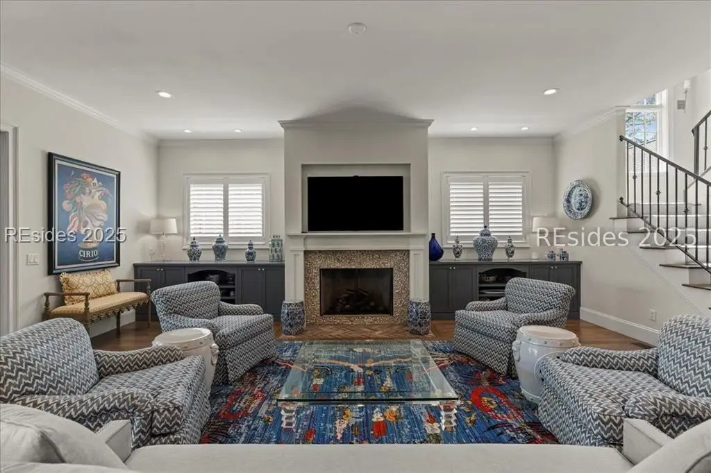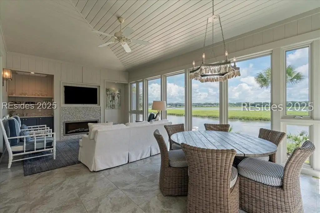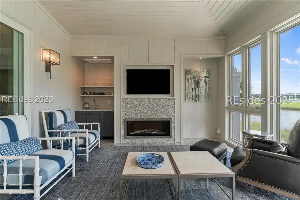 Stunning Lowcountry-style home showcasing rarely available & expansive, unobstructed Broad Creek views. Thoughtfully designed & exquisitely finished, this 4BD + den, 4.5BA residence blends timeless architecture with upscale comfort, just a short stroll to the world-class clubhouse, marina, tennis courts, golf & pool. Light & bright interior featuring hardwood & brick flooring, multiple fireplaces, & custom millwork throughout. Chefs kitchen impresses with marble countertops, high-end appliances, and generous prep space. Multiple charming porches, built-in outdoor grill, & fire pit, all set against the backdrop of serene waterfront views where sunsets are a spectacular show every night. Additional highlights: wine cellar, elevator, newer HVAC systems, every bedroom with ensuite, & expansive first-floor storage. Sold fully furnished, making it the perfect turnkey escape in one of Hilton Heads most desirable communities.