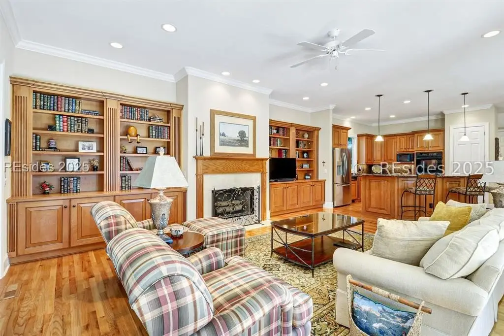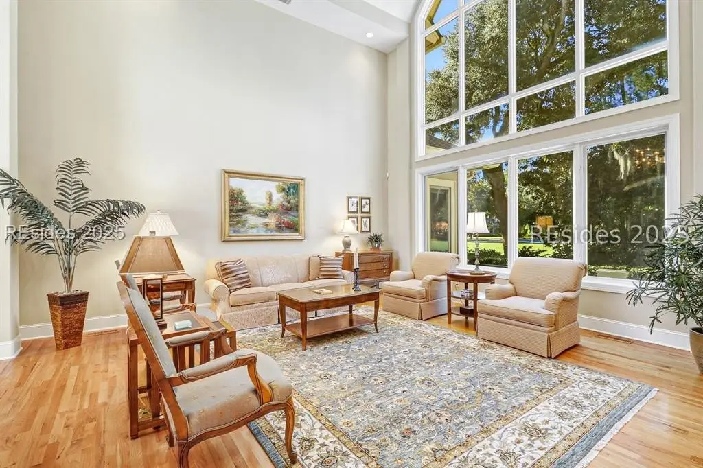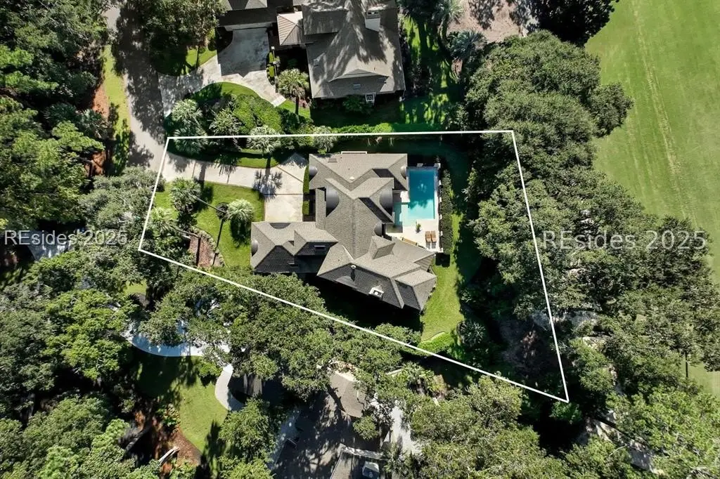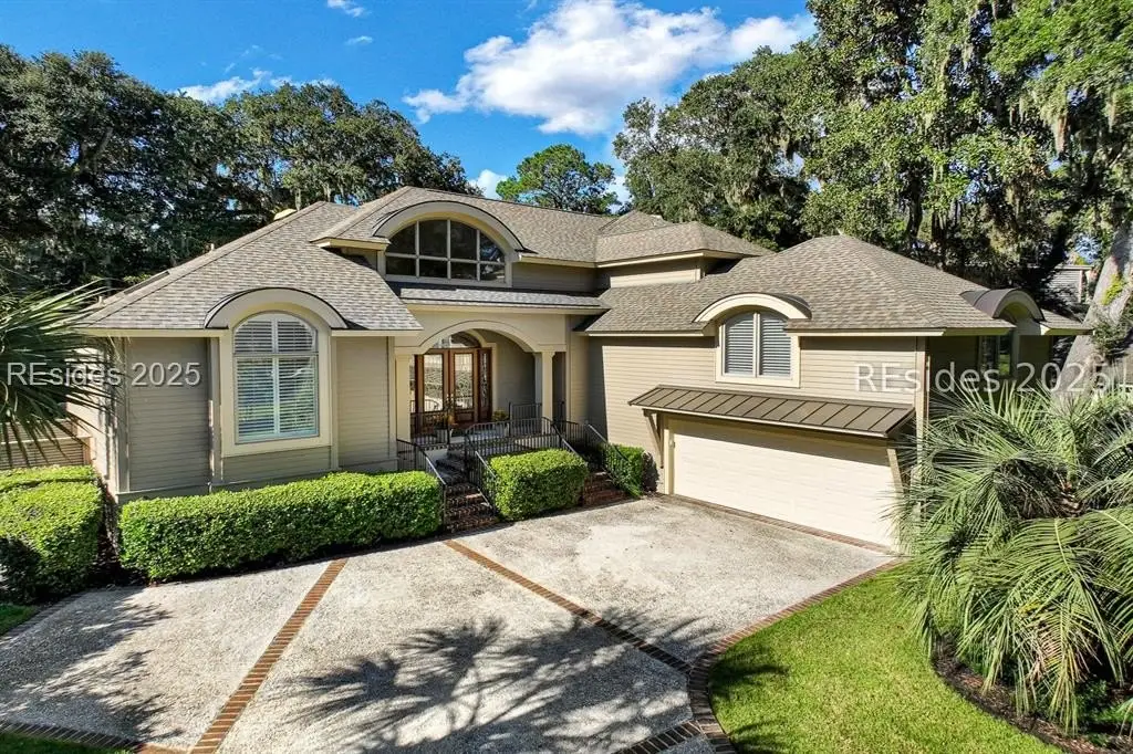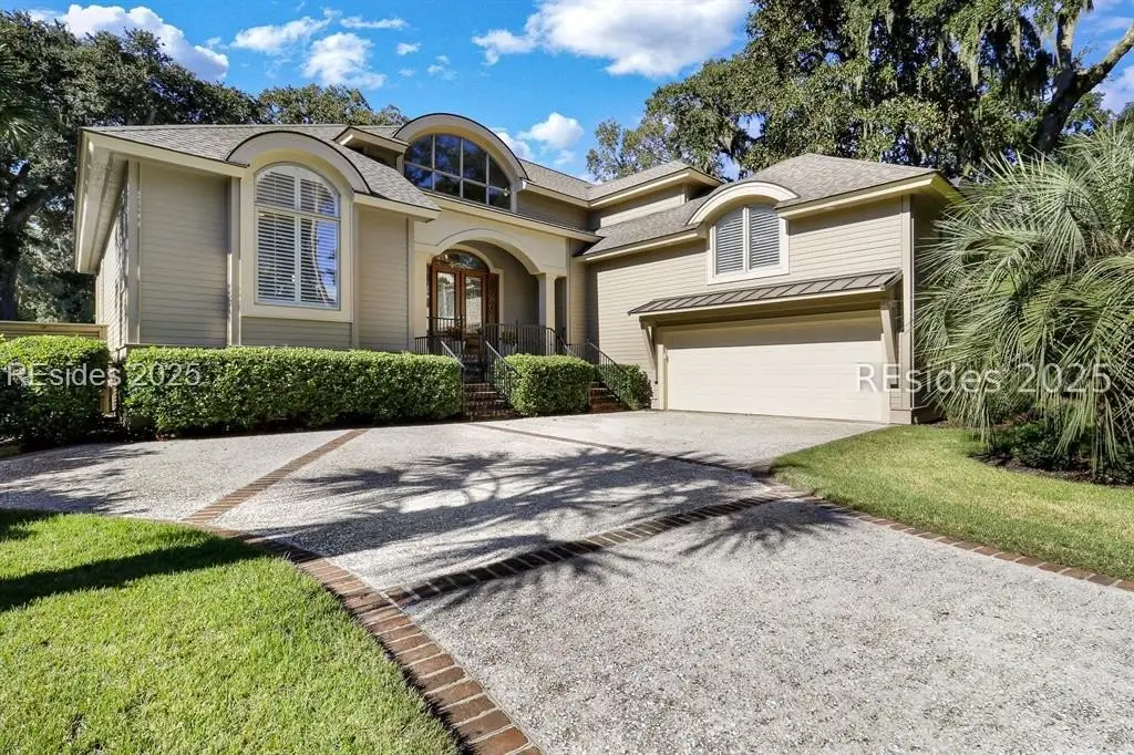Experience the ultimate in golf course living with this exceptional 4BR/4.5BA home perfectly positioned to capture panoramic views of Harbour Town Golf Links, home of the world-renowned RBC Heritage Golf Tournament. Enjoy multiple fairway views of the 3rd and 7th holes and the tee box of #8, offering unmatched scenery and privacy. Built by Tom Peeples and designed by William Vitto, this custom home combines timeless craftsmanship with elegant Lowcountry style. The open living and dining area showcases soaring ceilings, hardwood flooring, and expansive windows framing breathtaking pool and golf views. The open kitchen/family room features custom built-ins surrounding a wood-burning fireplace, granite countertops, custom cabinetry, and premium appliances. The first-floor owner suite is a serene retreat with stunning pool-to-golf views, hardwood flooring, dual walk-in closets, and a spa-inspired bath with soaking tub, tiled shower, and separate vanities. Upstairs, youll find three spacious guest ensuites plus an office, loft, and abundant storage ideal for family and guests. Recent updates by the current owners include a 2022 outdoor covered porch with metal roof and trex decking, new swimming pool with sundeck and travertine tile designed by Year Round Pool, and new landscaping. Other highlights include 2018 roof with copper accents and gutters (2022), Hardie plank siding, spray foam insulation, 2017/2018 HVAC, two 2017 water heaters, and termite bond.The 2-car garage offers epoxy flooring and two walk-in storage closets. This beautifully maintained home captures the best of Sea Pines living - elegant interiors, exceptional privacy, and spectacular golf course views at the heart of Harbour Town.