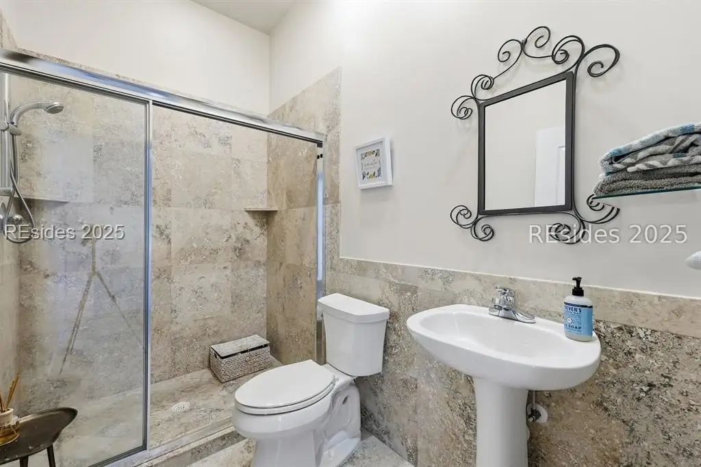 Beautifully designed and custom-built, this elegant Windmill Harbour residence captures the essence of Lowcountry luxury living. Thoughtfully planned for comfort and flow, 8 Fantail offers an exceptional blend of timeless architecture, natural light, and private outdoor living spaces.Step through the front door into an open and airy formal living and dining area, where large windows frame long views of the central courtyard and heated freeform pool. The screened-in porch provides a serene spot to enjoy morning coffee or evening breezes while overlooking this peaceful retreat.The private primary suite features cathedral ceilings, a spacious walk-in closet, and a spa-inspired bathroom with a soaking tub and separate walk-in shower. Two additional guest bedrooms share a convenient Jack-and-Jill bath, offering comfort and privacy for family or visitors.A separate guest suite and full bath are located on the opposite side of the home, ideal for extended stays. The modern chef's kitchen is a showpiece-featuring an eight-burner gas range, double wall ovens, dual Sub-Zero refrigerators, a walk-in pantry, and a cozy breakfast nook. The kitchen opens to an informal living area with cathedral ceilings, custom built-ins, and a gas fireplace-all overlooking the central courtyard and heated pool.A full pool bath and an oversized two-car garage complete the main level. Above the garage, a private guest apartment offers a living room, bedroom with en-suite bath, and two large storage closets-perfect for visitors or multi-generational living.Set within the prestigious, gated community of Windmill Harbour, home to the renowned South Carolina Yacht Club and one of the East Coast's only private lock-controlled marinas, this property offers both refined living and unmatched access to Hilton Head's coastal lifestyle.