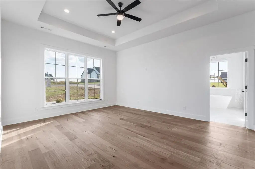 Less than 25 minutes from Springdale or Fayetteville. Welcome to Whitetail Estates! This beautiful new construction home offers 2930 square feet of well-designed living space, featuring a dining room, office/flex room, four bedrooms, three and a half bathrooms and three outdoor patios. The heart of the home features tall ceilings with accent wood beams giving warmth to the space along with the natural light that comes from the large sliding glass doors inviting you to step outside and enjoy the views from the back patio. The kitchen boast ample amount of storage with custom cabinetry throughout, a large island, double oven, gas range, pot filler, and hidden walk-in pantry! The primary suite includes dual vanities, relaxing soaking tub, large tiled shower, and a spacious closet. Two bedroom are connected by a jack and jill bathroom with detailed finishes in every corner. The fourth bedroom is great for guest with its own full bath, large walk-in closet and private patio! Come see this show stopper before its gone!