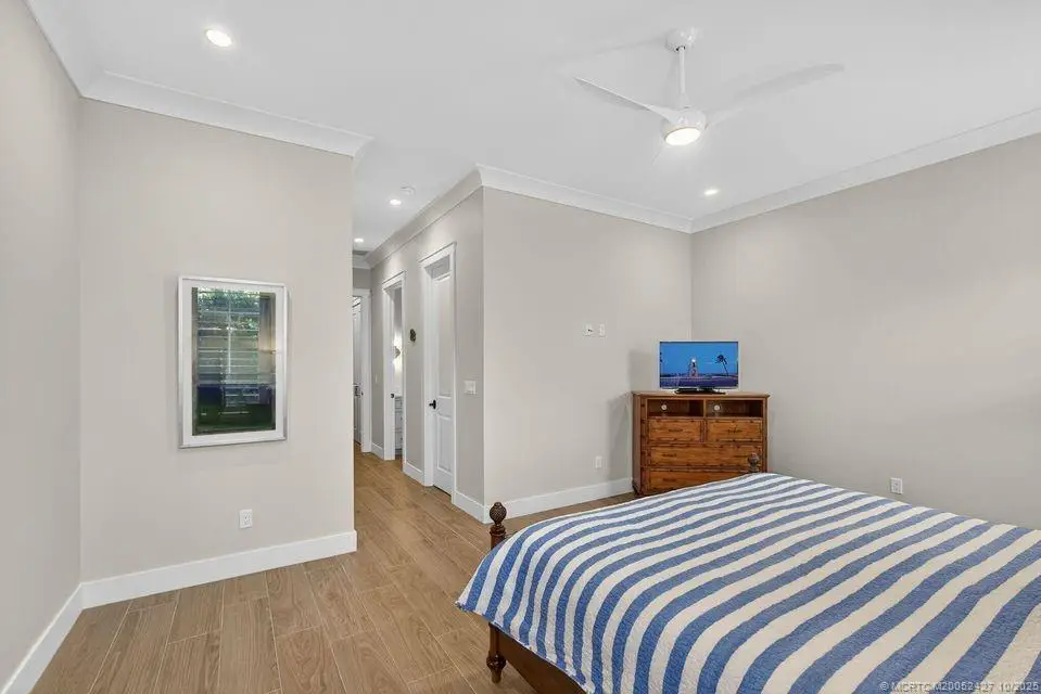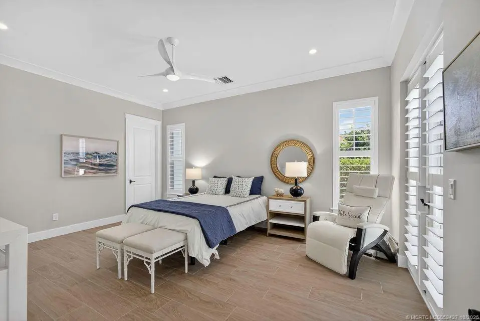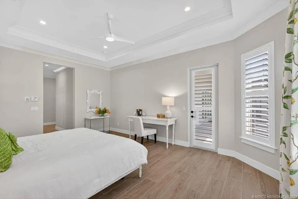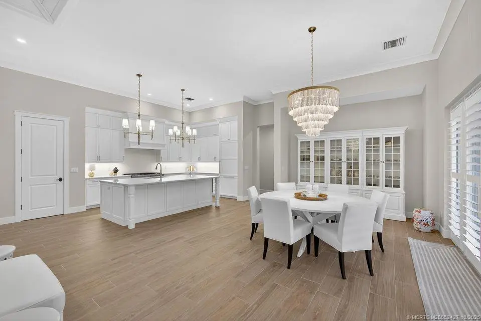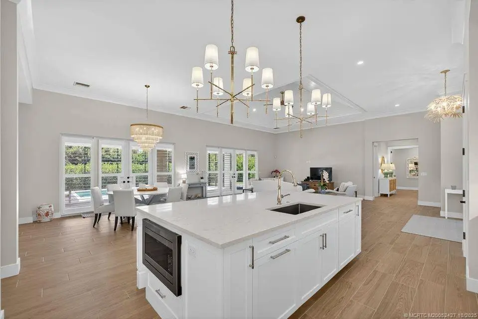 Stunning one-stor? mod?rn re?id?n?? in the gated Hobe ?ound G?lf Club! Built in 2020, this impressive 5BR/5BA home with 3-car garage sits on a .43-acre corner lot and offers an open split floor plan designed for both everyday living and entertaining. Features include a whole-house generator, all impact windows and doors, porcelain tile floors, and plantation shutters throughout. The light-filled living spaces flow seamlessly into the chef’s kitchen and great room, which boasts a tray ceiling with tongue-and-groove shiplap detail. The gourmet kitchen is equipped with an oversized island, quartz countertops, walk-in pantry, Thermador appliances, and a gas range. The luxurious primary suite opens to the lanai and heated saltwater pool, featuring a spa-inspired bath with soaking tub, frameless glass shower, and custom walk-in closet with built-ins. Four large guest bedrooms, an oversized laundry with sink, counters, and abundant cabinetry, plus ample storage complete this exceptional home.