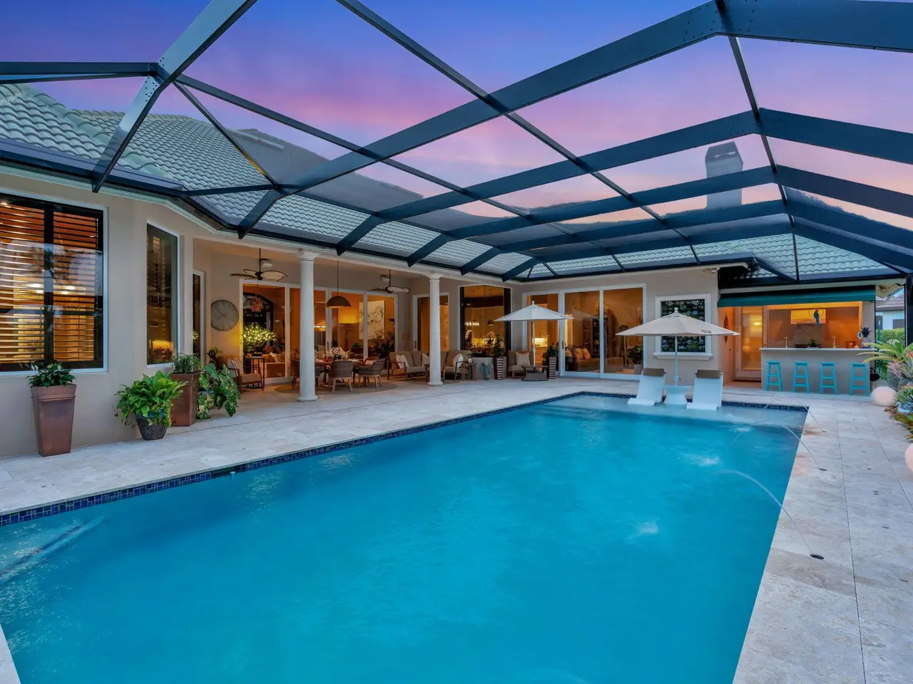 Nestled within the prestigious Hobe Sound Golf Club, this stunning home is perfectly situated on the 6th tee. Boasting 5,784 LA, 5 spacious bedrooms & 4.5 baths. BONUS ROOM: Open 900 sf, w/full bath, convenient morning bar, layout suitable for a second office, crafts, or in-law suite.OUTDOOR OASIS: step outside to your new heated saltwater pool, complete with sun shelf, screening and covered patio perfect for entertaining!GOURMET KITCHEN: heart of the home complemented by a separate butler's pantry. PRIMARY SUITE: perfect w/sitting area , pool views, and luxury bath. HOME OFFICE just off grand foyer. CURB APPEAL: The beautifully designed landscaping, enhanced by strategic lighting, creates a stunning first impression. Plus an expanded 3 car garage with electric car option.