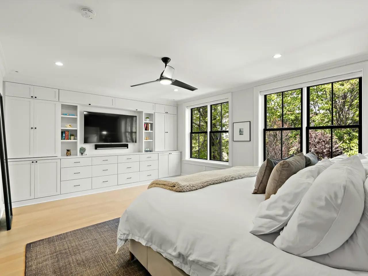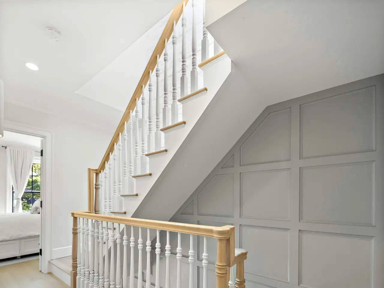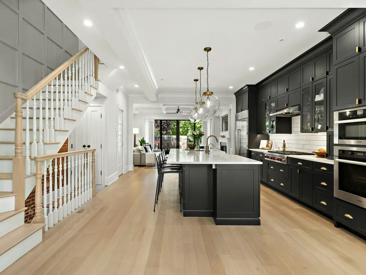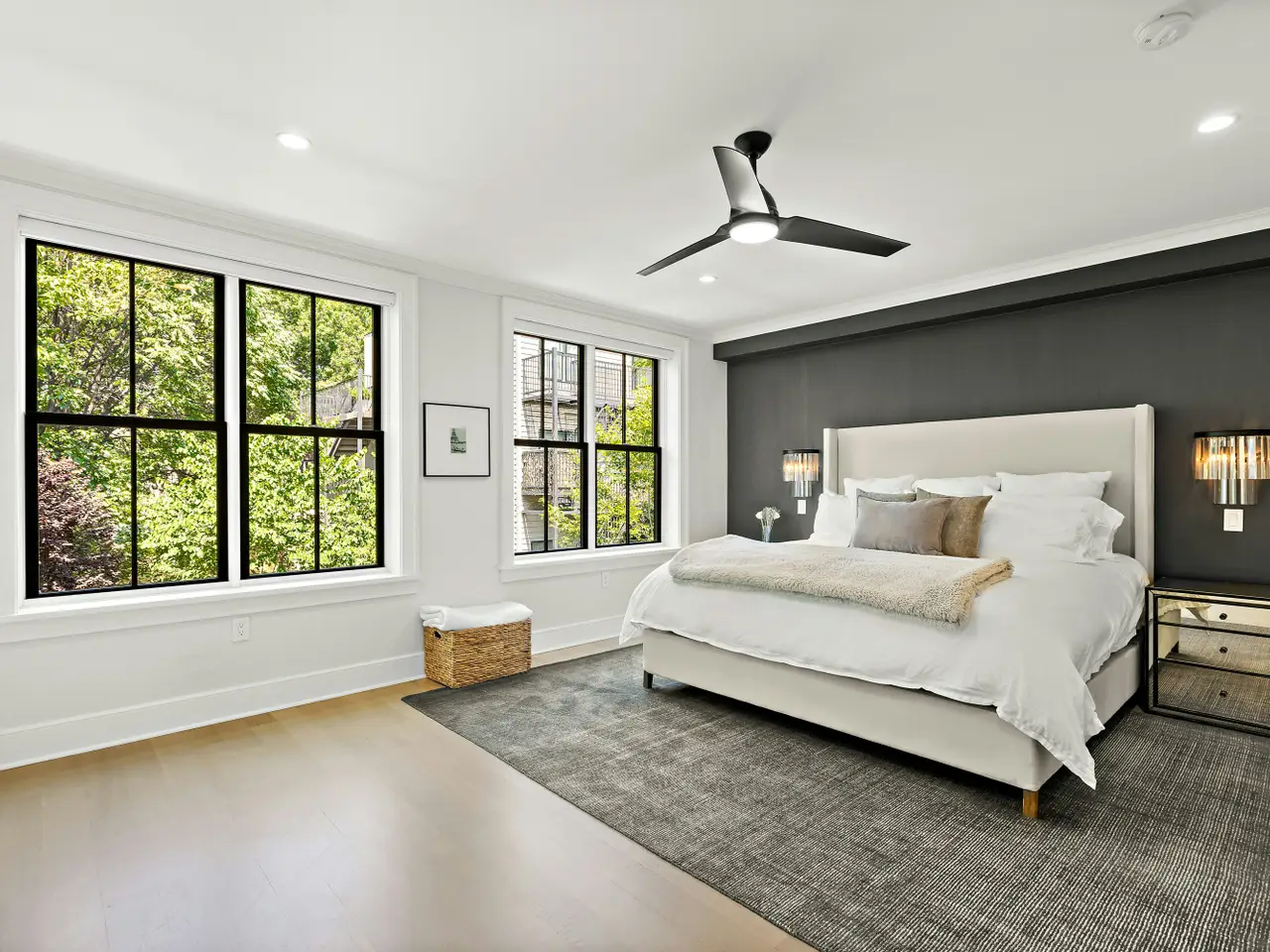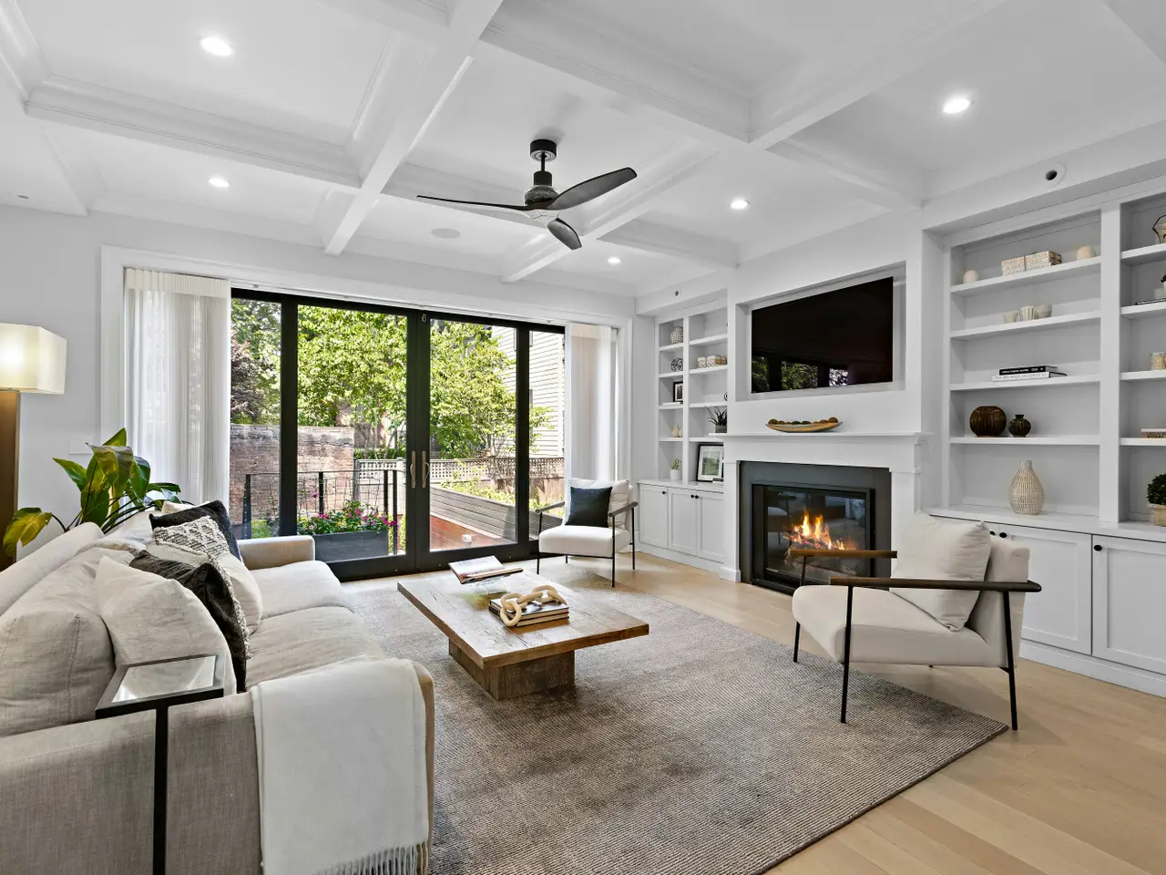 208 5th Street is a 20 foot wide townhouse that offers five bedrooms, three and one half bathrooms over four full floors of living, located in one of Hoboken's most unique and desirable areas, directly across from Church Square Park in midtown Hoboken. This large historic townhome has been completely gut renovated and extended and provides a thoughtfully designed layout with both formal and casual entertaining areas. The architect and designer have retained all the wonderful aspects of historic brownstone architecture and incorporated expert craftsmanship with a stunning design that perfectly blends modern and classic styles that will delight even the most sophisticated townhome buyer. No detail has been overlooked in the renovation of this stunning home. Entering the parlor floor through double doors and built-in mudroom you are struck by the open floor plan and the abundance of light that streams through the home from its southern exposure. The center of the home is anchored by a custom chef's kitchen with cabinets by custom cabinetry, quartz countertops, Wolf stove, Miele wall ovens, Subzero Fridge, Fischer Paykel dishwasher and wine fridge. The dining room features original exposed brick and floor to ceiling windows and the large living area has gorgeous coffered ceiling with a lovely gas fireplace flanked by custom built-in bookcases and storage. The exceptional layout is perfect for entertaining and enables a seamless flow from the kitchen to living room while also providing access to the back garden through oversized glass sliding doors. The second floor is reached from the completely re-built white oak staircase with custom paneling that leads to a large primary bedroom with custom built-ins, a large walk-in closet with custom cabinetry, and en-suite five piece bathroom finished with natural stone tile, unique Zellige subway tile over custom double vanity with restoration hardware fixtures, a large soaking tub and custom framed glass shower, linen closet and heated floors. On the second floor you will also find a separate bedroom, and a full laundry room with oversized Electrolux washer/dryer. The third floor has three more bedrooms and two well-appointed bathrooms with one en-suite. The garden level is perfect for movie night with a large wide open family/TV room with access to the garden, a wall of custom cabinetry, wet bar, a refrigerator, and another playroom with even more storage/cabinetry. The professionally landscaped garden patio can be accessed from either the parlor floor or the garden level and includes a built-in BBQ with dedicated gas line and refrigerator, Ipe fencing, bluestone paving, artificial grass and dedicated planters. Other features include recessed and custom lighting, built-in speakers throughout with several zones of Sonos. Other notable features are Marvin windows throughout, white oak floors, high velocity HVAC, Cat 6 wiring, Hunter Douglas custom remote window treatments and smart switches. This home stands out for its central location-an easy walk to the PATH, 5th Street bus stop, and both elementary and middle schools are just a short distance. It's incredibly convenient for commuting and everyday life. Being directly across from the park provides open, unobstructed views and added privacy. One of the quietest streets in Hoboken, with no through traffic from Park Avenue and relatively easy parking while being close to NJ Transit for access to Path and Manhattan's Port Authority bus terminal.