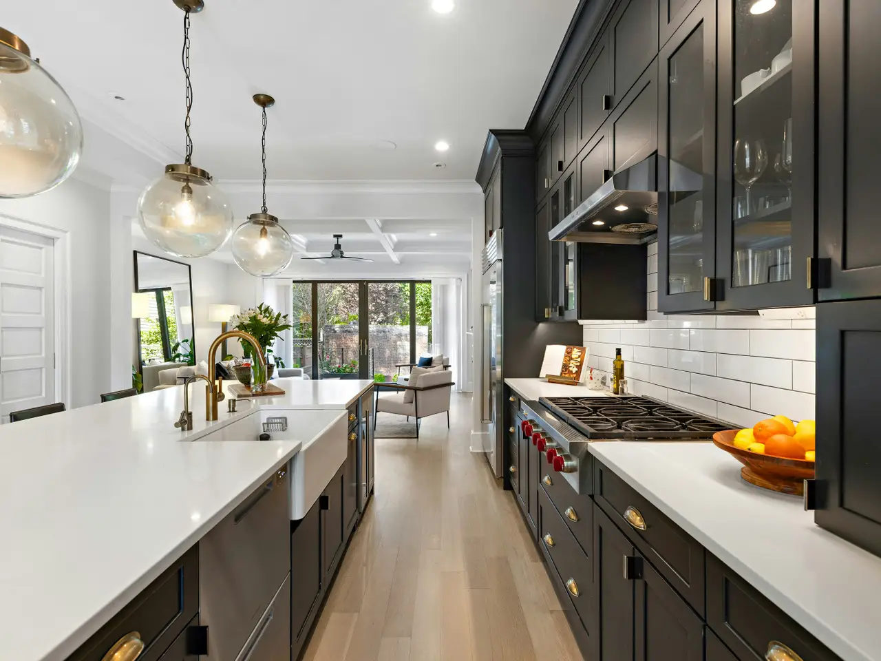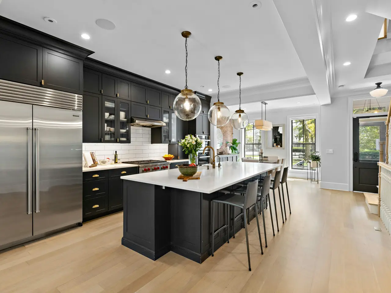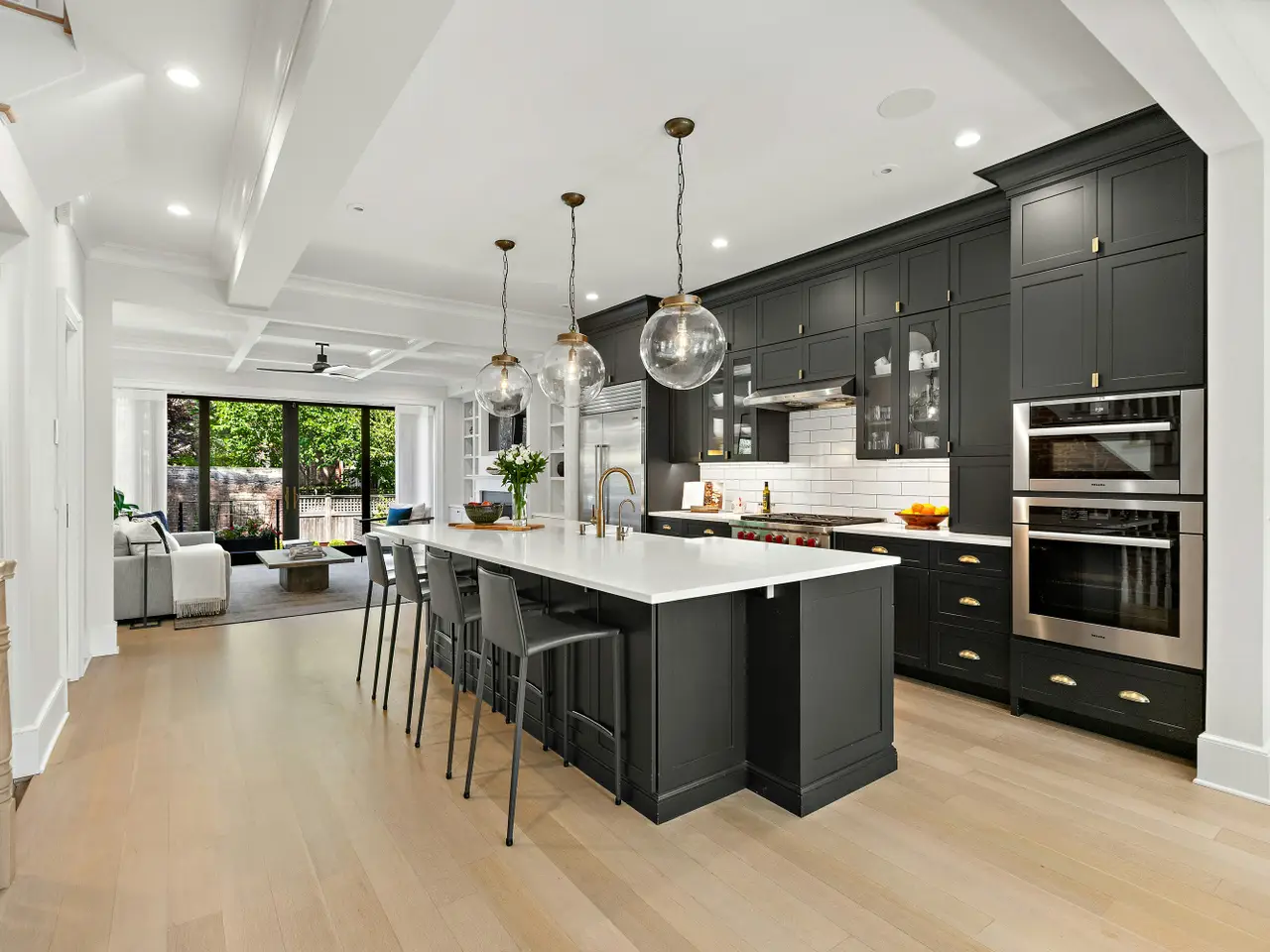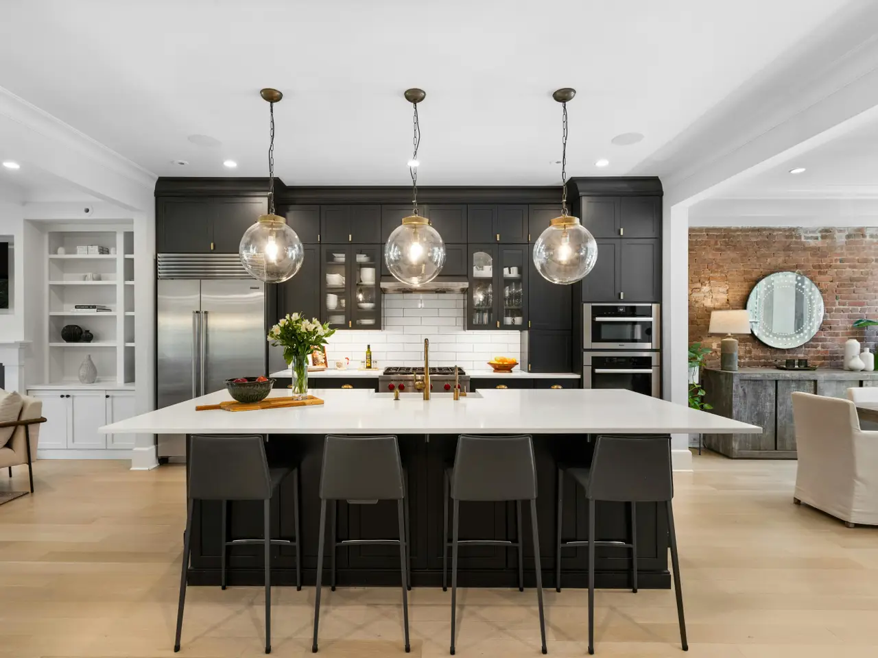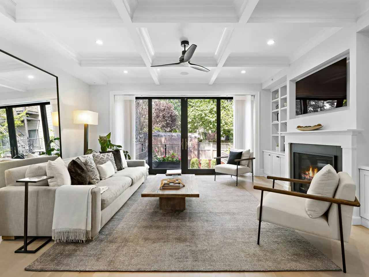 208 5th Street is a 20 foot wide townhouse that offers five bedrooms, three and one half bathrooms over four full floors of living, located in one of Hoboken's most unique and desirable areas, directly across from Church Square Park in midtown Hoboken. This large historic townhome has been completely gut renovated and extended and provides a thoughtfully designed layout with both formal and casual entertaining areas. The architect and designer have retained all the wonderful aspects of historic brownstone architecture and incorporated expert craftsmanship with a stunning design that perfectly blends modern and classic styles that will delight even the most sophisticated townhome buyer. No detail has been overlooked in the renovation of this stunning home. Entering the parlor floor through double doors and built-in mudroom you are struck by the open floor plan and the abundance of light that streams through the home from its southern exposure. The center of the home is anchored by a custom chef's kitchen with cabinets by custom cabinetry, quartz countertops, Wolf stove, Miele wall ovens, Subzero Fridge, Fischer Paykel dishwasher and wine fridge. The dining room features original exposed brick and floor to ceiling windows and the large living area has gorgeous coffered ceiling with a lovely gas fireplace flanked by custom built-in bookcases and storage. The exceptional layout is perfect for entertaining and enables a seamless flow from the kitchen to living room while also providing access to the back garden through oversized glass sliding doors. The second floor is reached from the completely re-built white oak staircase with custom paneling that leads to a large primary bedroom with custom built-ins, a large walk-in closet with custom cabinetry, and en-suite five piece bathroom finished with natural stone tile, unique Zellige subway tile over custom double vanity with restoration hardware fixtures, a large soaking tub and custom framed glass shower, linen closet and heated floors. On the second floor you will also find a separate bedroom, and a full laundry room with oversized Electrolux washer/dryer. The third floor has three more bedrooms and two well-appointed bathrooms with one en-suite. The garden level is perfect for movie night with a large wide open family/TV room with access to the garden, a wall of custom cabinetry, wet bar, a refrigerator, and another playroom with even more storage/cabinetry. The professionally landscaped garden patio can be accessed from either the parlor floor or the garden level and includes a built-in BBQ with dedicated gas line and refrigerator, Ipe fencing, bluestone paving, artificial grass and dedicated planters. Other features include recessed and custom lighting, built-in speakers throughout with several zones of Sonos. Other notable features are Marvin windows throughout, white oak floors, high velocity HVAC, Cat 6 wiring, Hunter Douglas custom remote window treatments and smart switches. This home stands out for its central location-an easy walk to the PATH, 5th Street bus stop, and both elementary and middle schools are just a short distance. It's incredibly convenient for commuting and everyday life. Being directly across from the park provides open, unobstructed views and added privacy. One of the quietest streets in Hoboken, with no through traffic from Park Avenue and relatively easy parking while being close to NJ Transit for access to Path and Manhattan's Port Authority bus terminal.